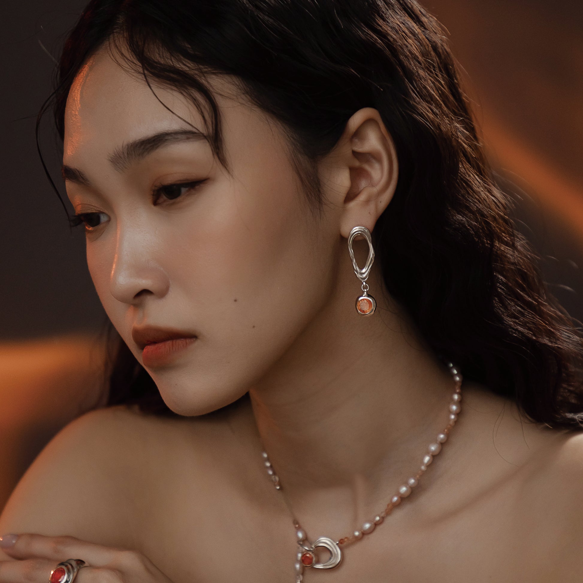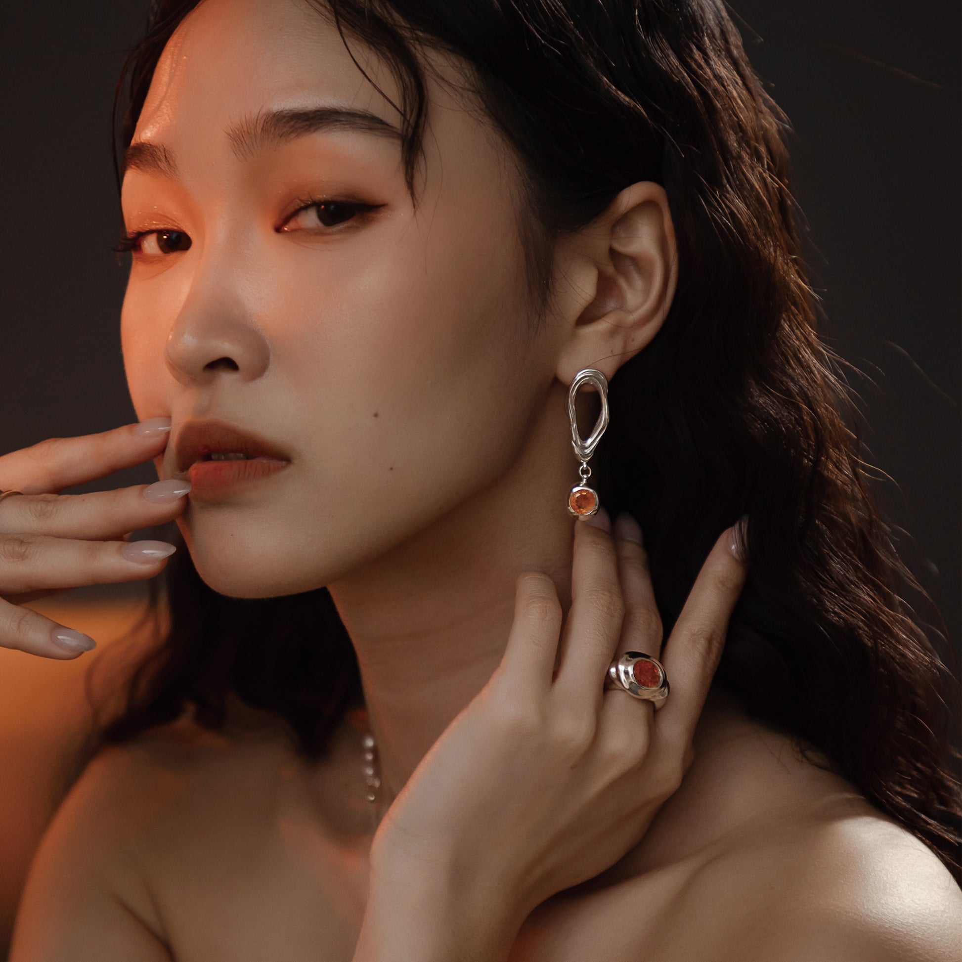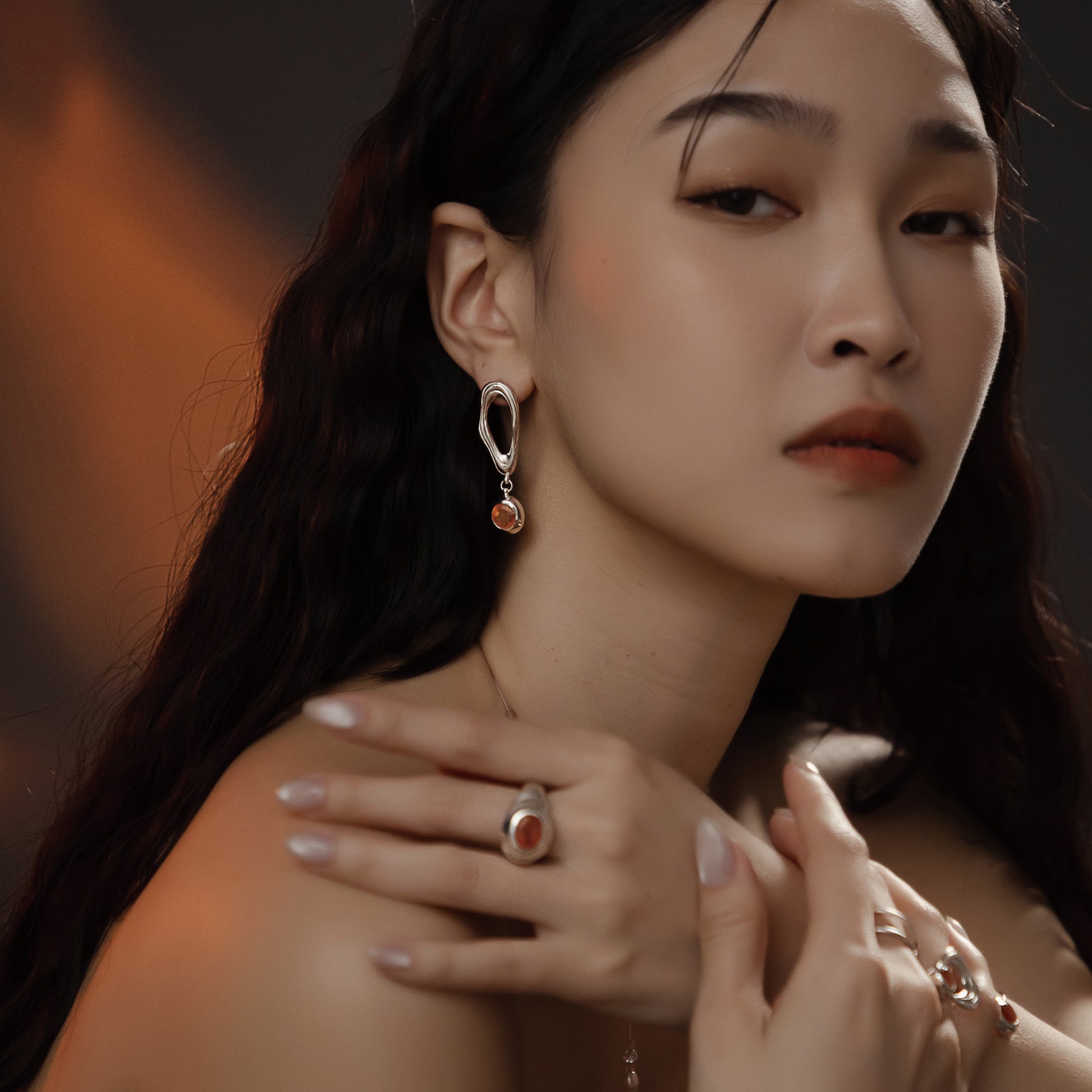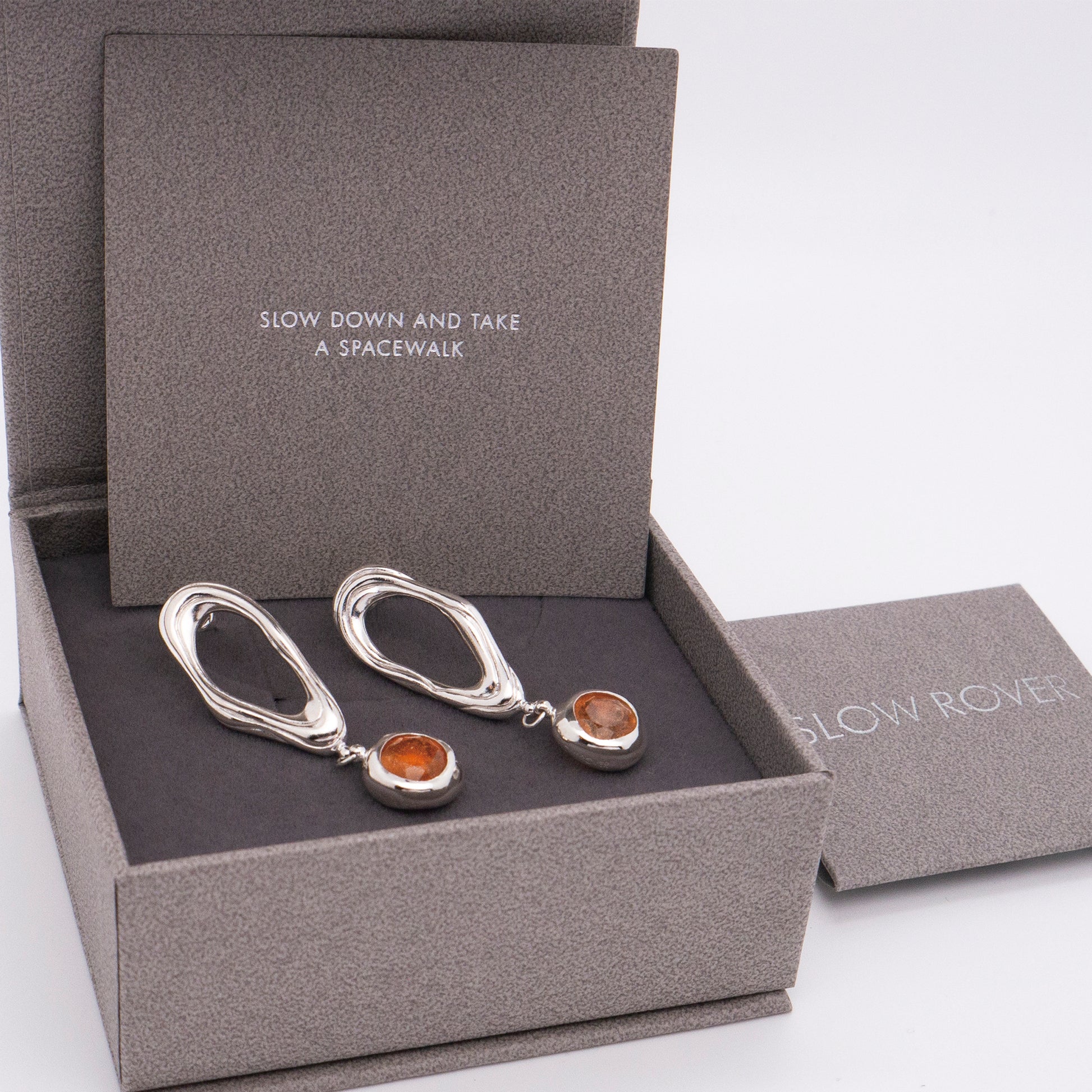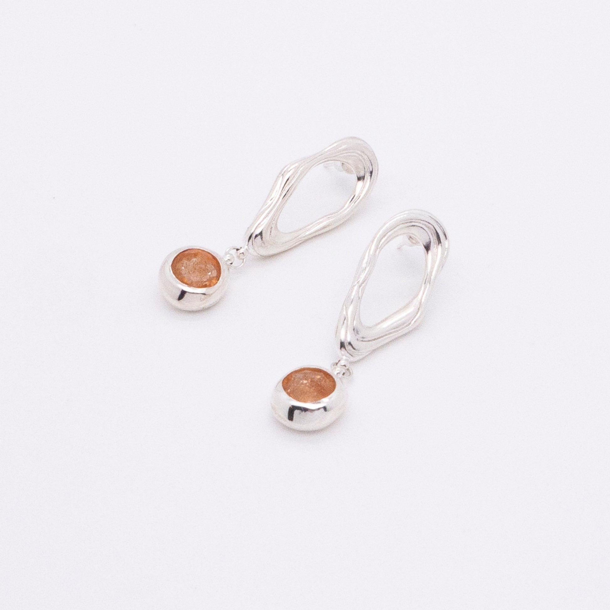 サンフラッシュフレイムレインオパールイヤリング - スターリングシルバー