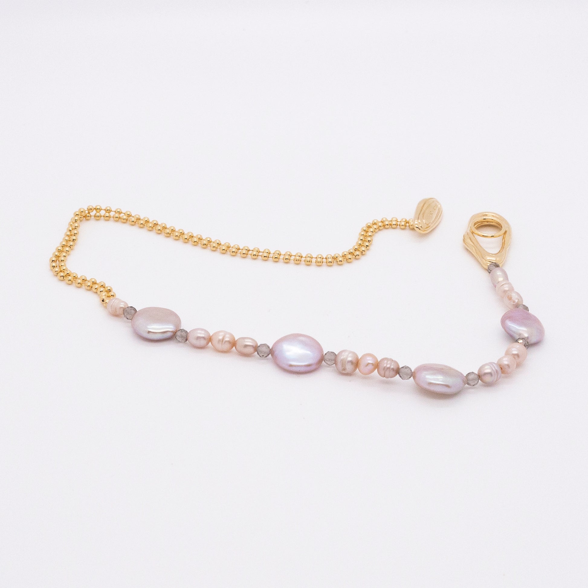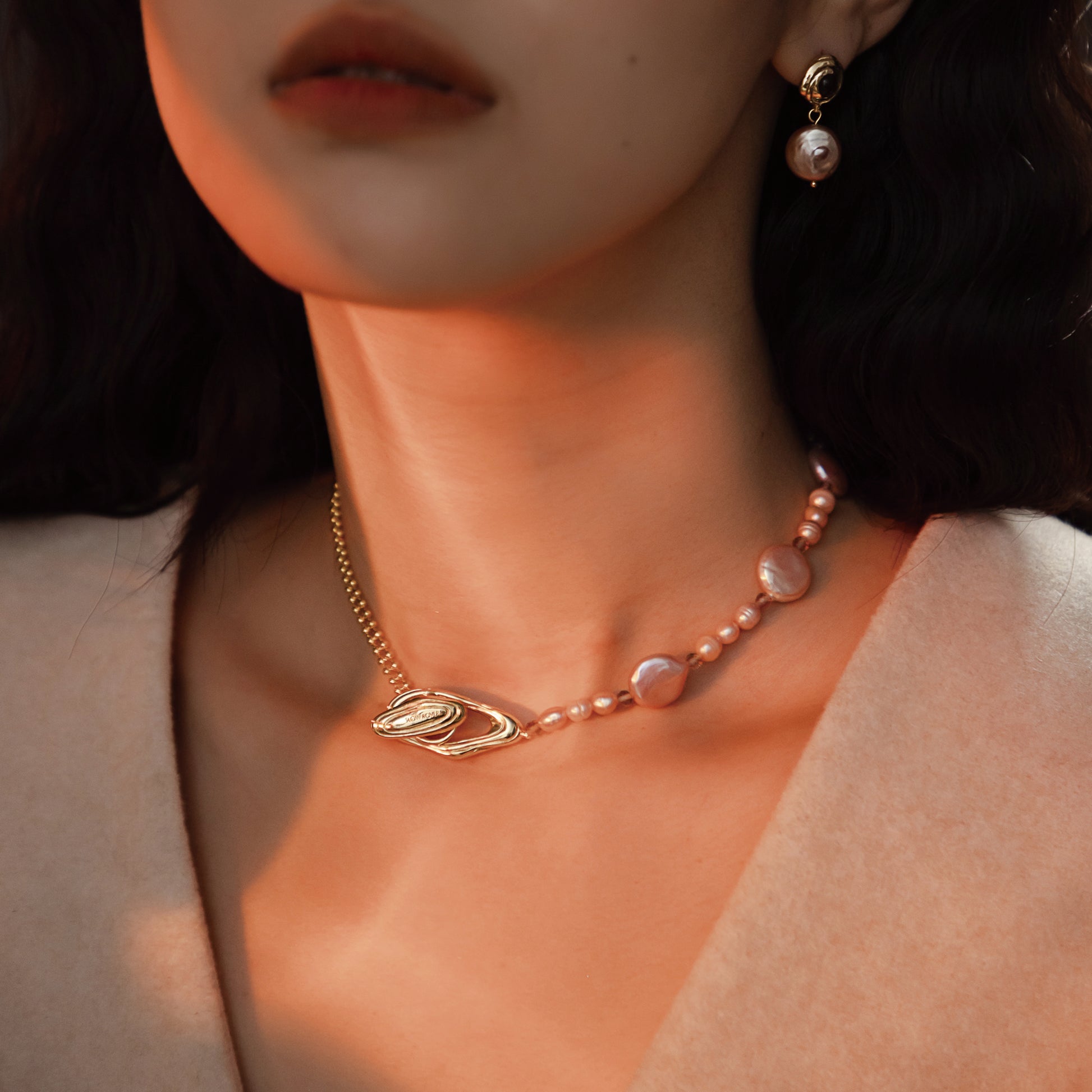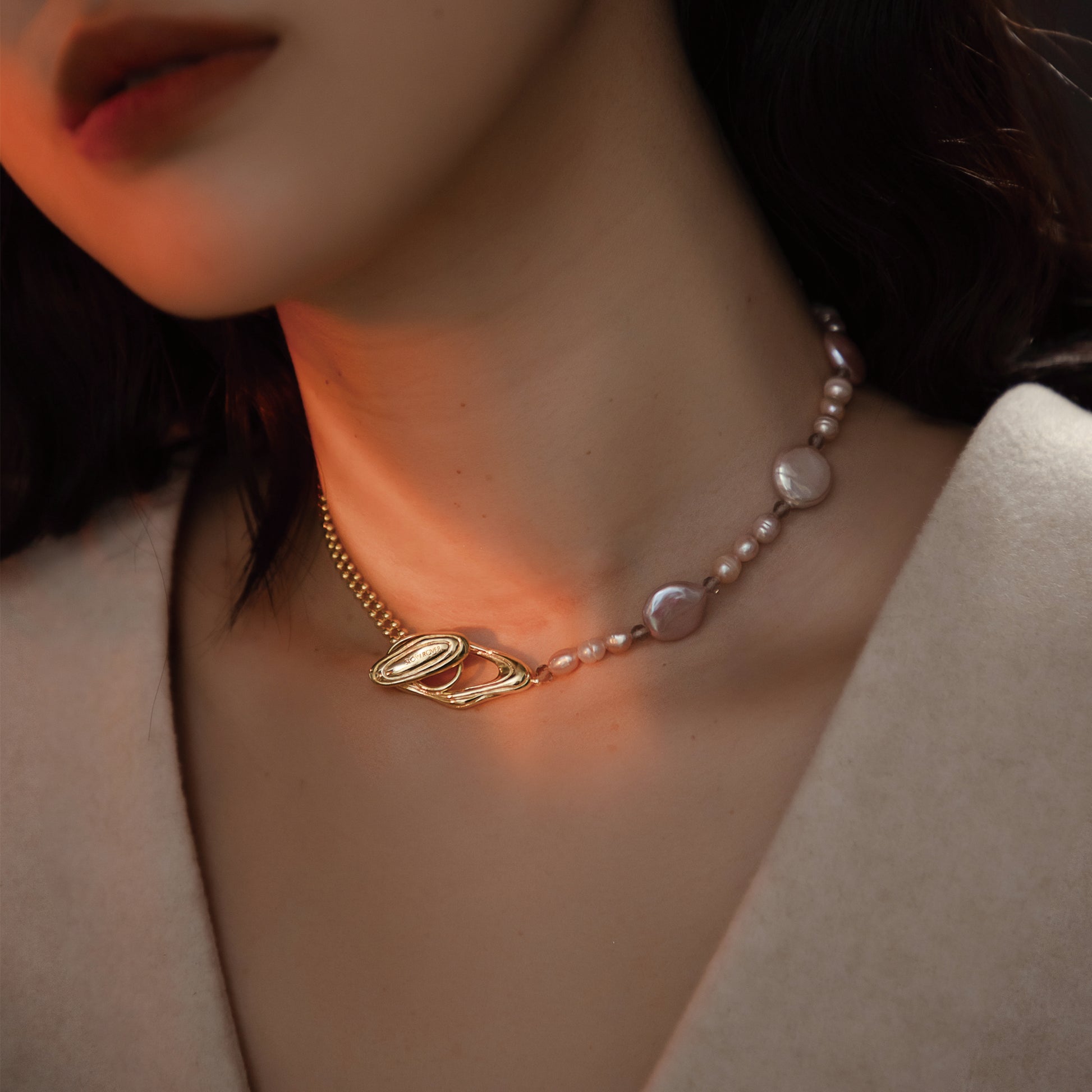ソーラーフラッシュシリーズ マグネティックストーム ホワイトバロックラウンドパール ショートネックレス - スターリングシルバー