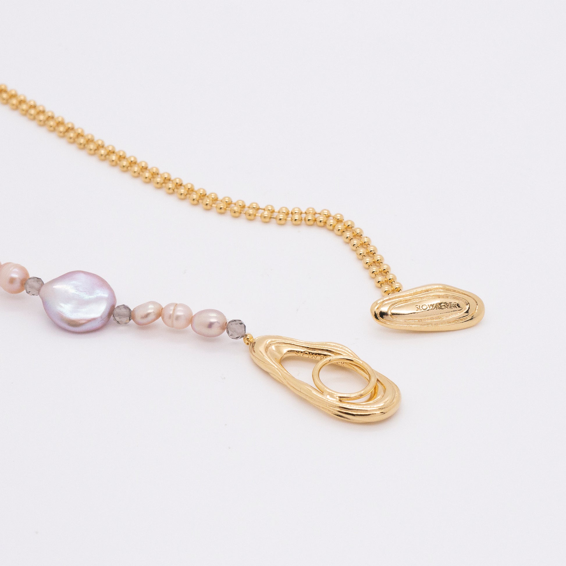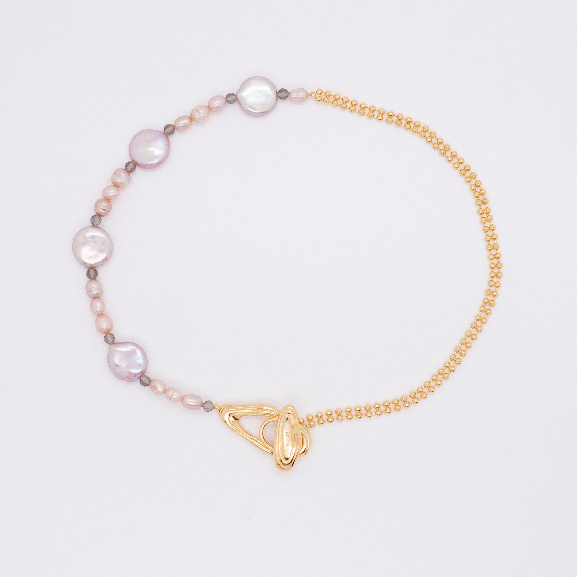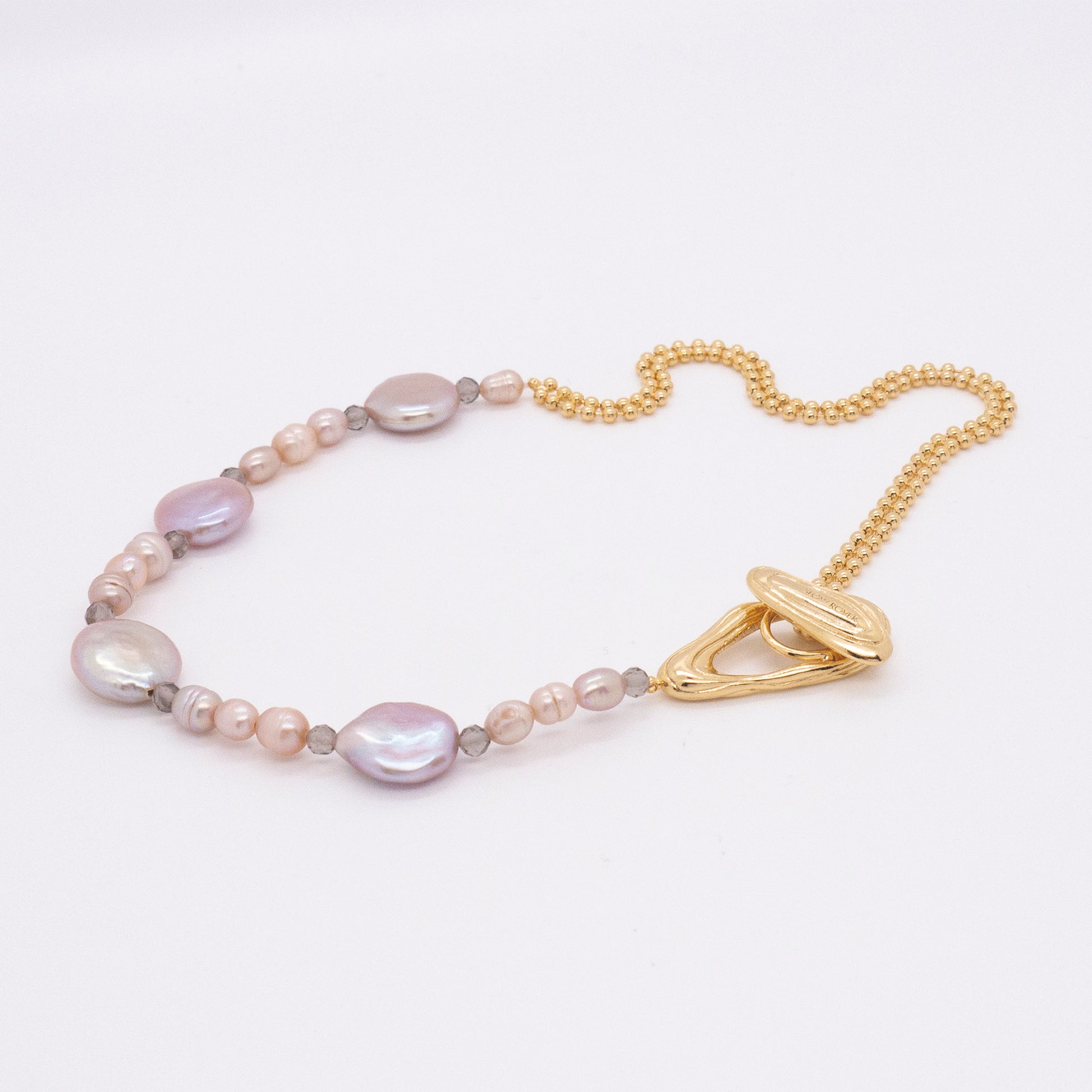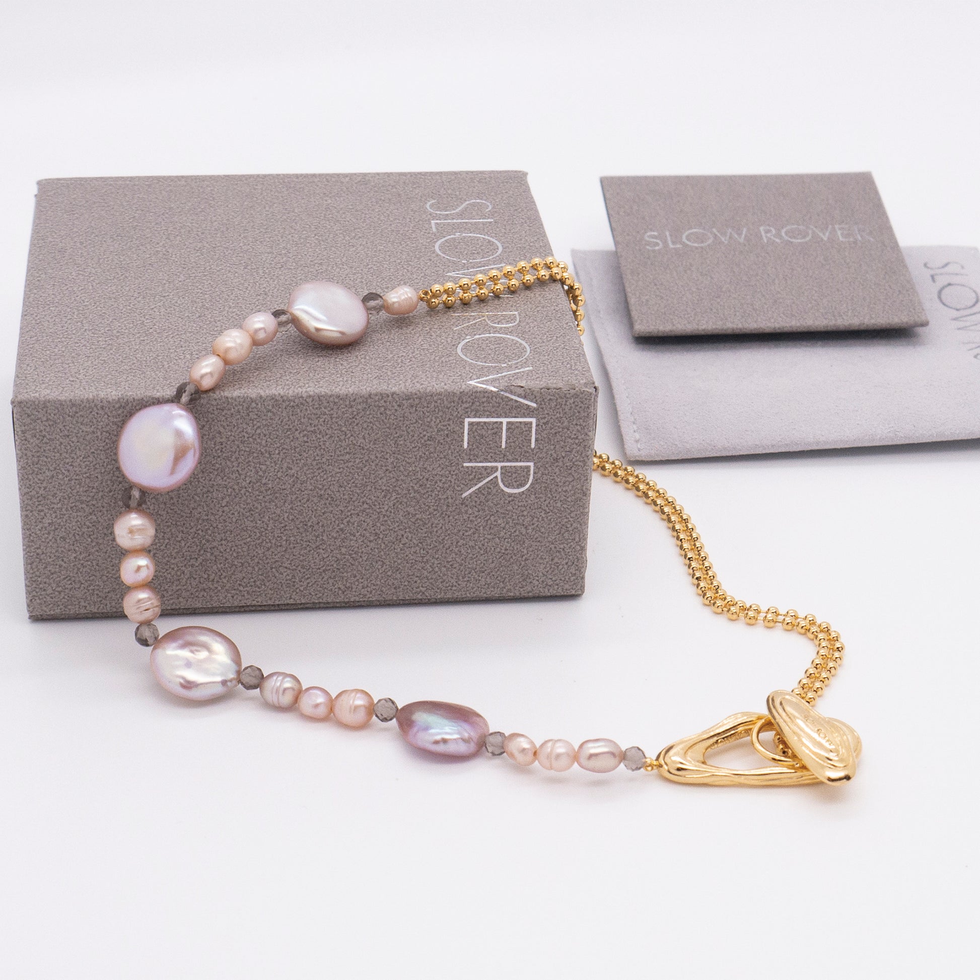 ソーラーフラッシュシリーズ マグネティックストーム ホワイトバロックラウンドパール ショートネックレス - スターリングシルバー