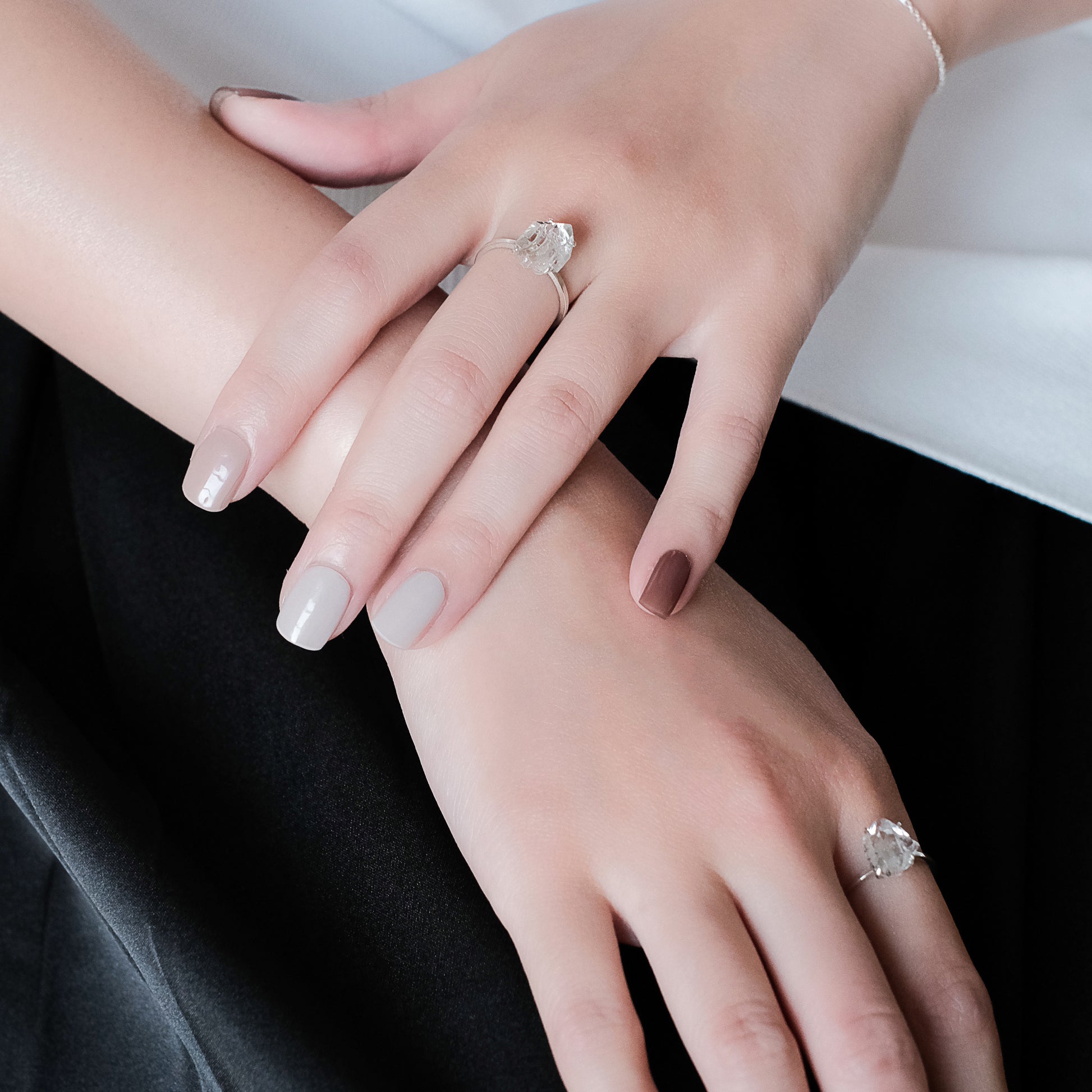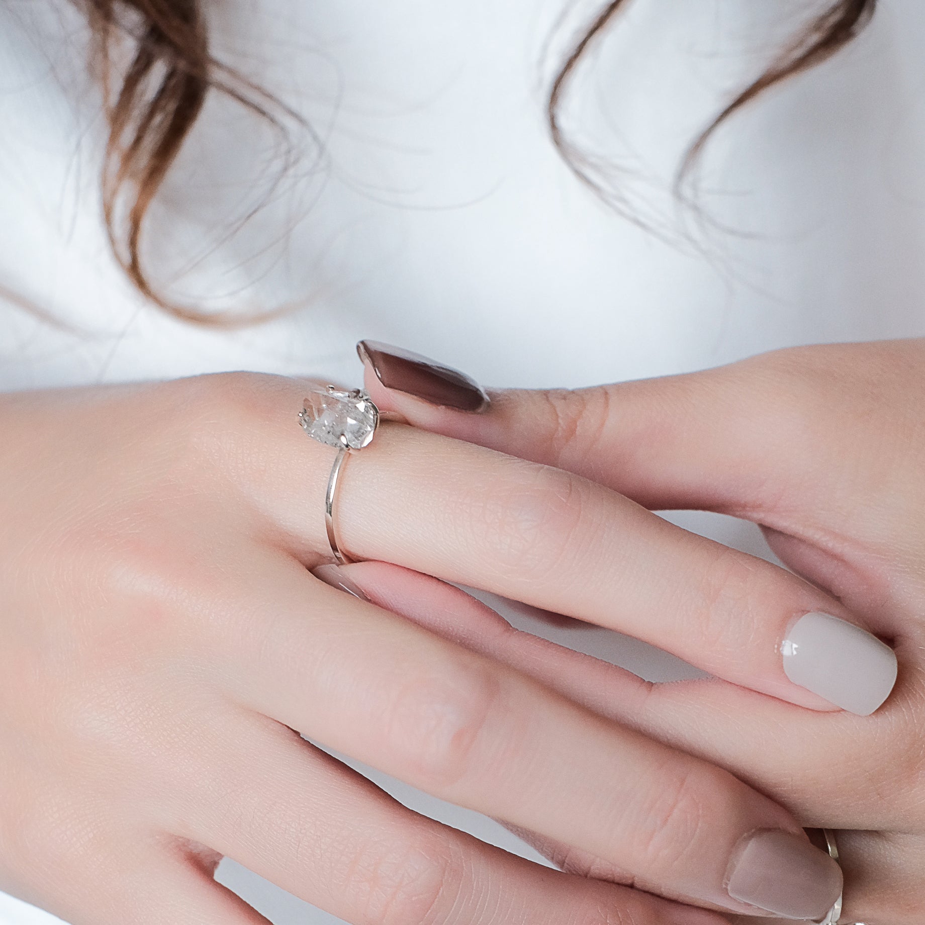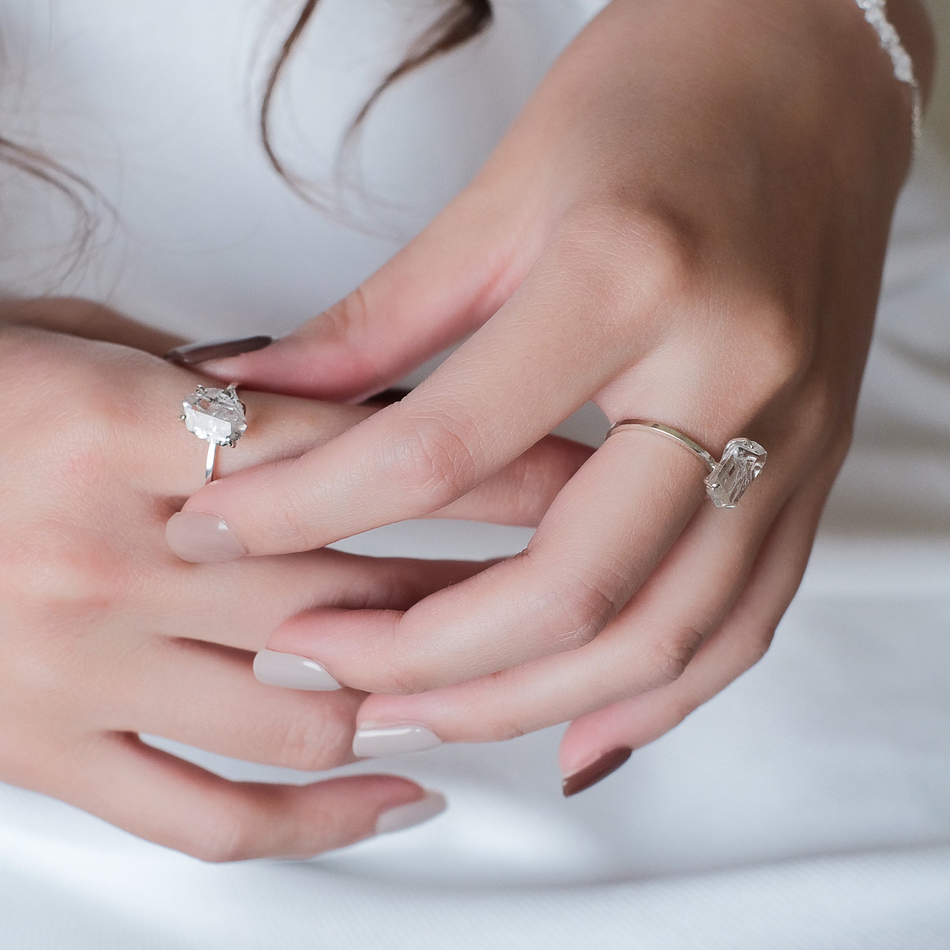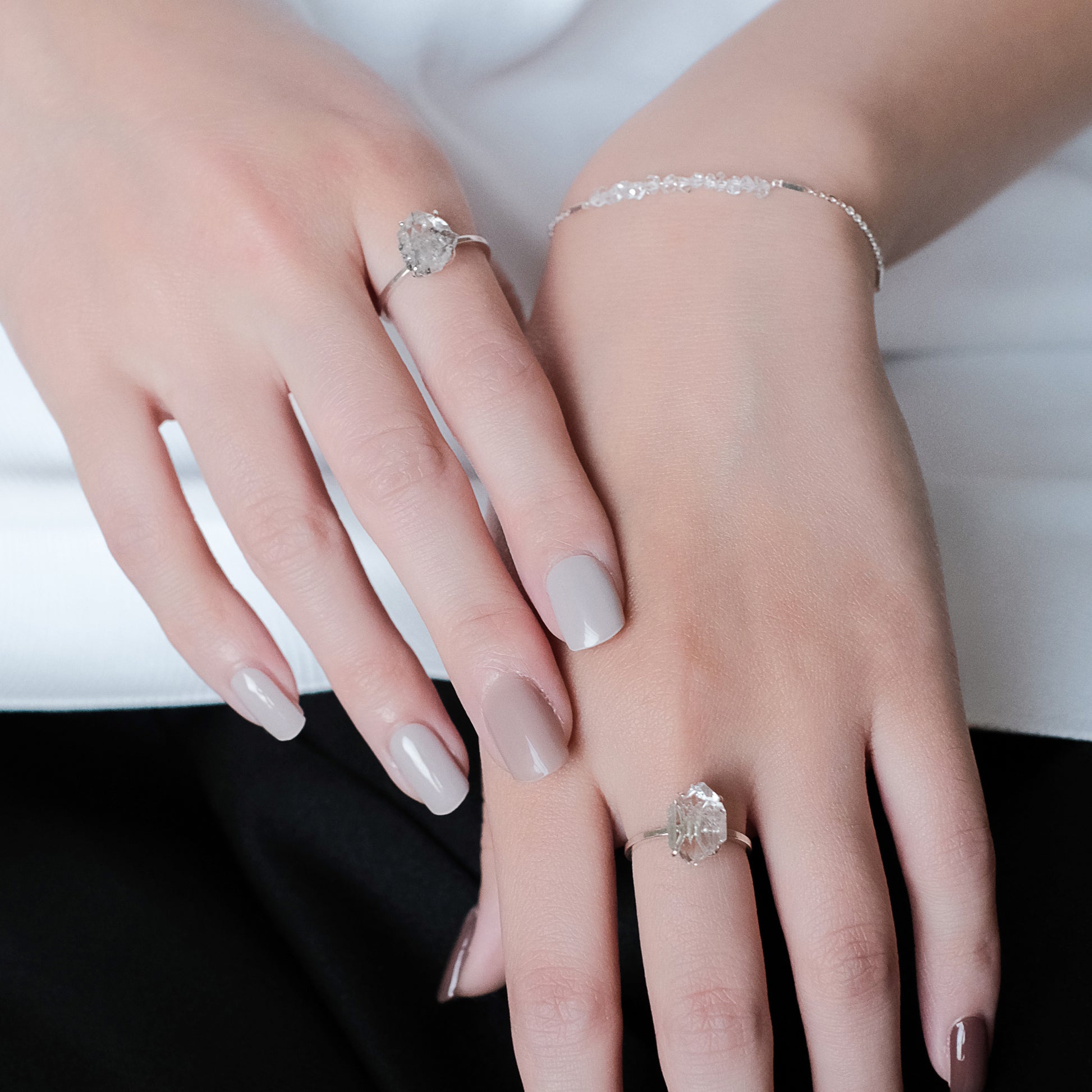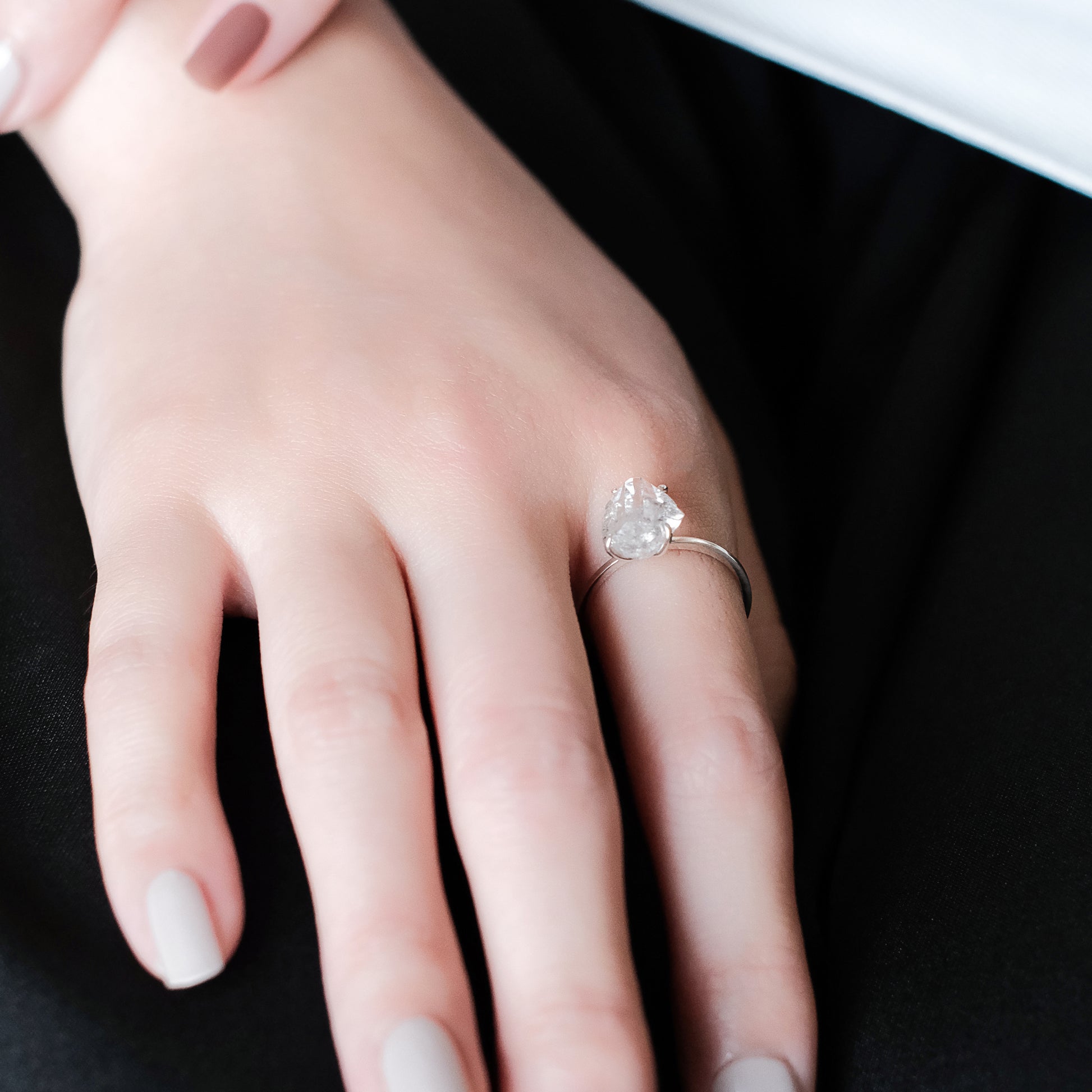コズミックアイスクリスタルシリーズ - ブラッシュミストアイスクリスタルシンプルリング - スターリングシルバー