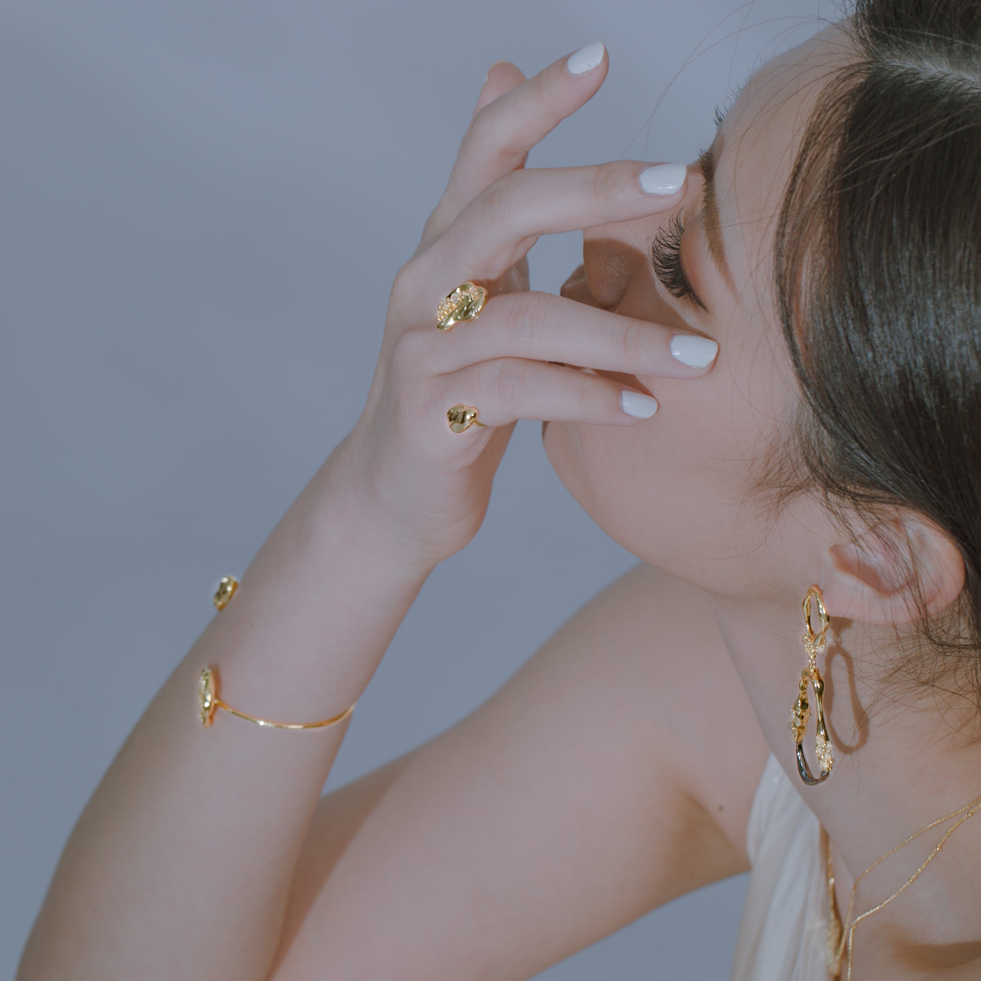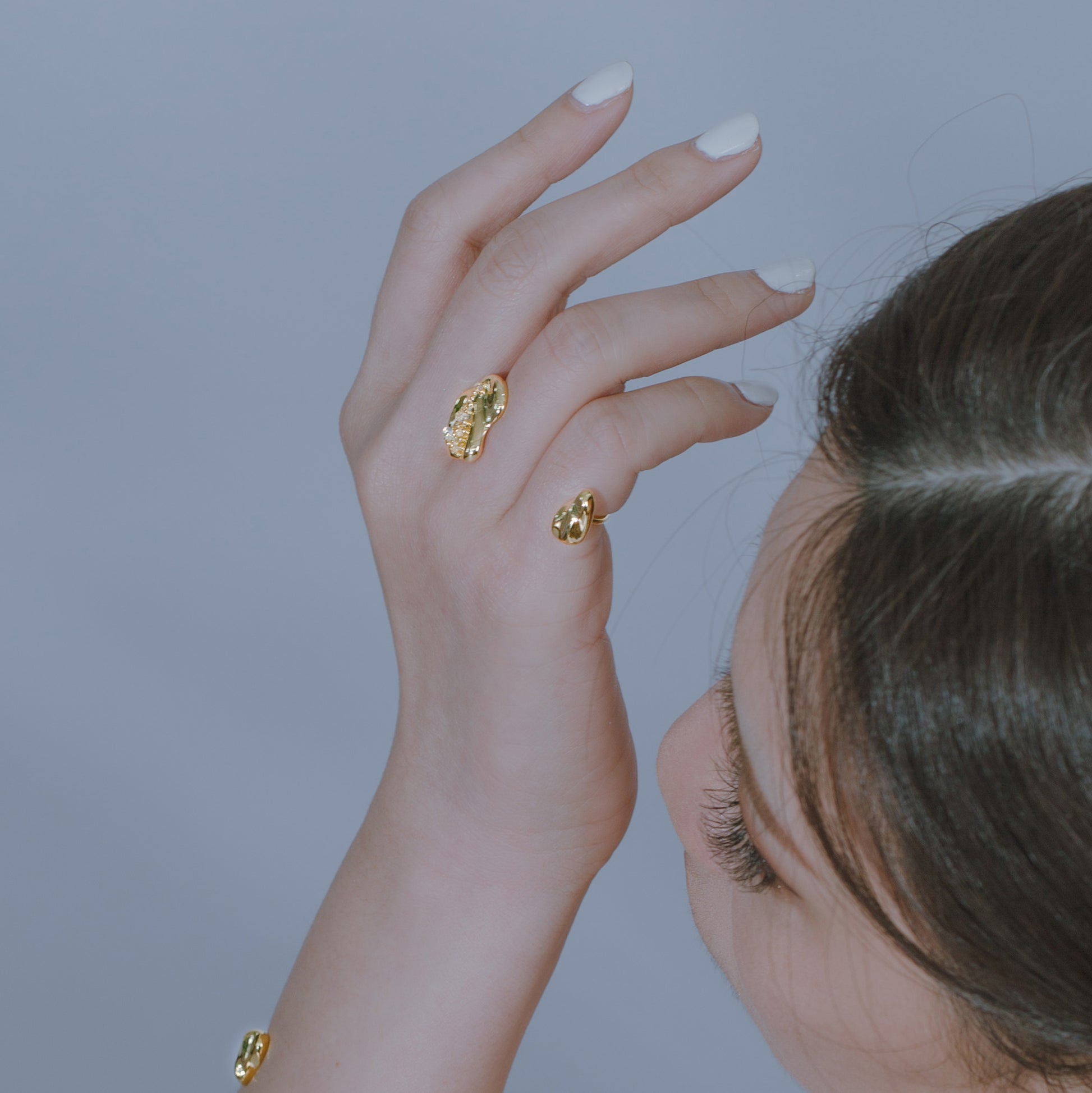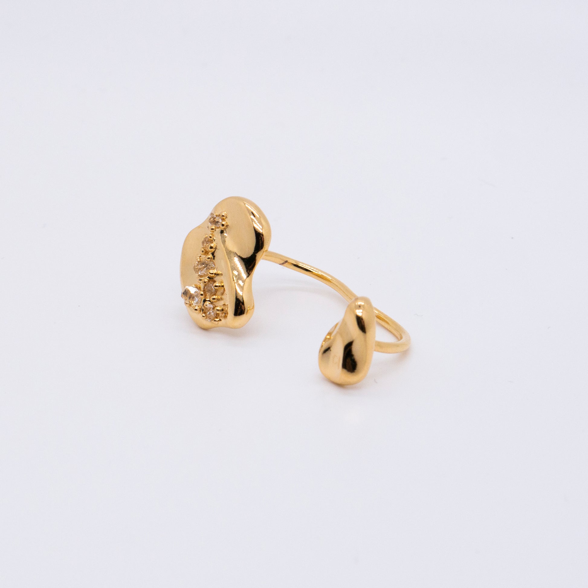 Cosmic Ice Crystal シリーズ アイス クリスタル リップル オープン ダブル フィンガー リング - 厚い 18K ゴールド メッキ