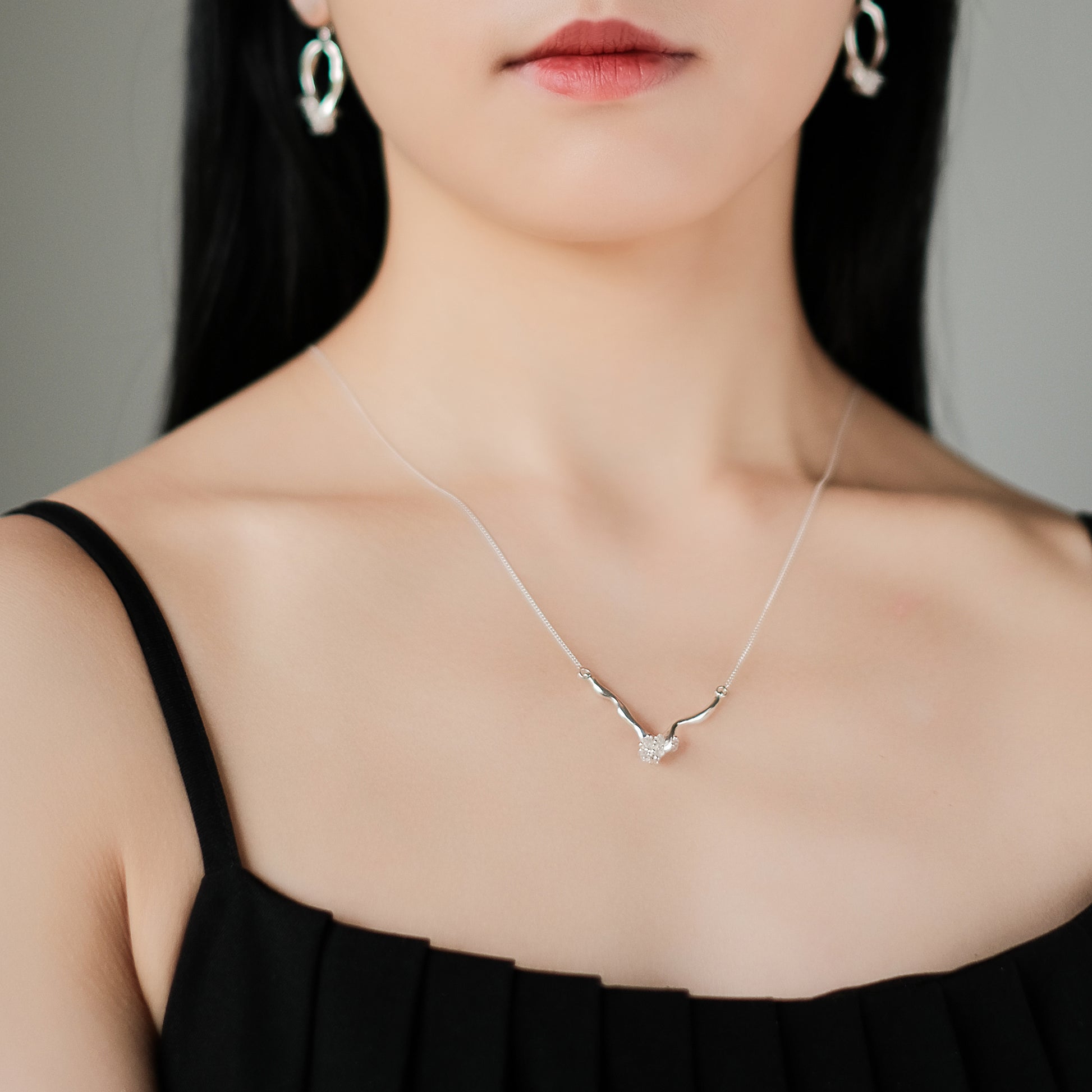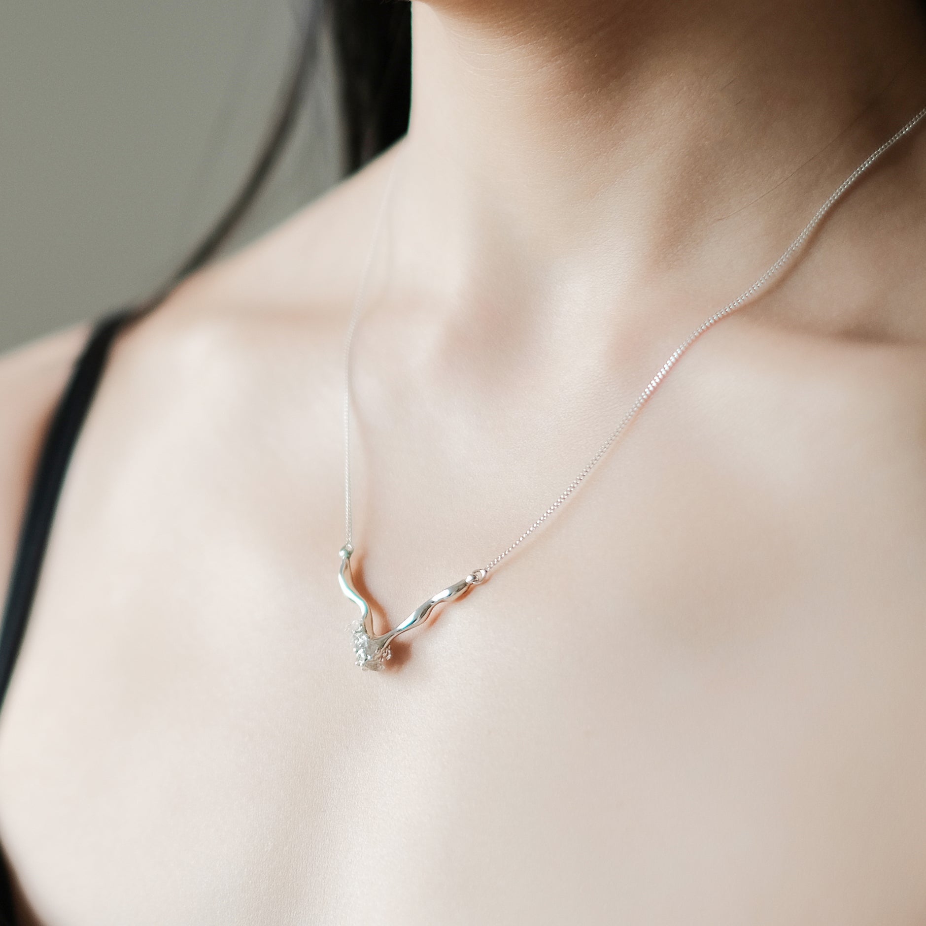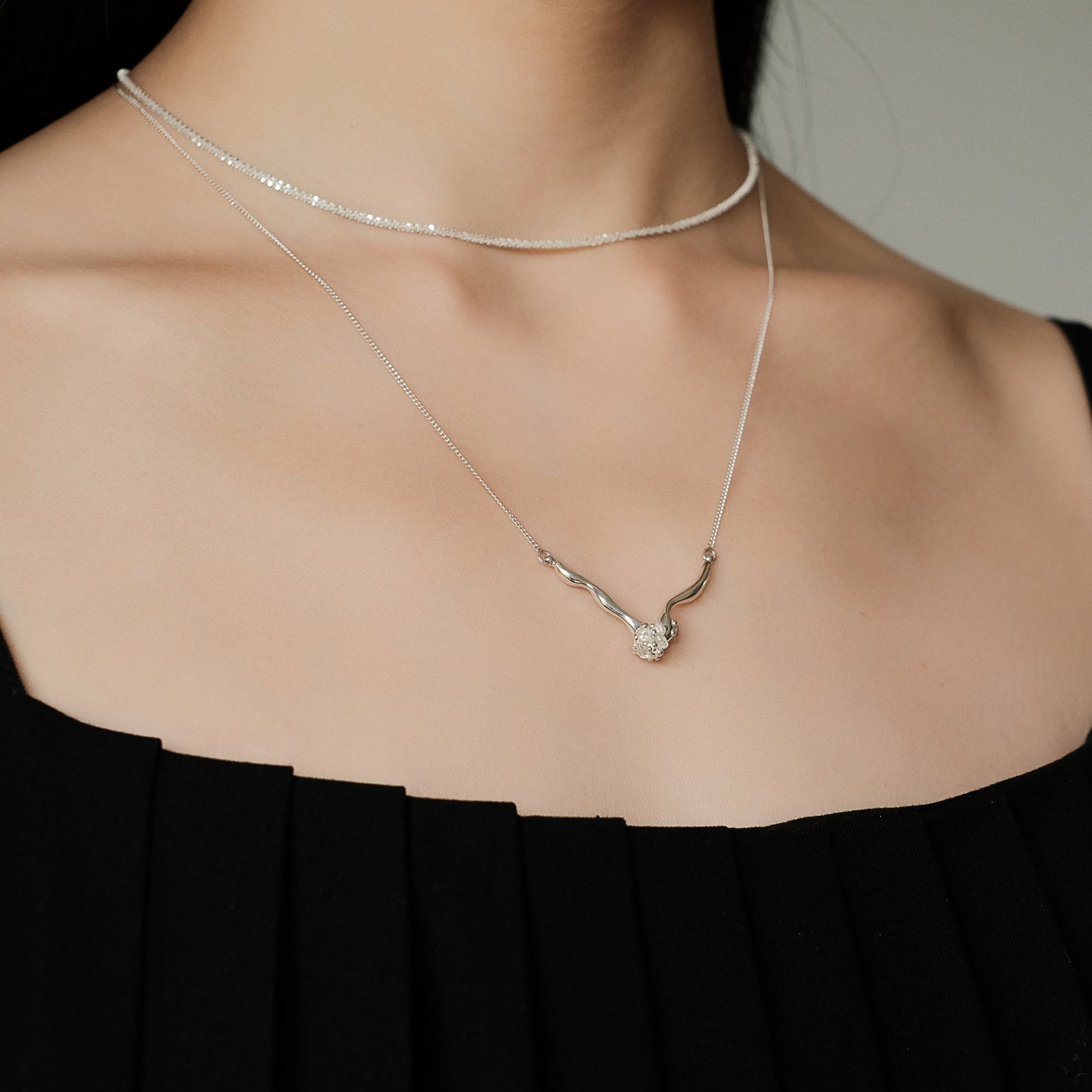 コズミック アイス クリスタル シリーズ -カーマイン ミスト アイス クリスタル V ネックレス - スターリングシルバー