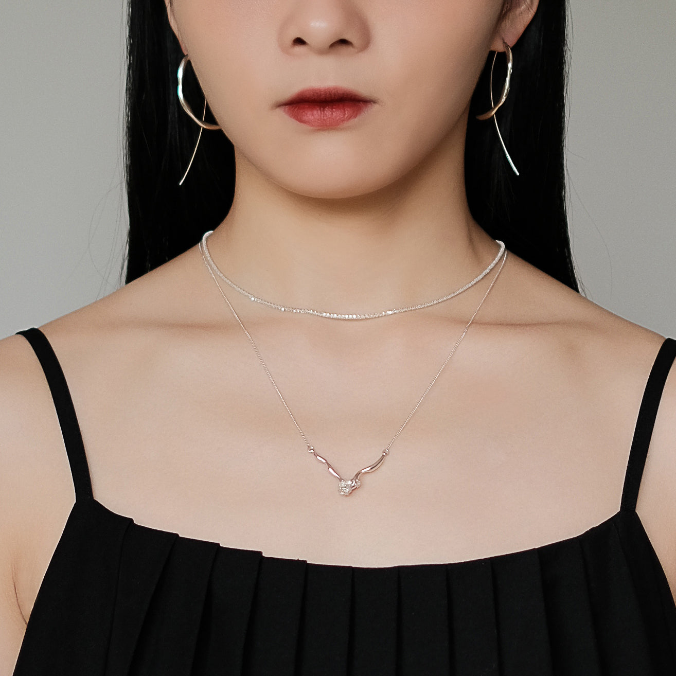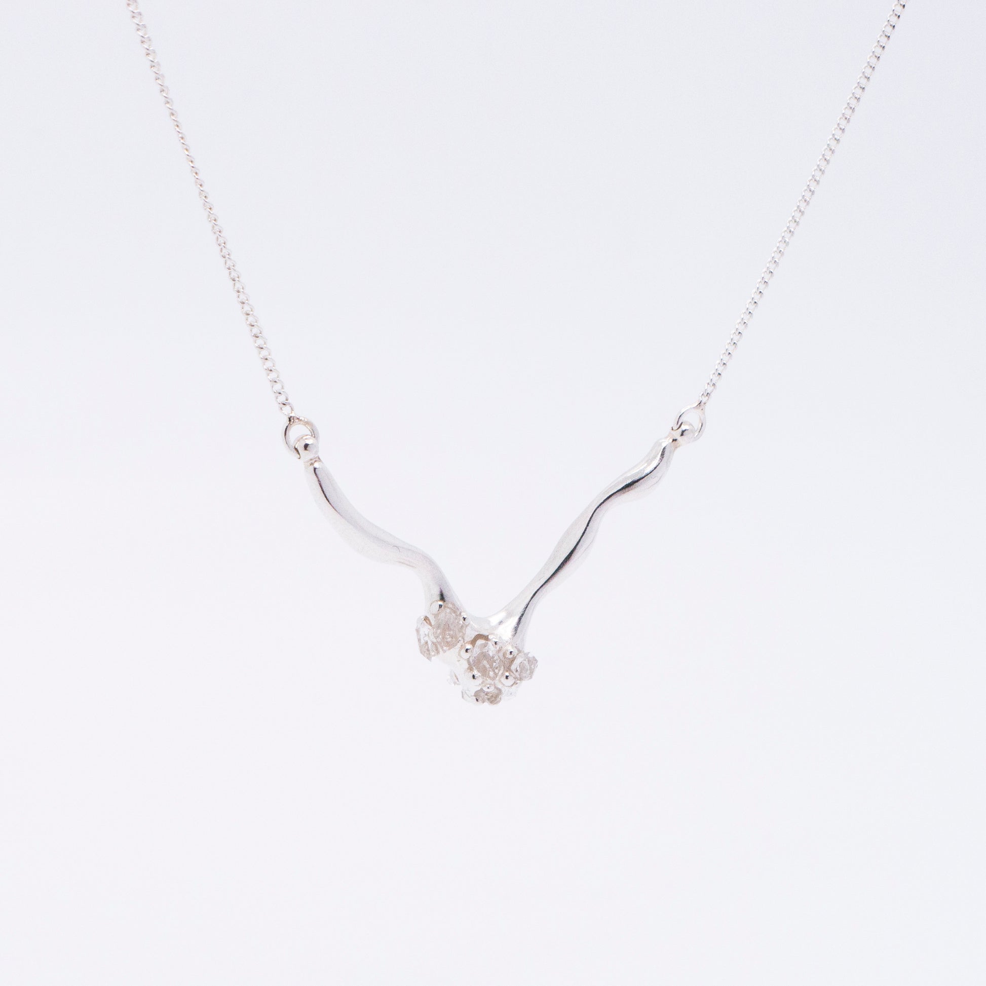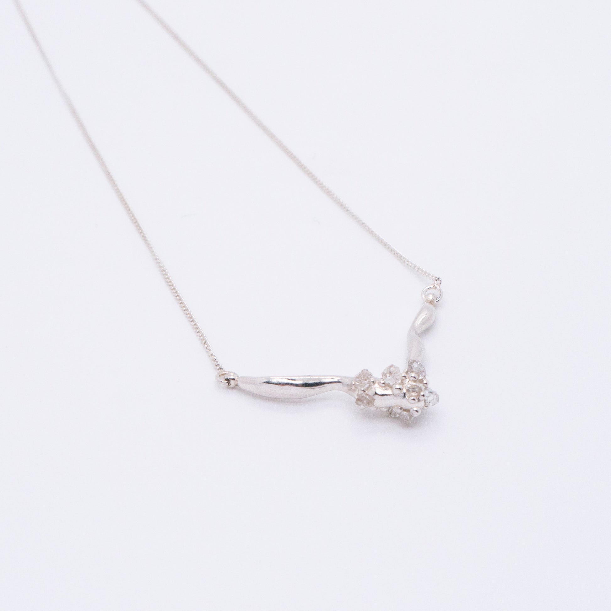 コスミック アイス クリスタル ルージュ ミスト アイス クリスタル V ネックレス - スターリングシルバー