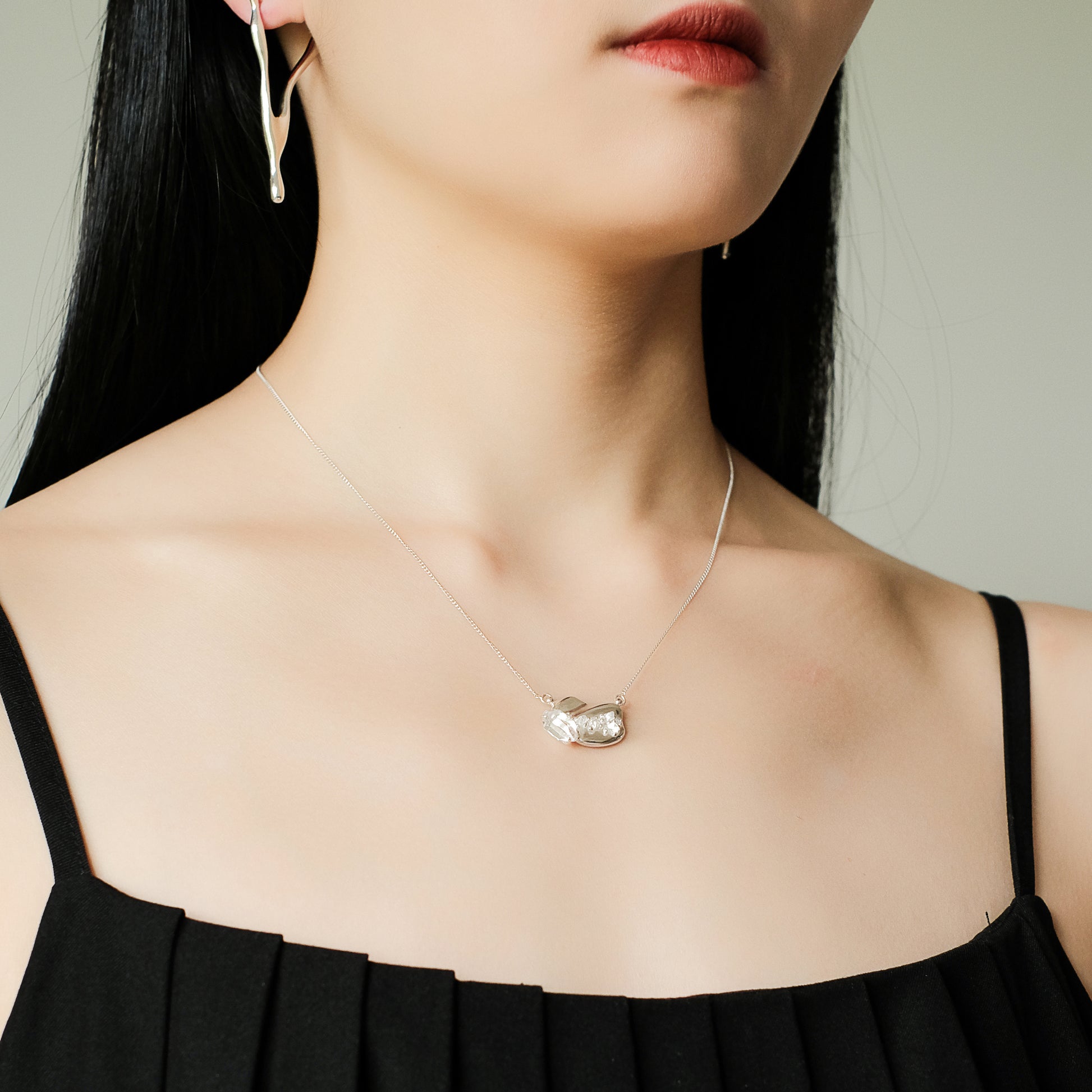 コズミック アイス クリスタル ブラッシュ ミスト ラージ アイス クリスタル ネックレス - スターリングシルバー