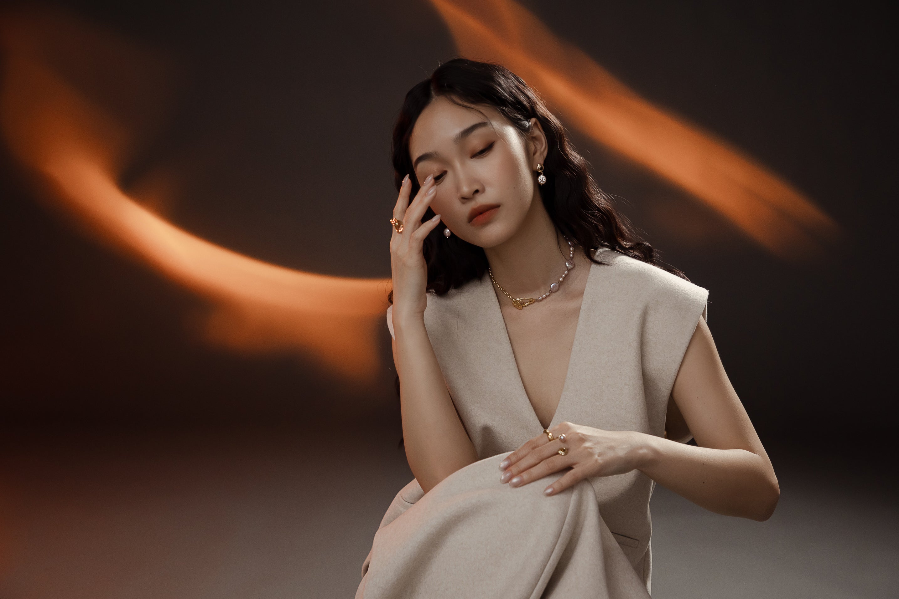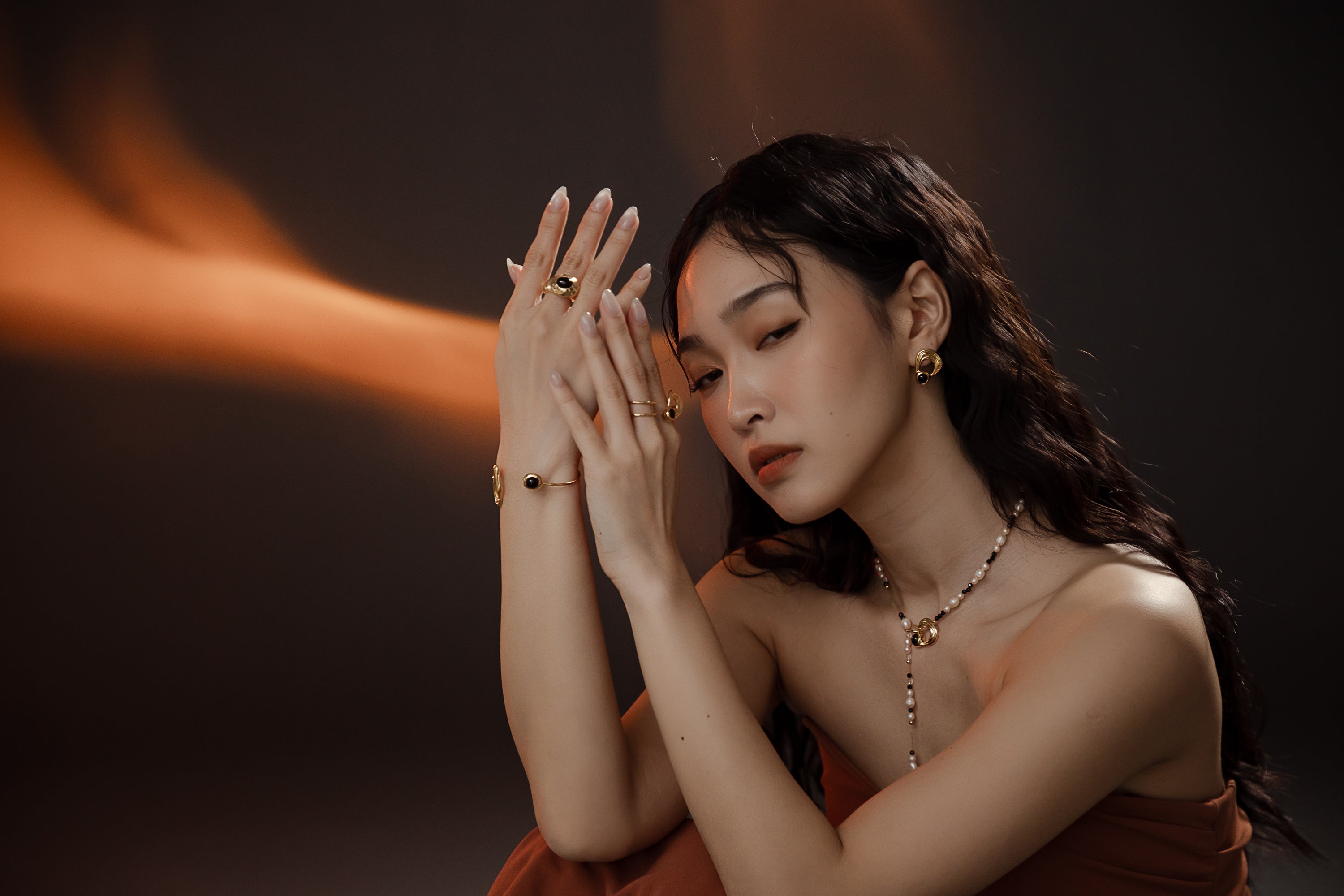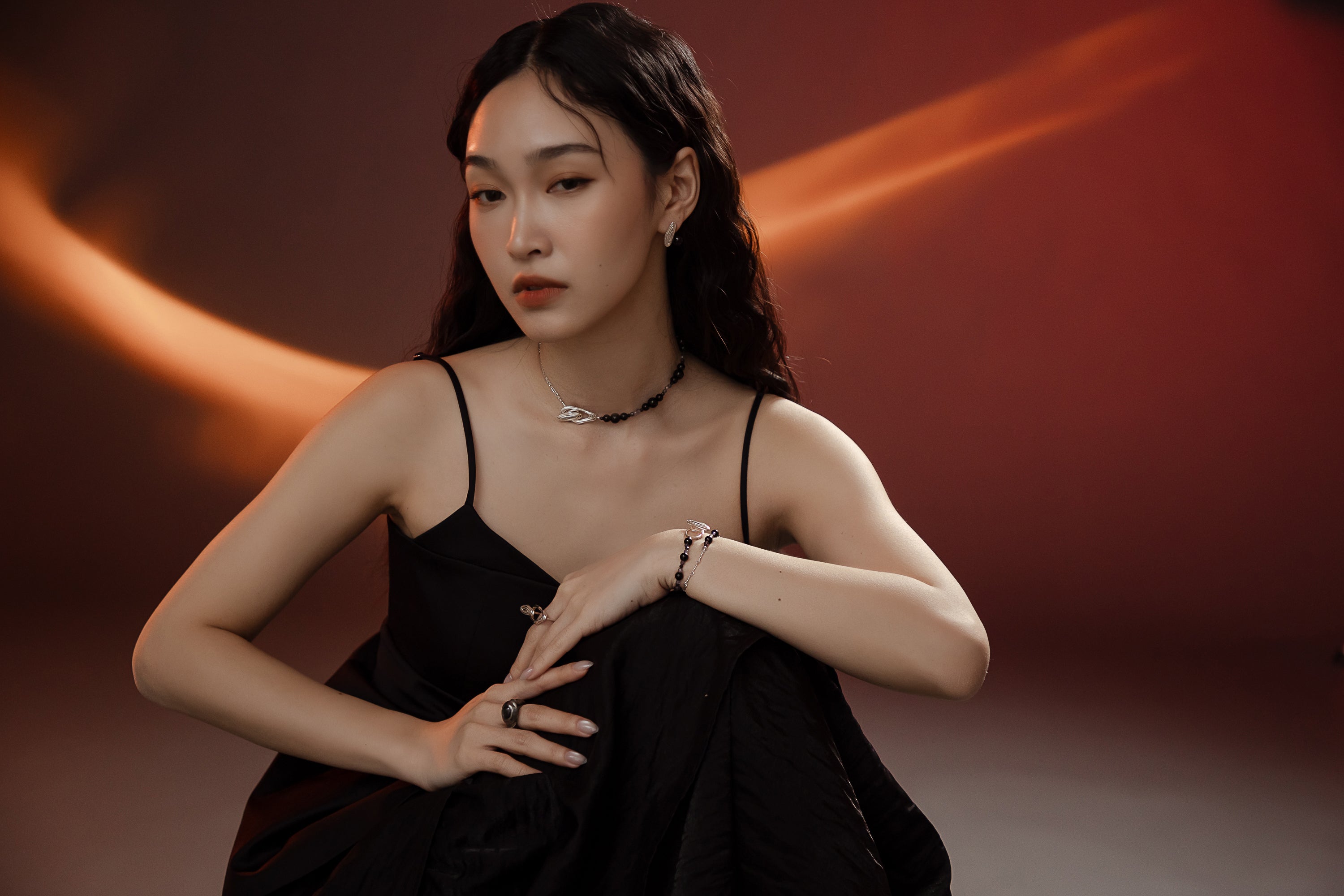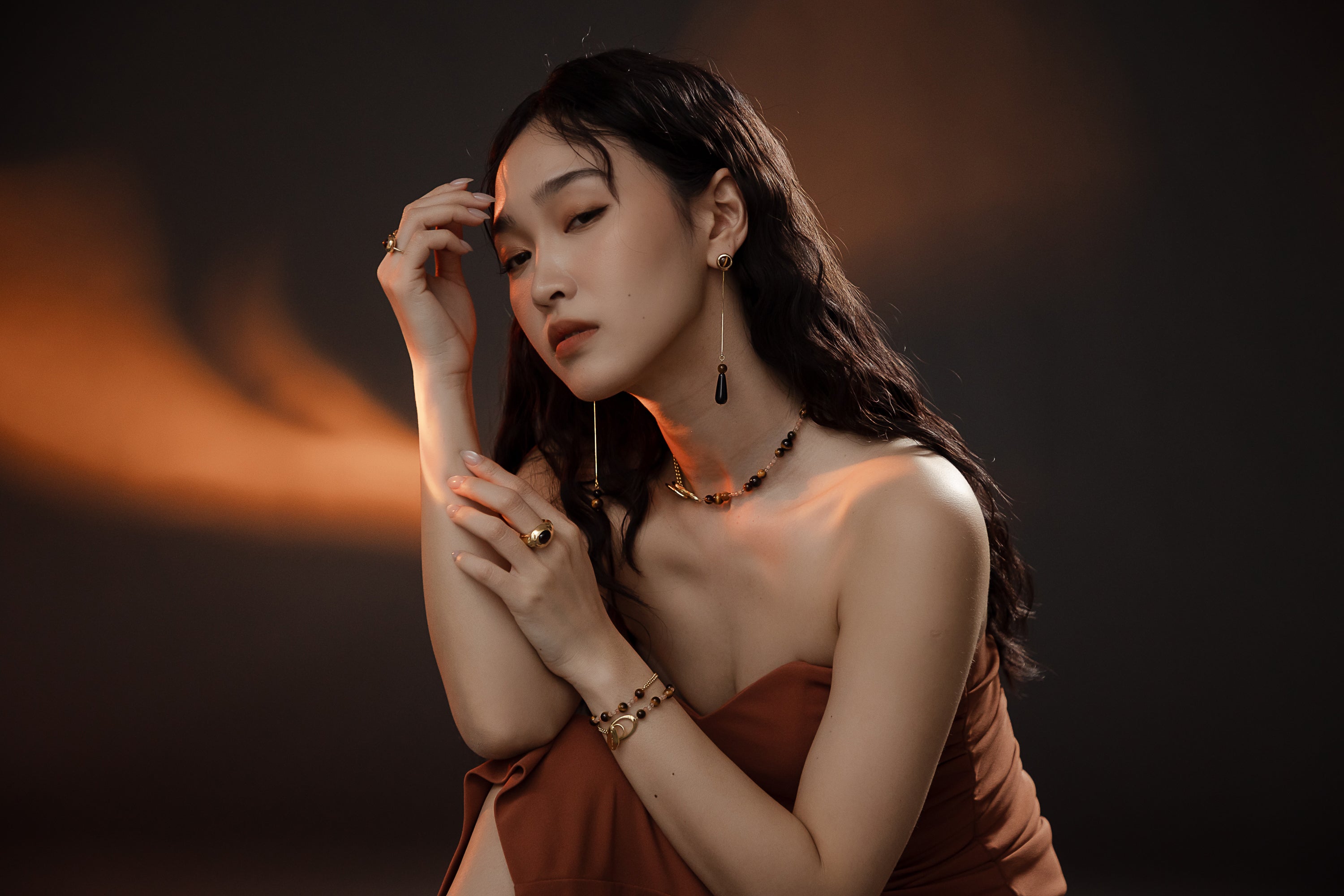 솔라 플래시 선스팟 골드 럭키 스톤 반지/귀걸이 - 순은 염색 블랙