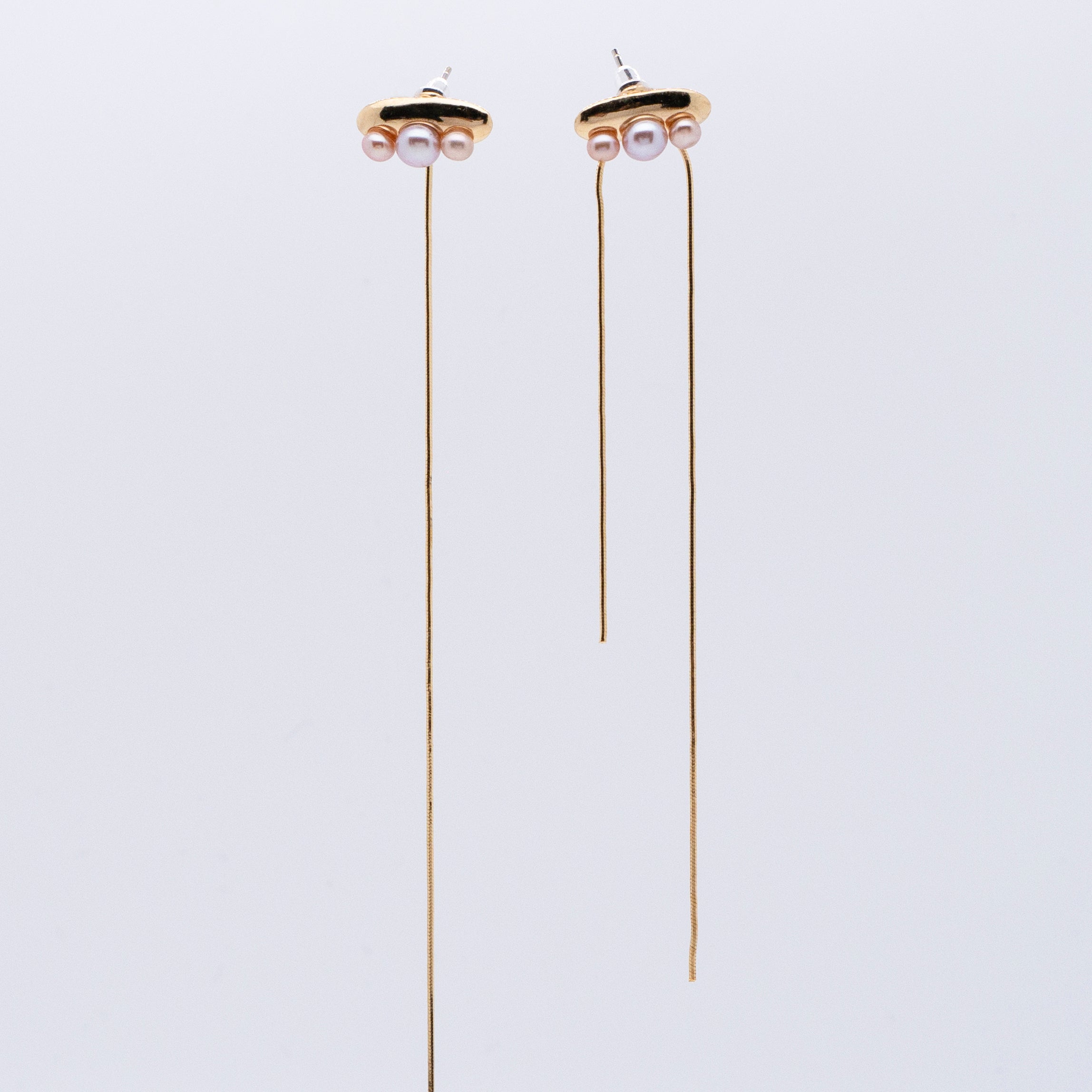 太陽閃焰 太陽黑子金運石垂墜珍珠耳環-厚鍍18K金 (L)