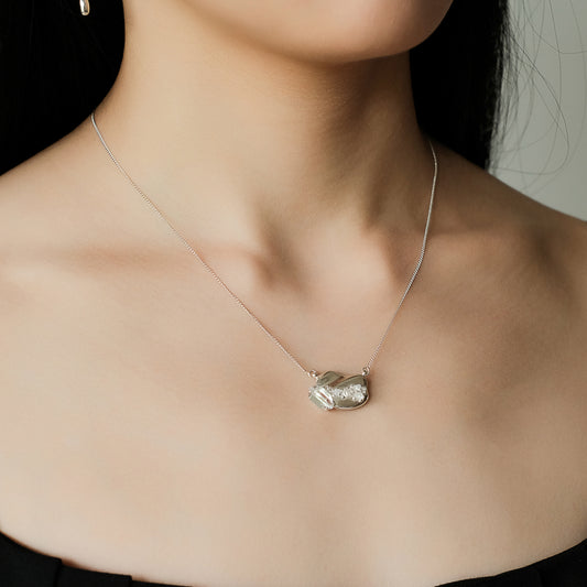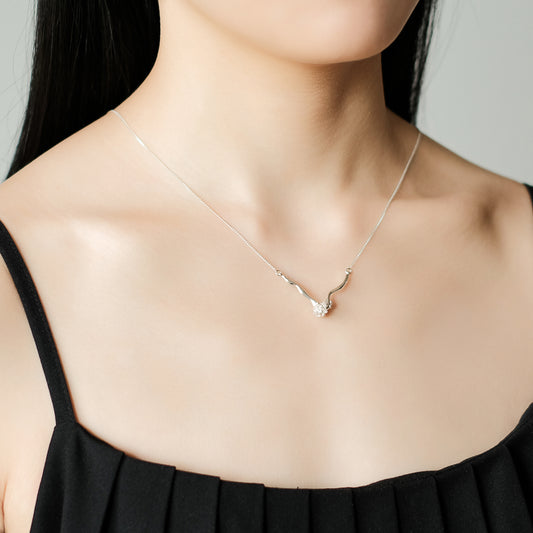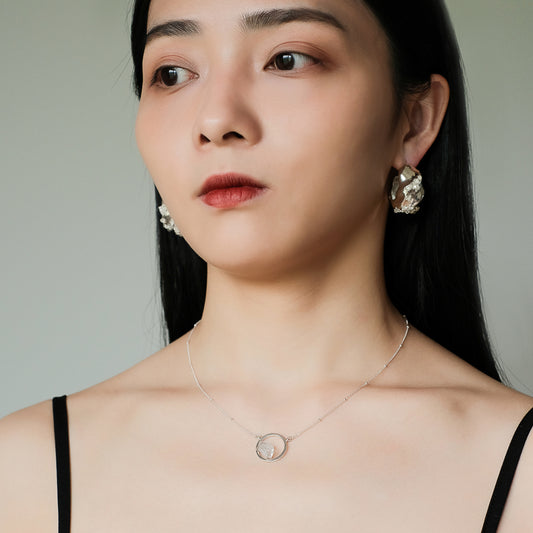 다중우주 시간 여행 소형 진주 쇄골 목걸이 - 스털링 실버