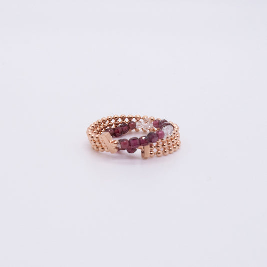 코스믹 아이스 크리스탈 루즈 미스트 아이스 크리스탈 가넷 더블 서클 비드 체인 링 - 두꺼운 로즈 골드 도금