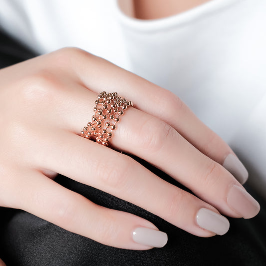 우주 얼음 크리스탈 비드 체인 더블 서클 링 - 두꺼운 로즈 골드 도금