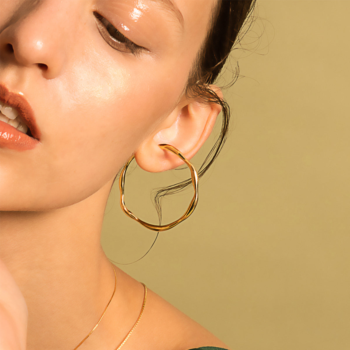 버블 성운 대형 후프 이어 클립 - 두꺼운 14K 금 도금