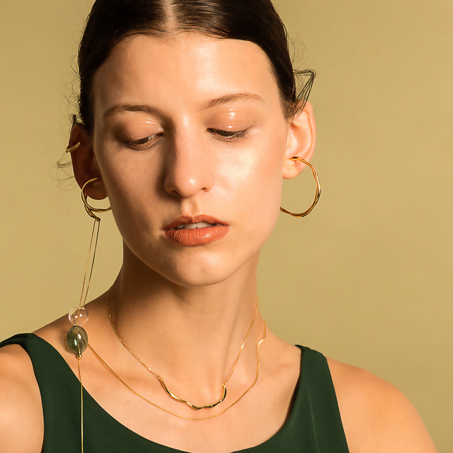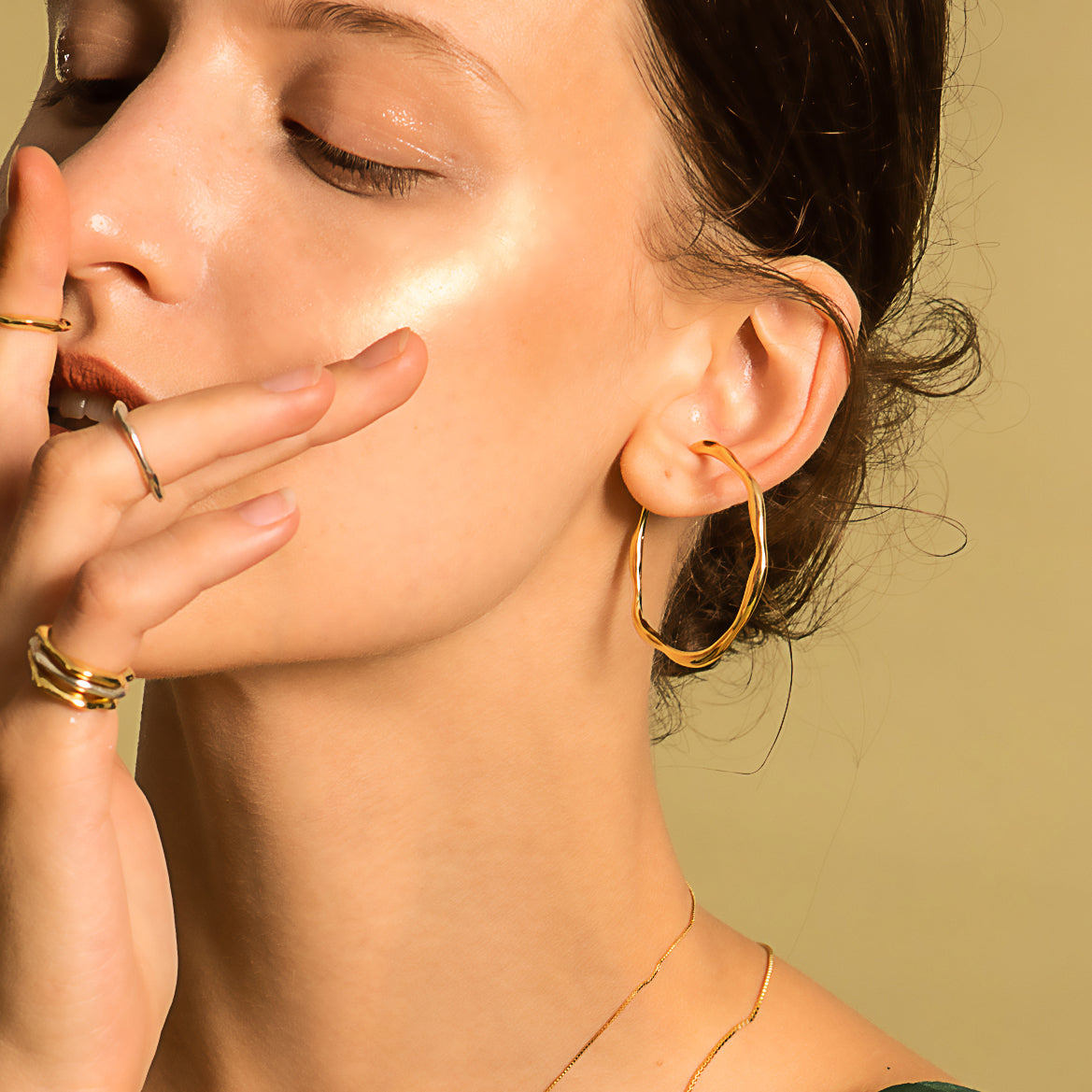 Bubble Nebula 시리즈 대형 원형 이어 클립 - 두꺼운 14K 금 도금