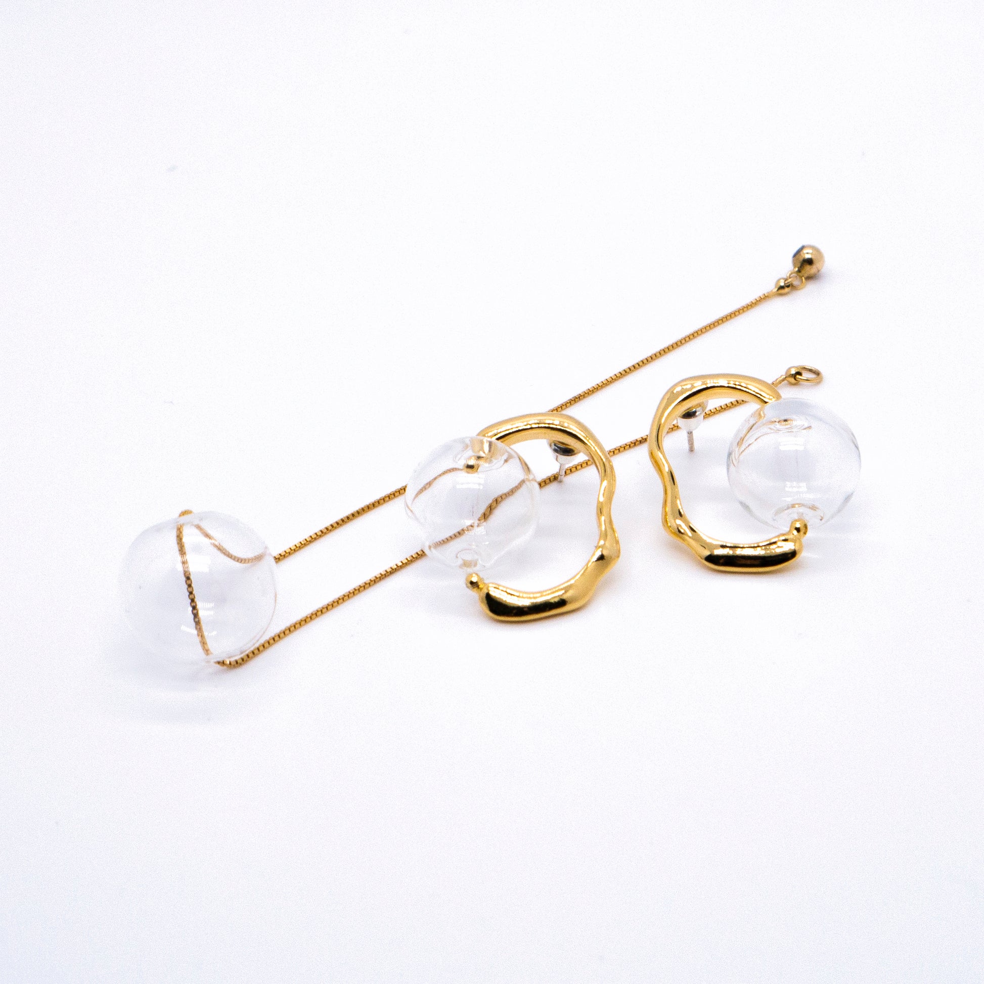/ 제품 사양-귀걸이 소재 : 14K 골드로 두껍게 도금된 황동, 스털링 실버 이어핀, 핸드메이드 유리 버블/ 사이즈 : 2.5*2cm
