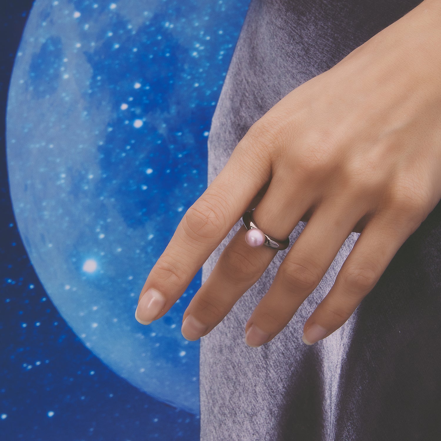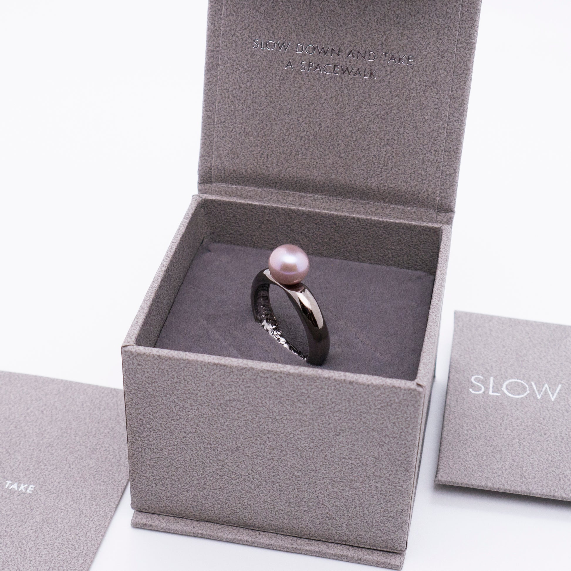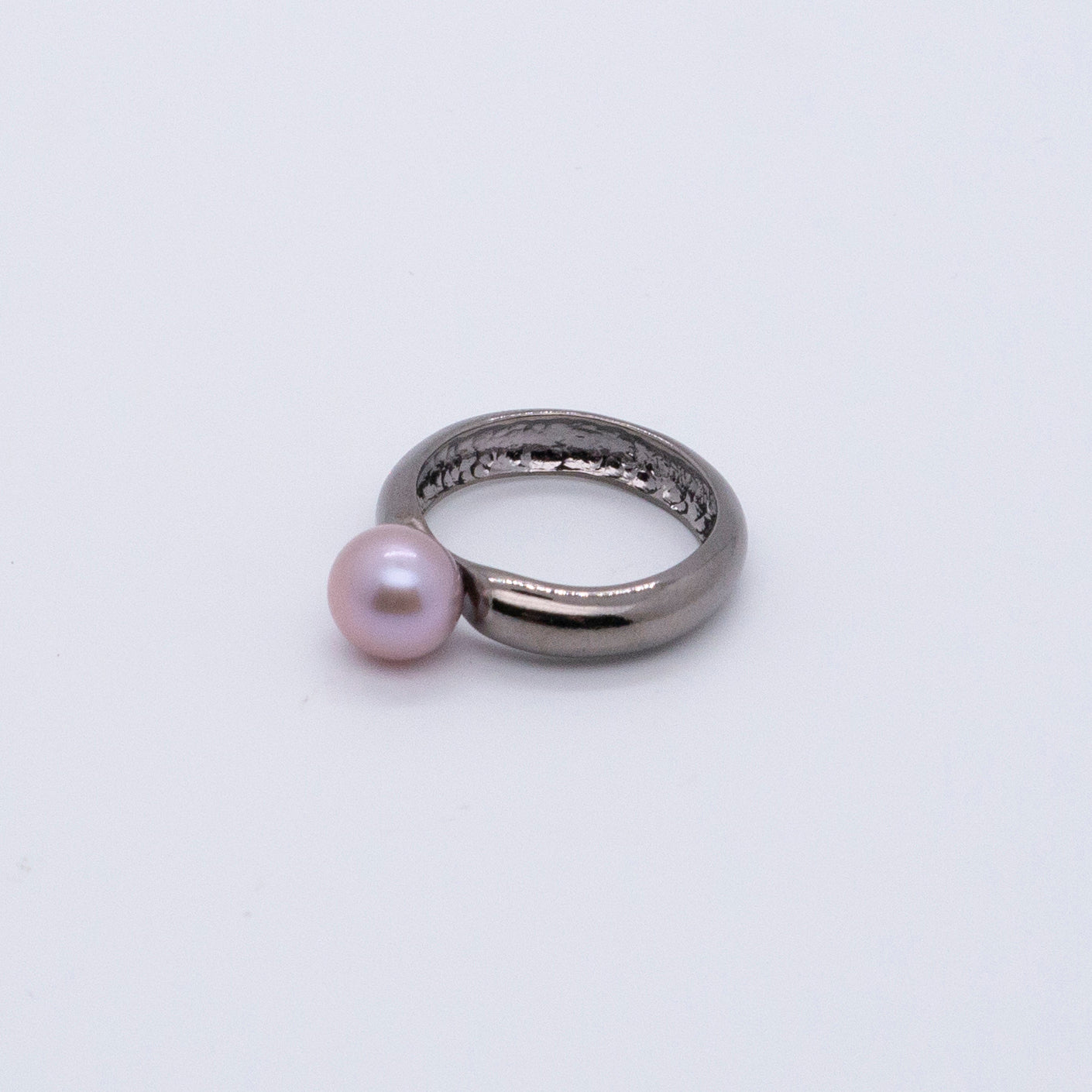 Multiverse 시리즈 - 심플 라지 진주 반지 - 두꺼운 블랙 골드 도금