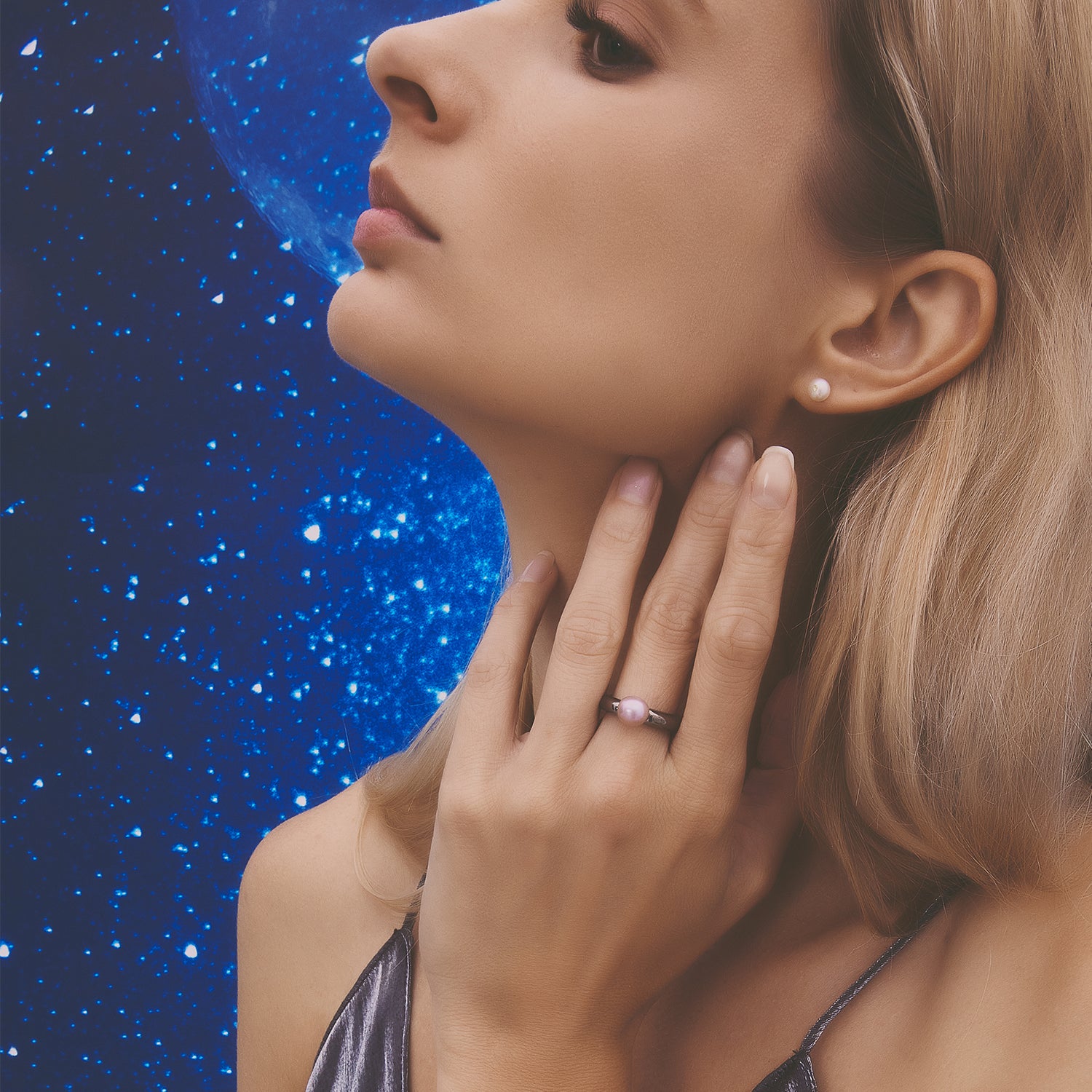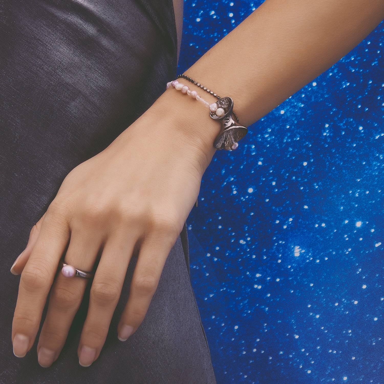 멀티버스 심플 라지 펄 링-두꺼운 블랙 골드 도금