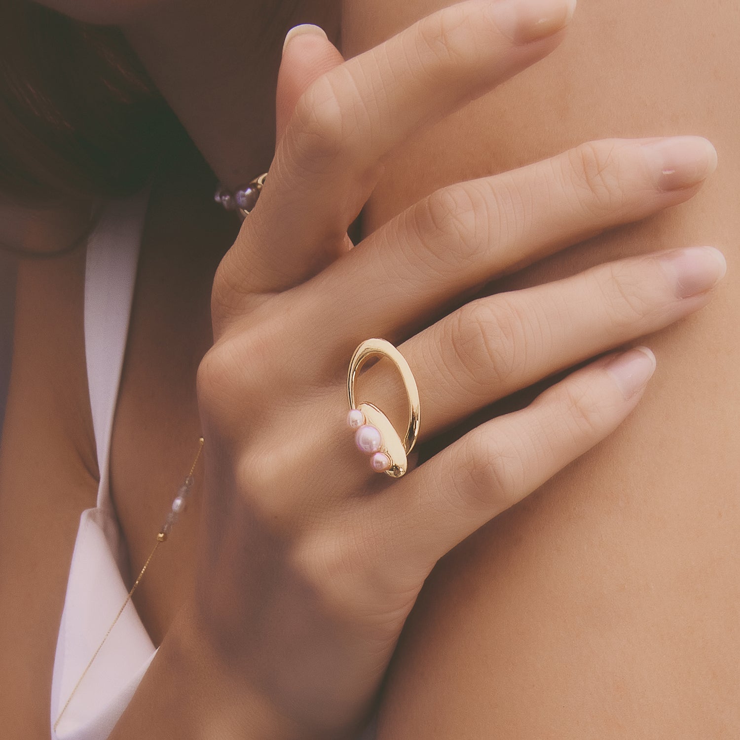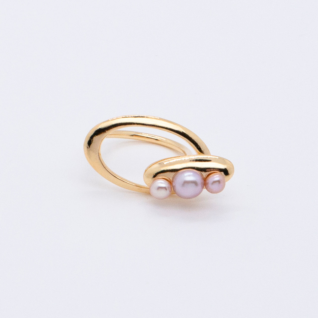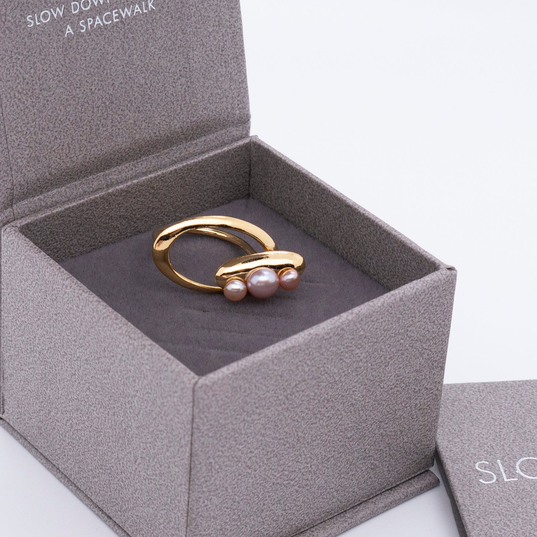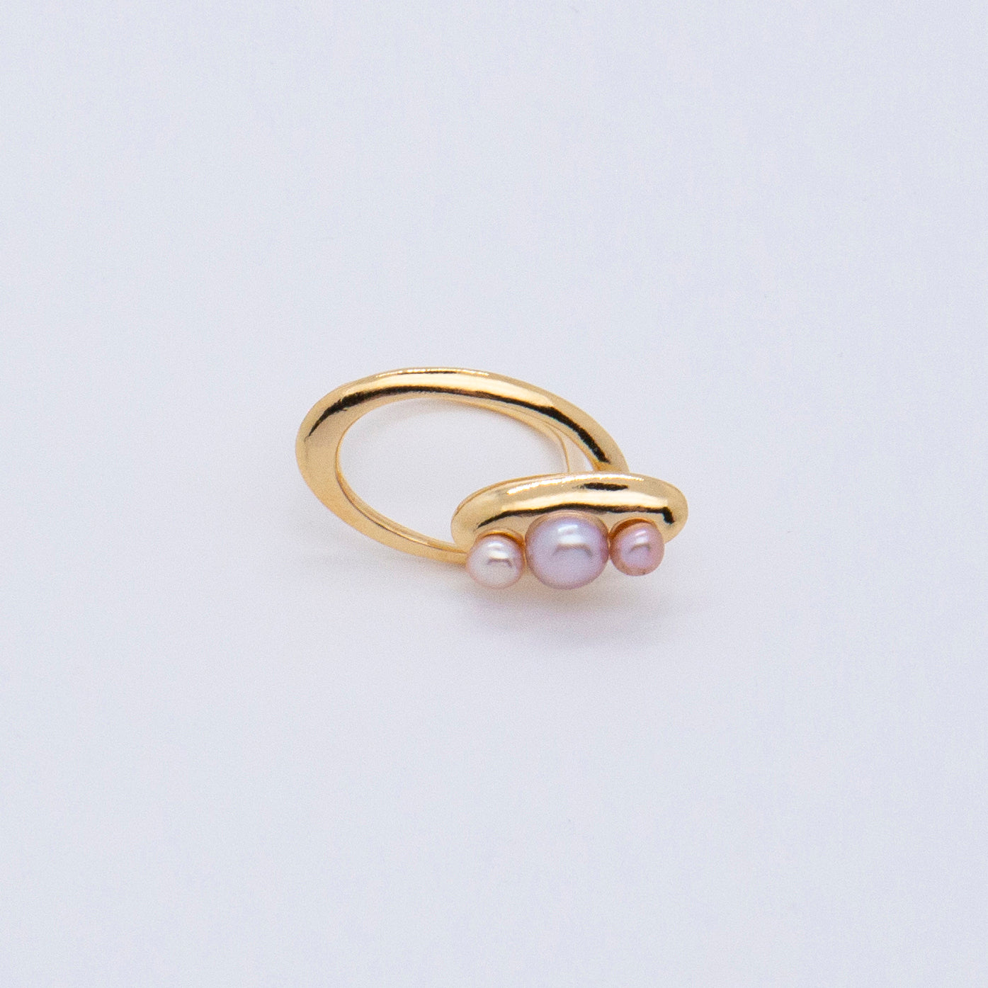 멀티버스 시리즈 - 시간 여행 소형 진주 반지 - 두꺼운 18K 골드 도금