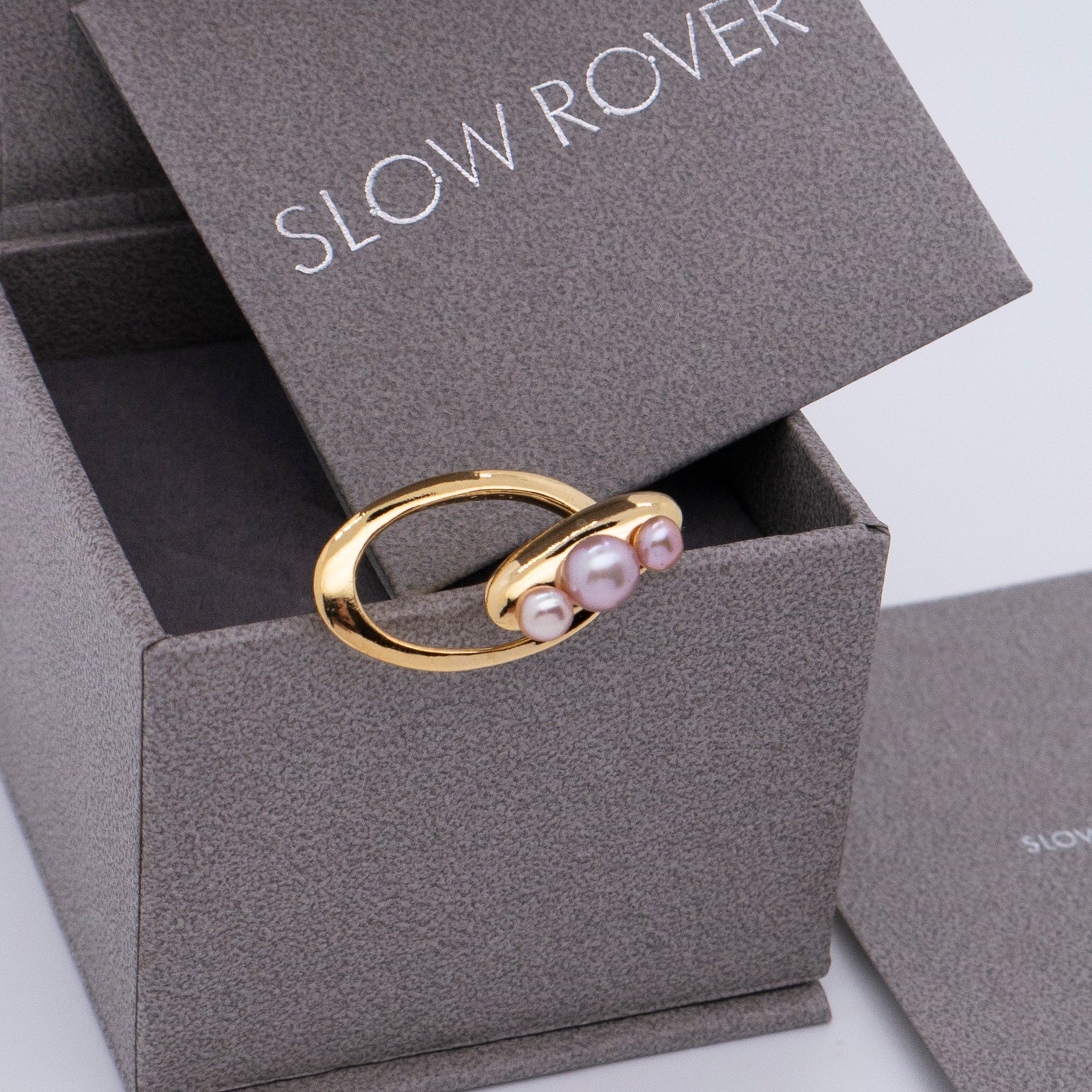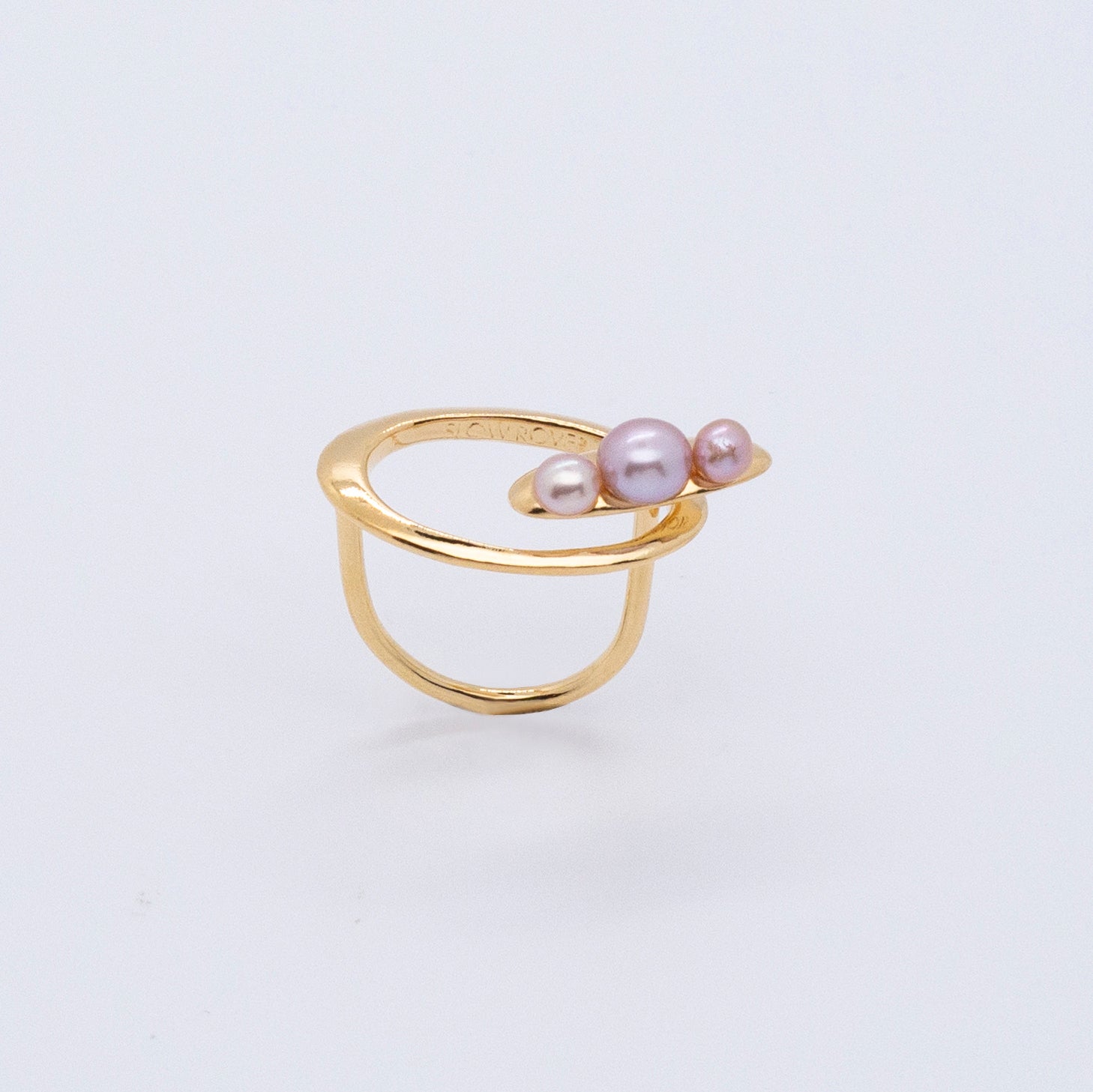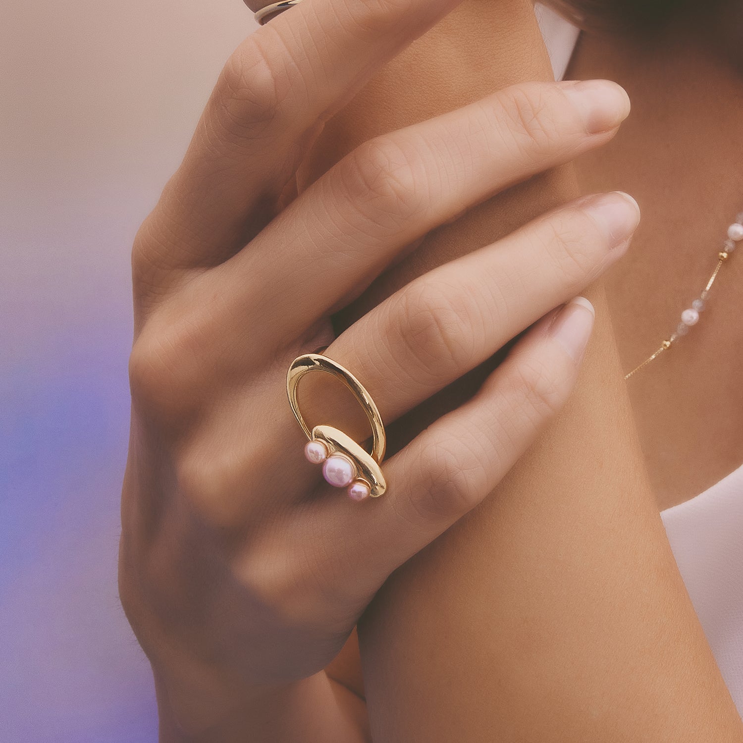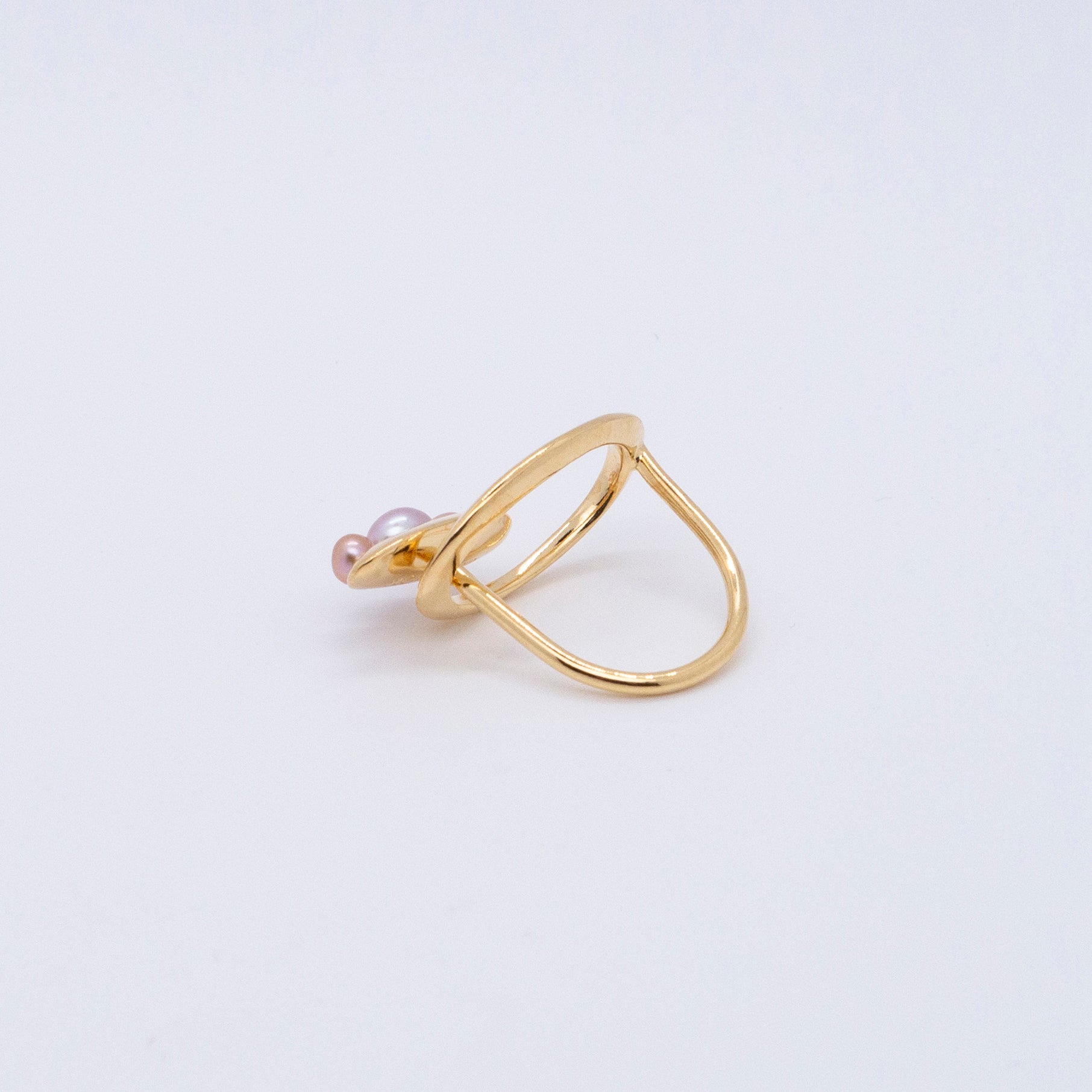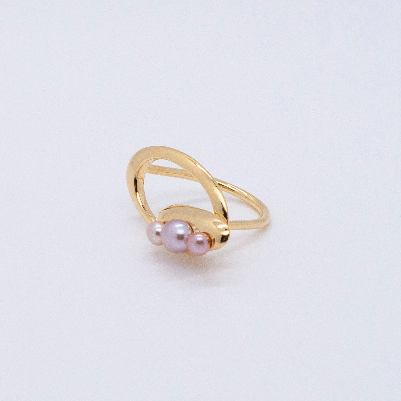 멀티버스 시리즈 - 시간 여행 소형 진주 반지 - 두꺼운 18K 골드 도금