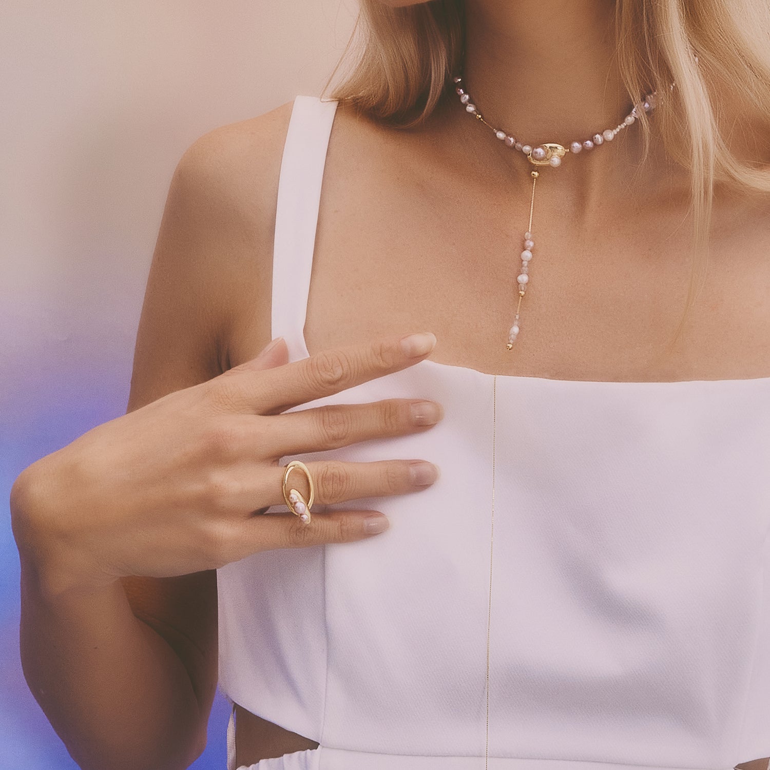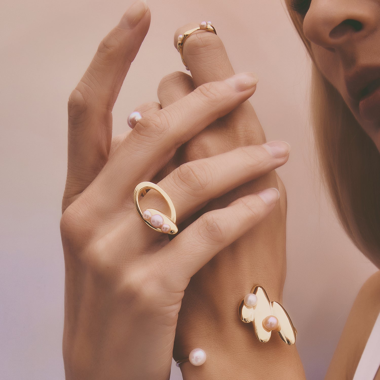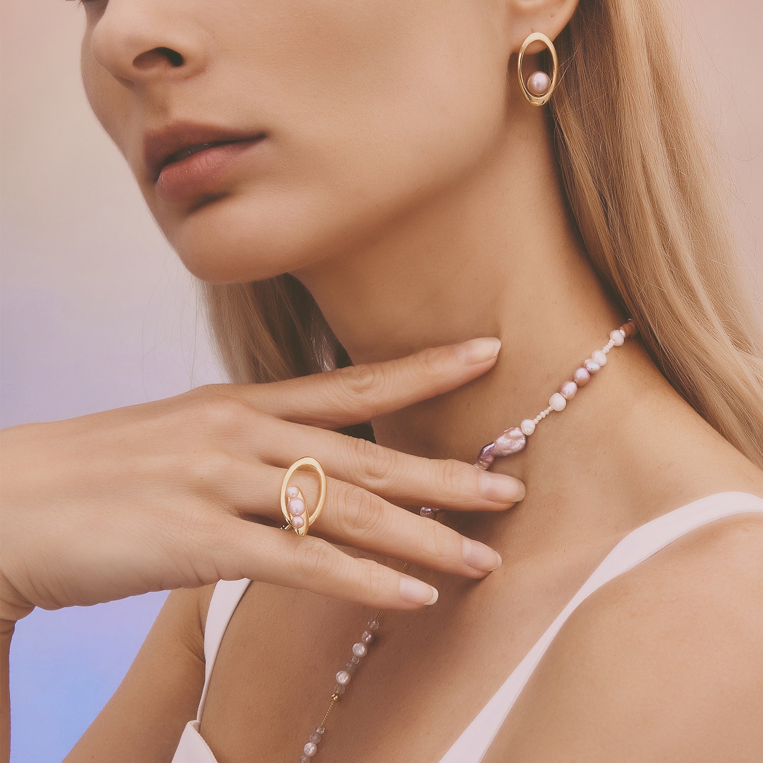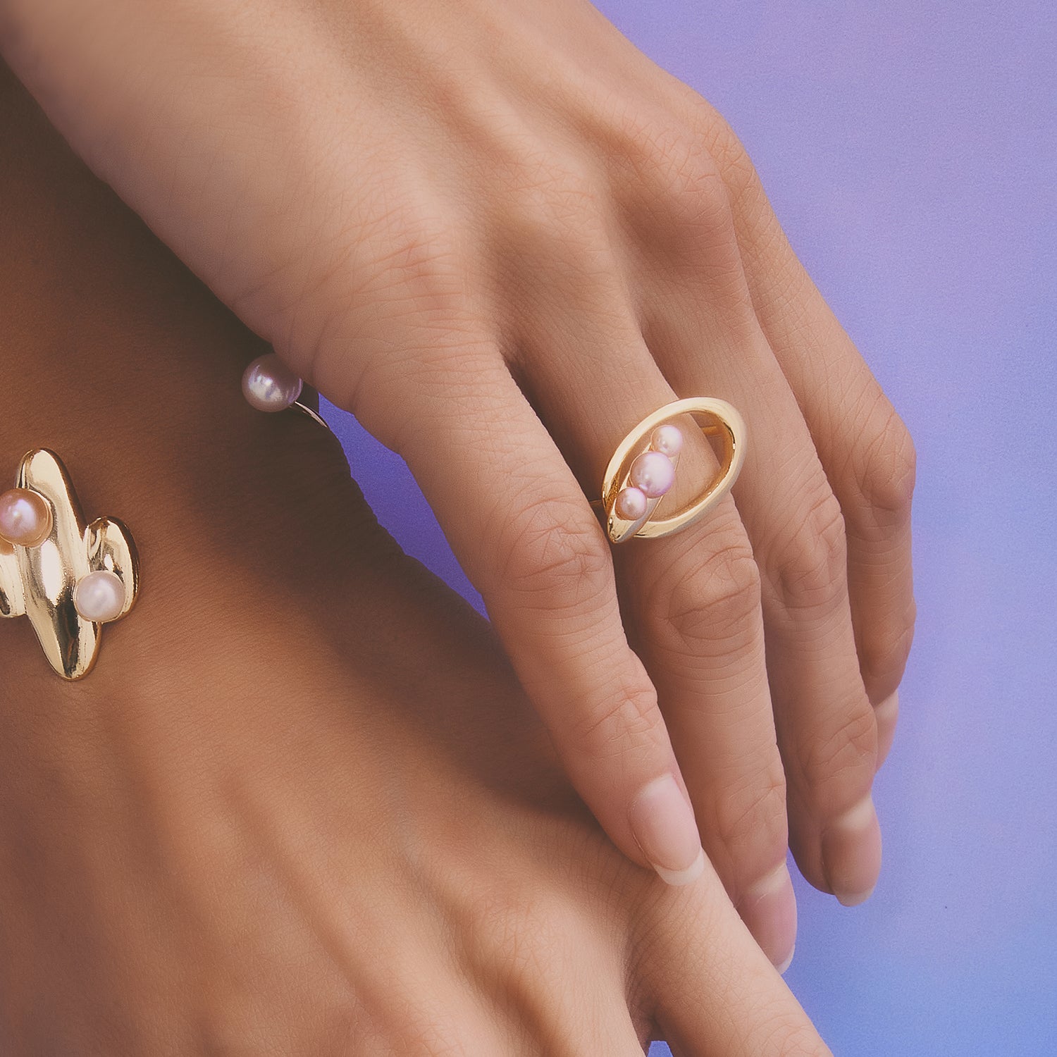 멀티버스 시리즈 - 시간 여행 소형 진주 반지 - 두꺼운 18K 골드 도금