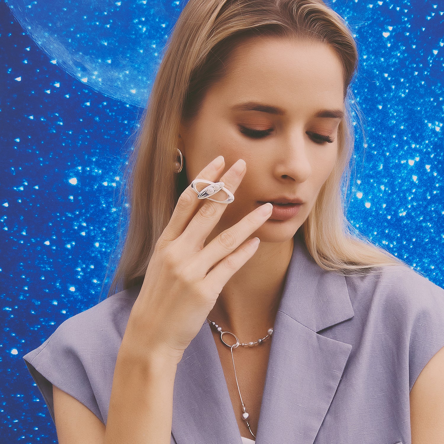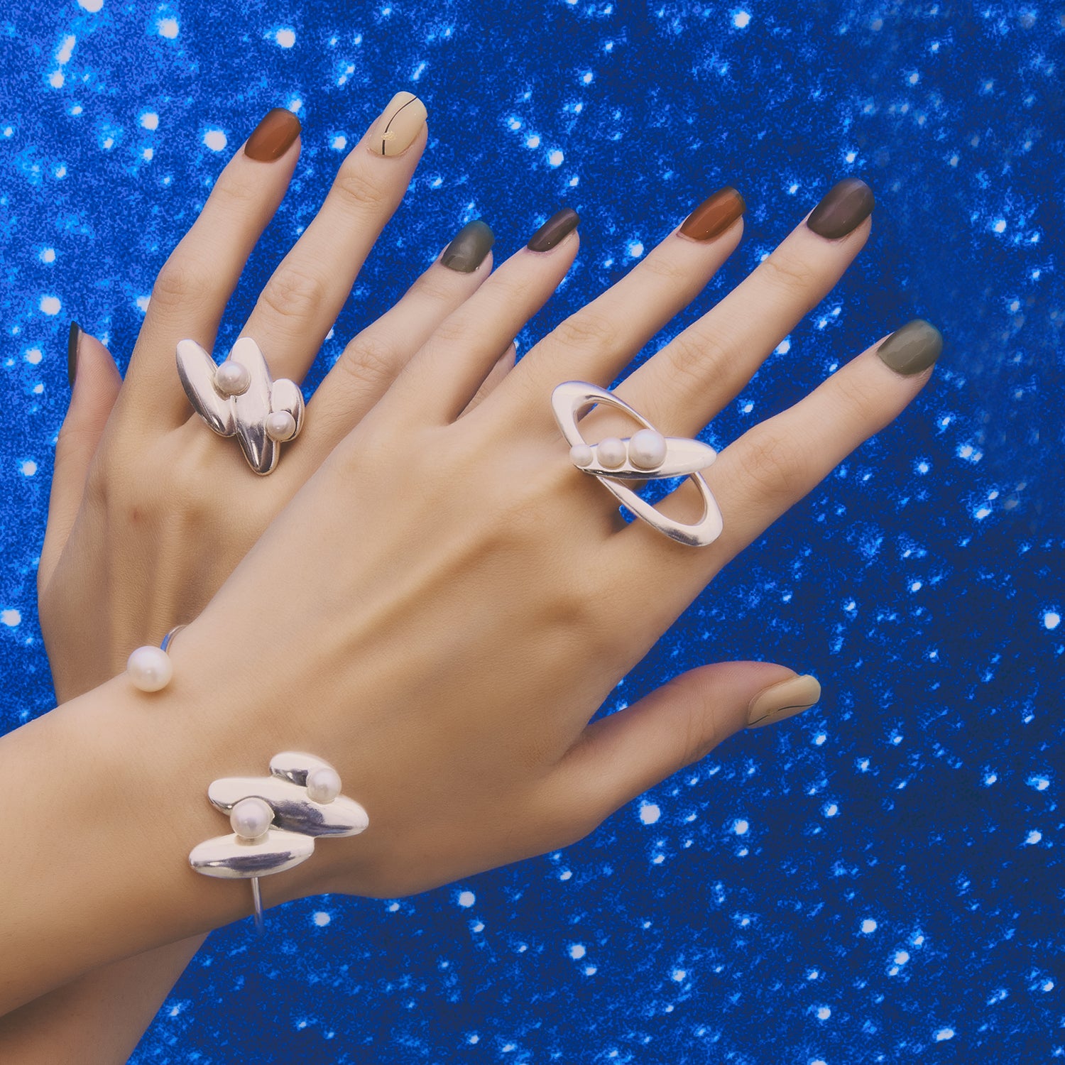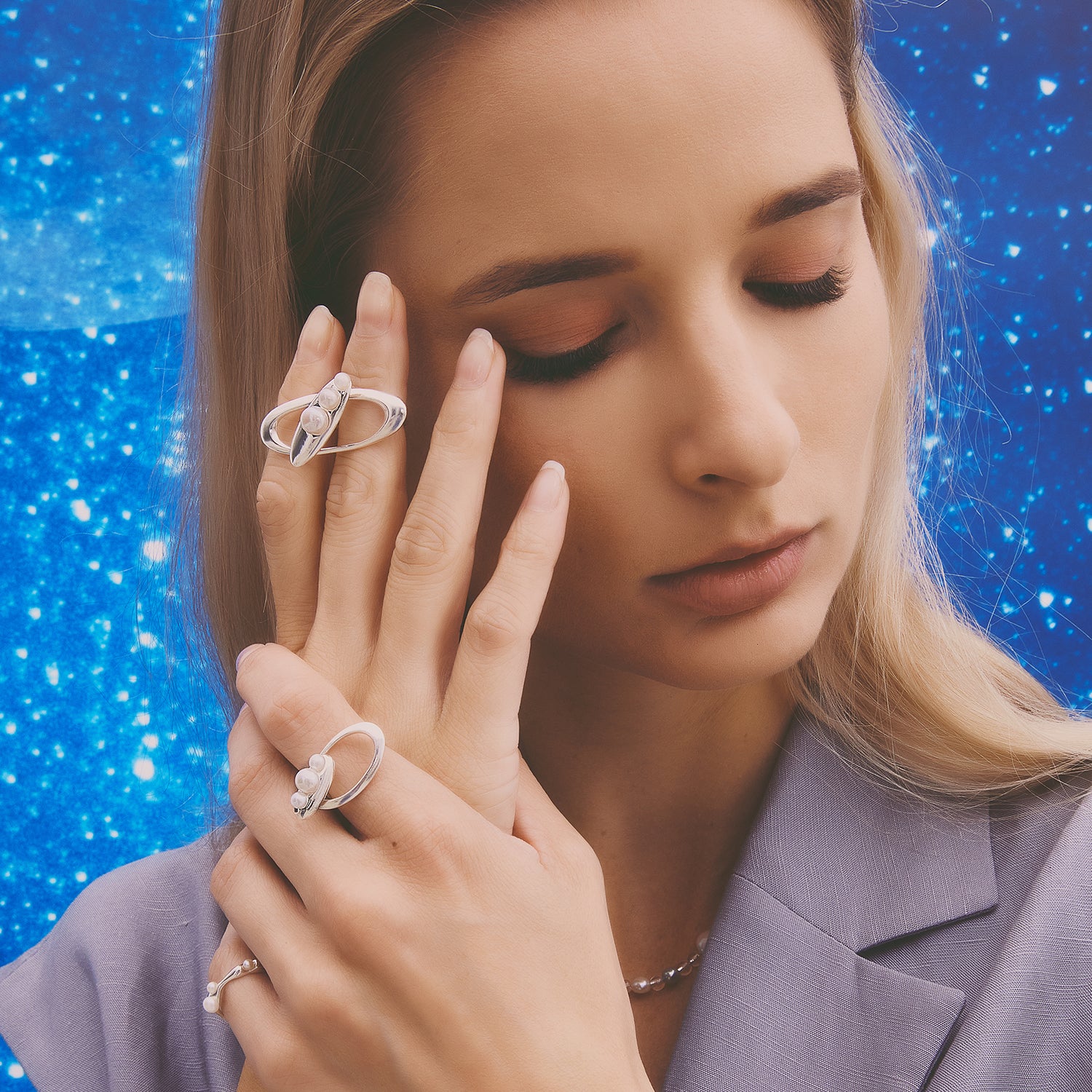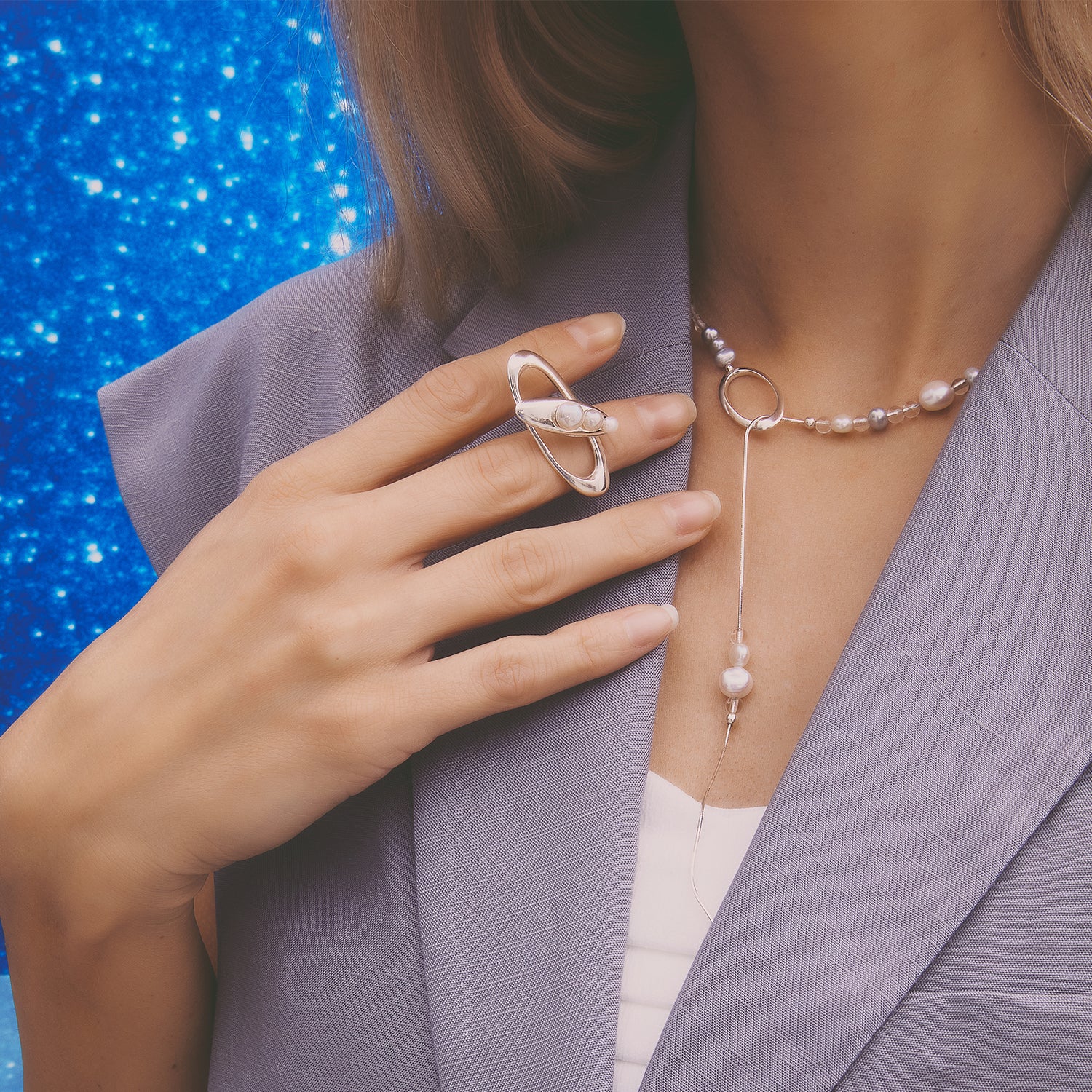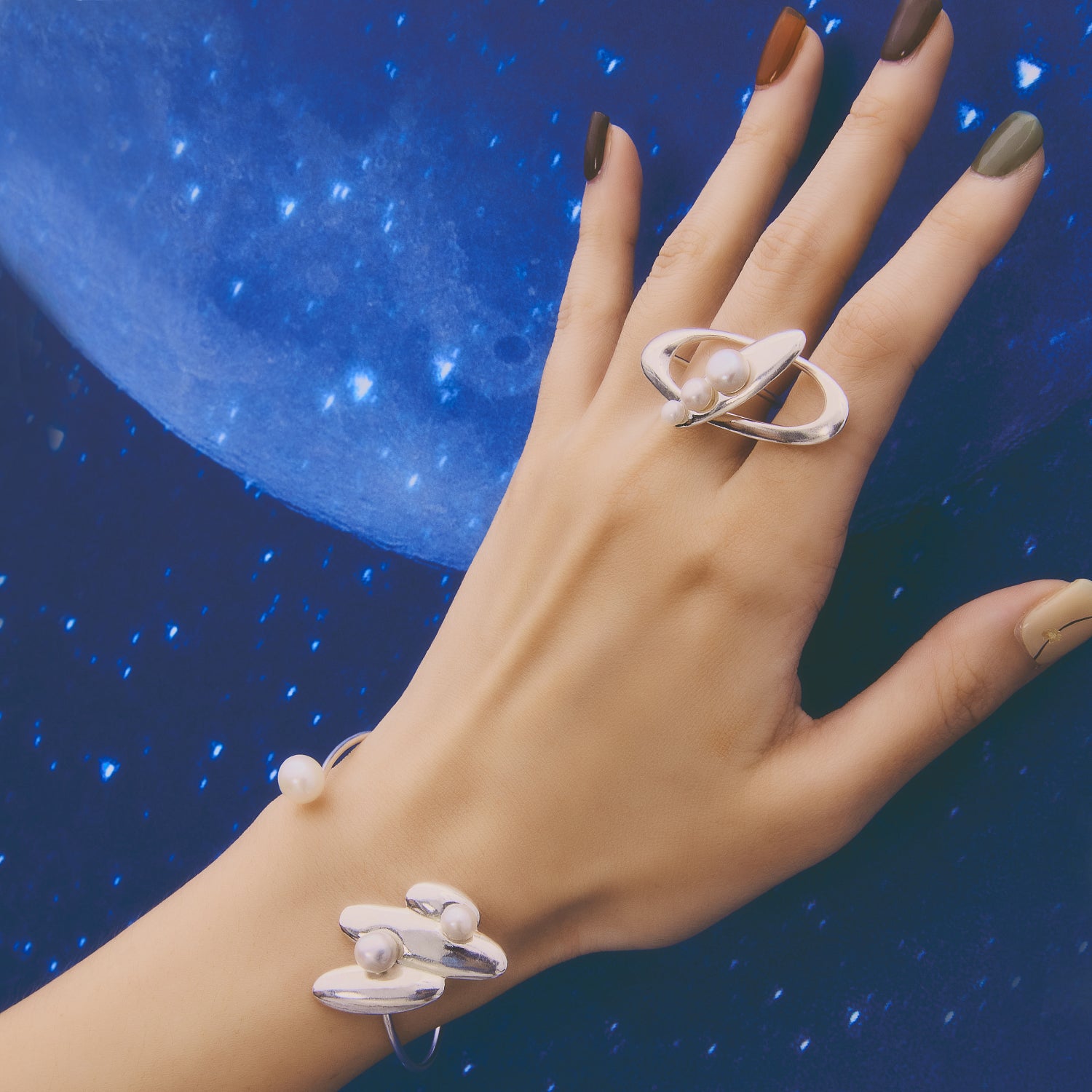 Multiverse 컬렉션 - 시간 여행 그라데이션 진주 반지 - 스털링 실버