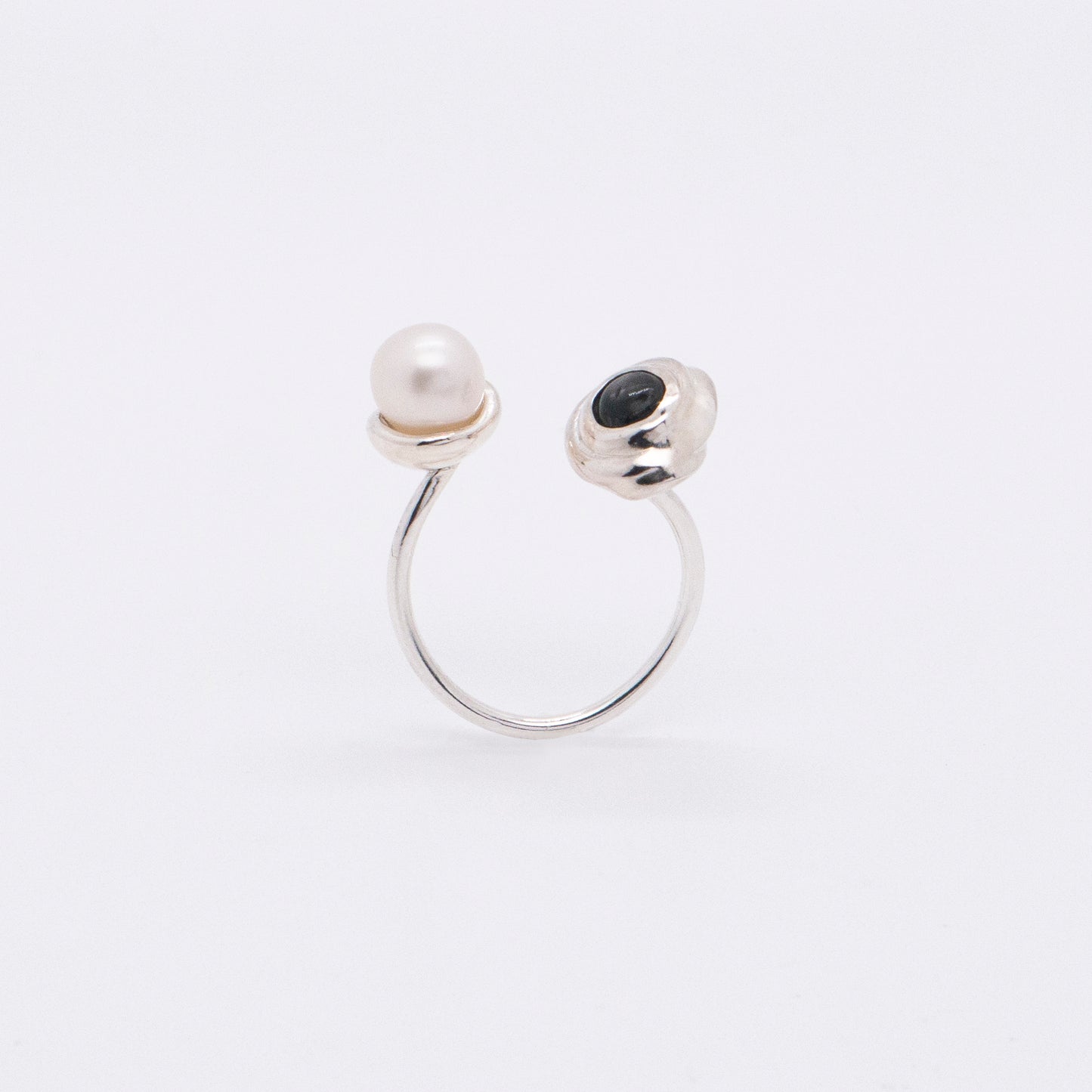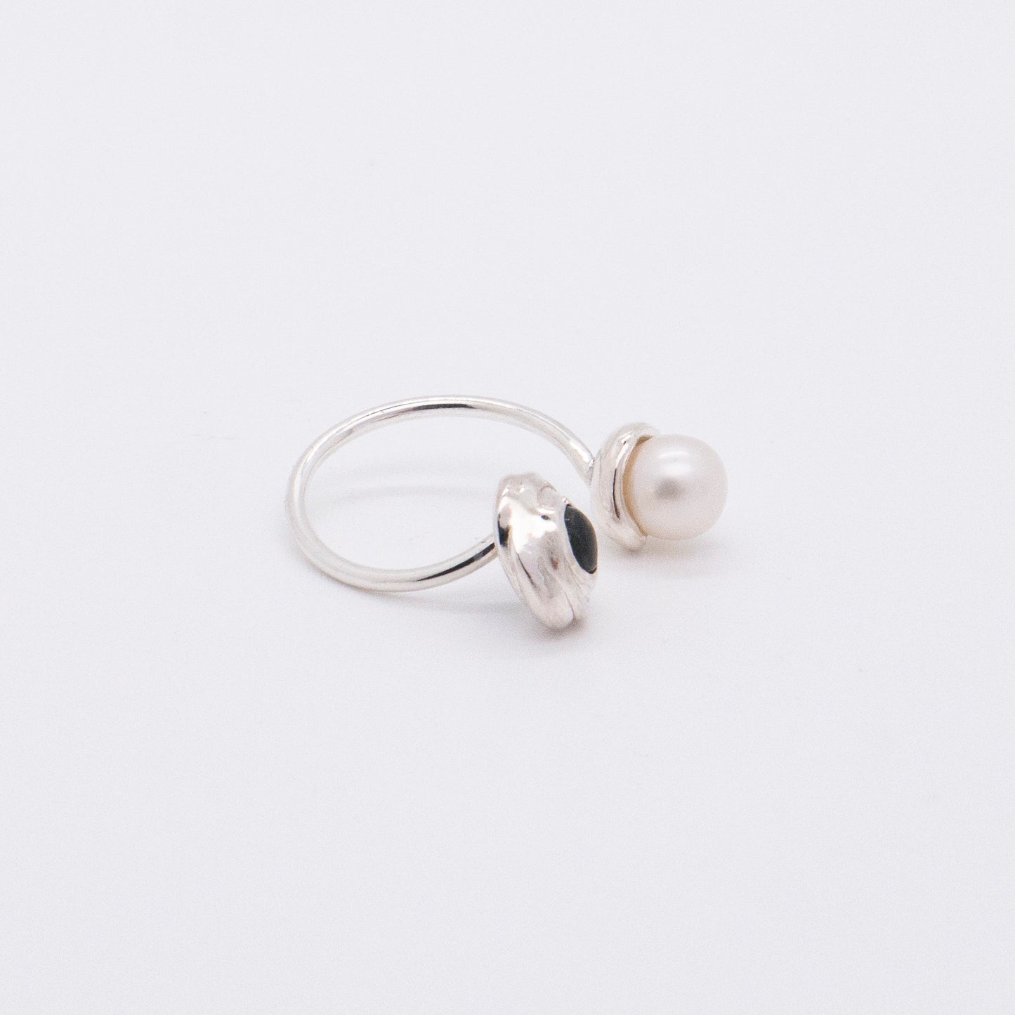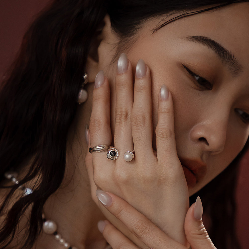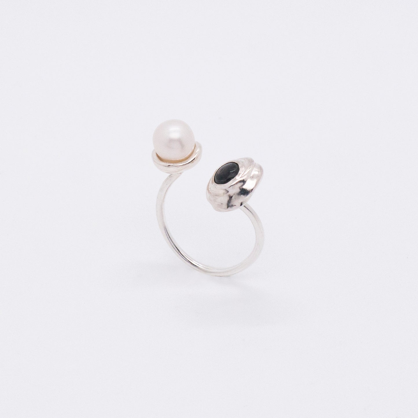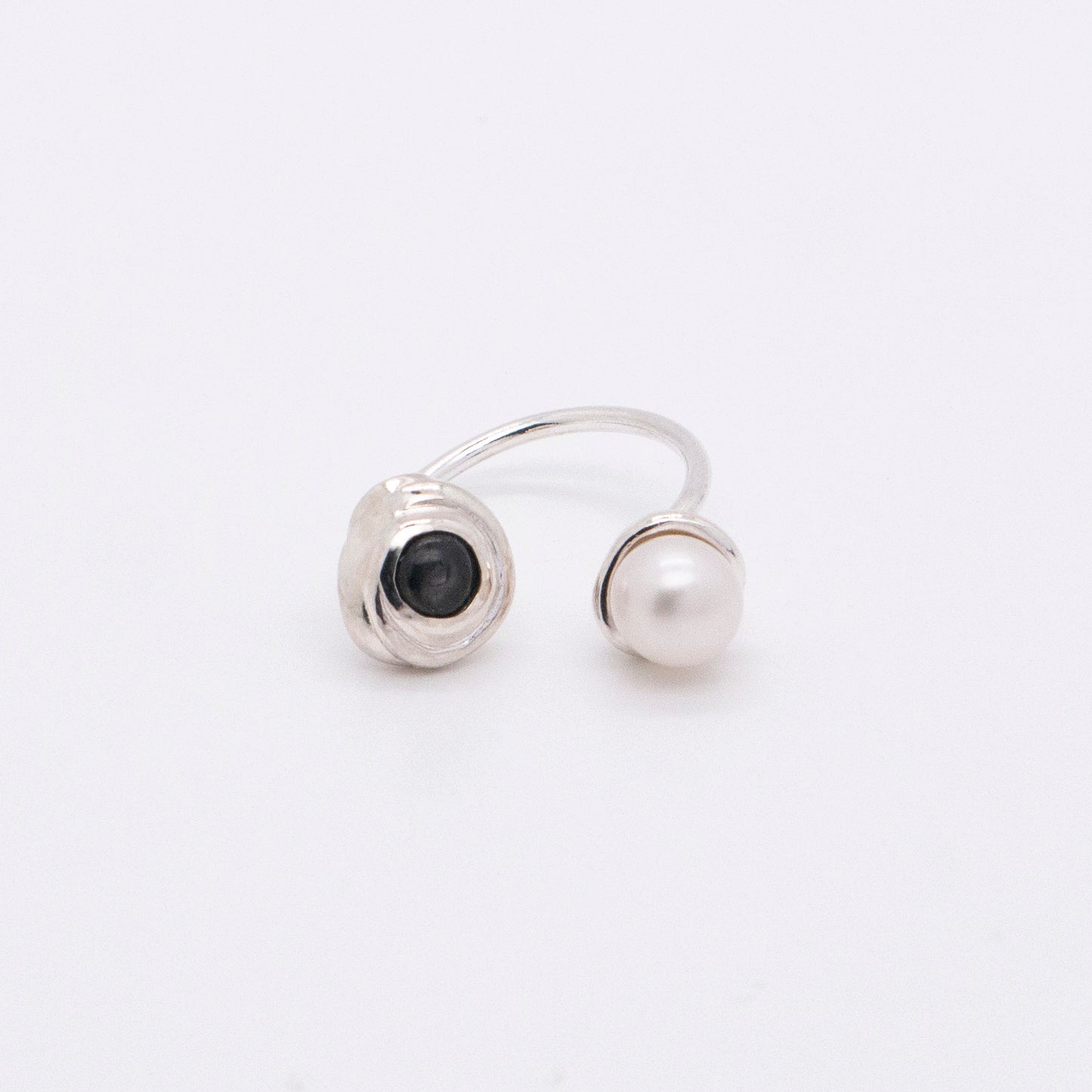 솔라 플래시 시리즈 선스팟 골드 럭 스톤 화이트 펄 반지 - 스털링 실버