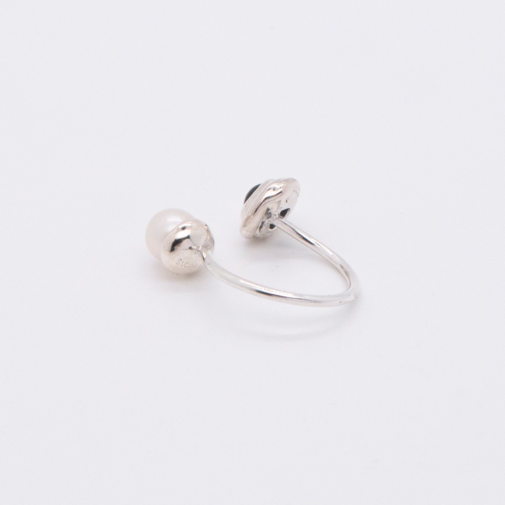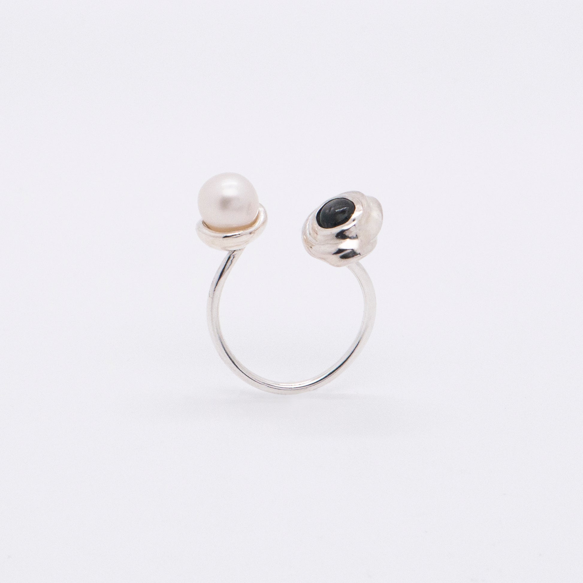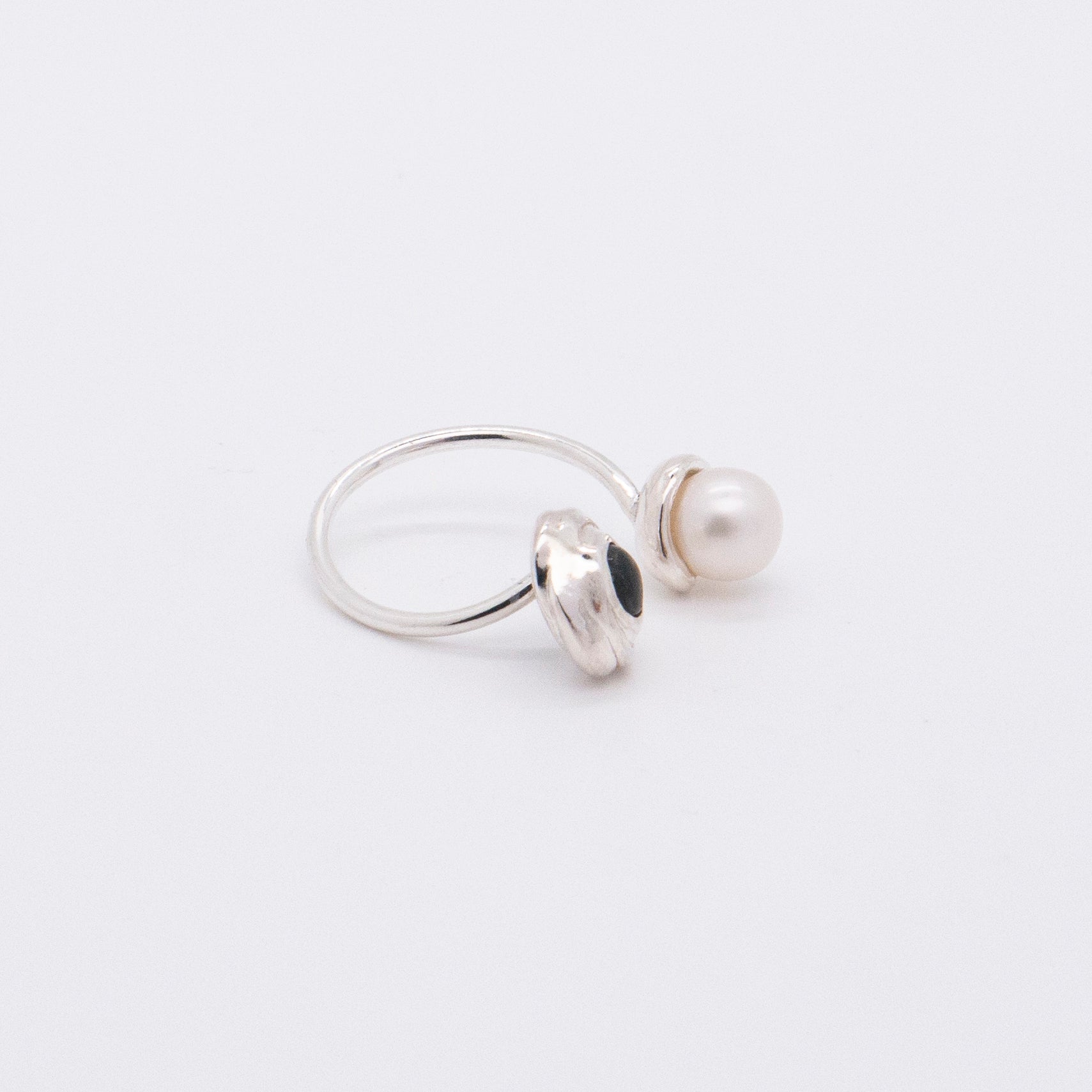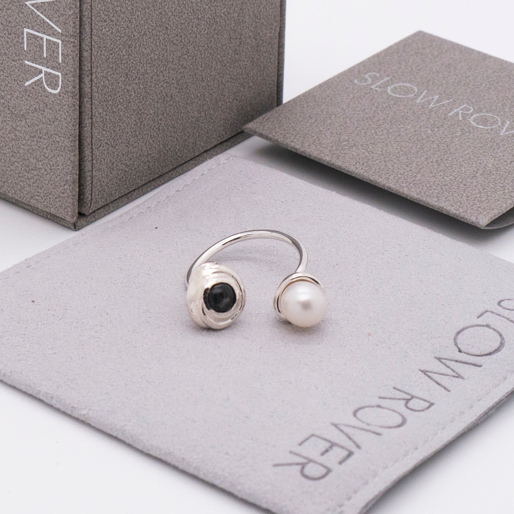 솔라 플래시 시리즈 선스팟 골드 럭 스톤 화이트 펄 반지 - 스털링 실버