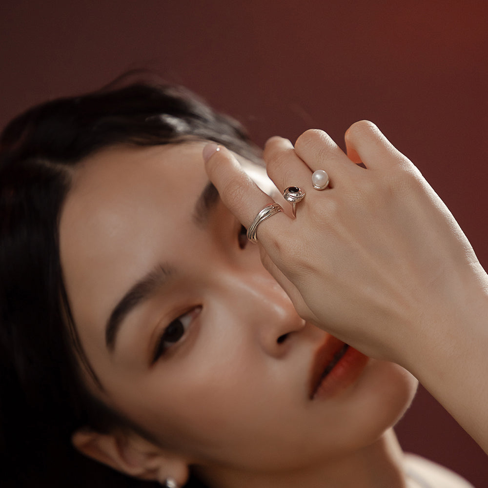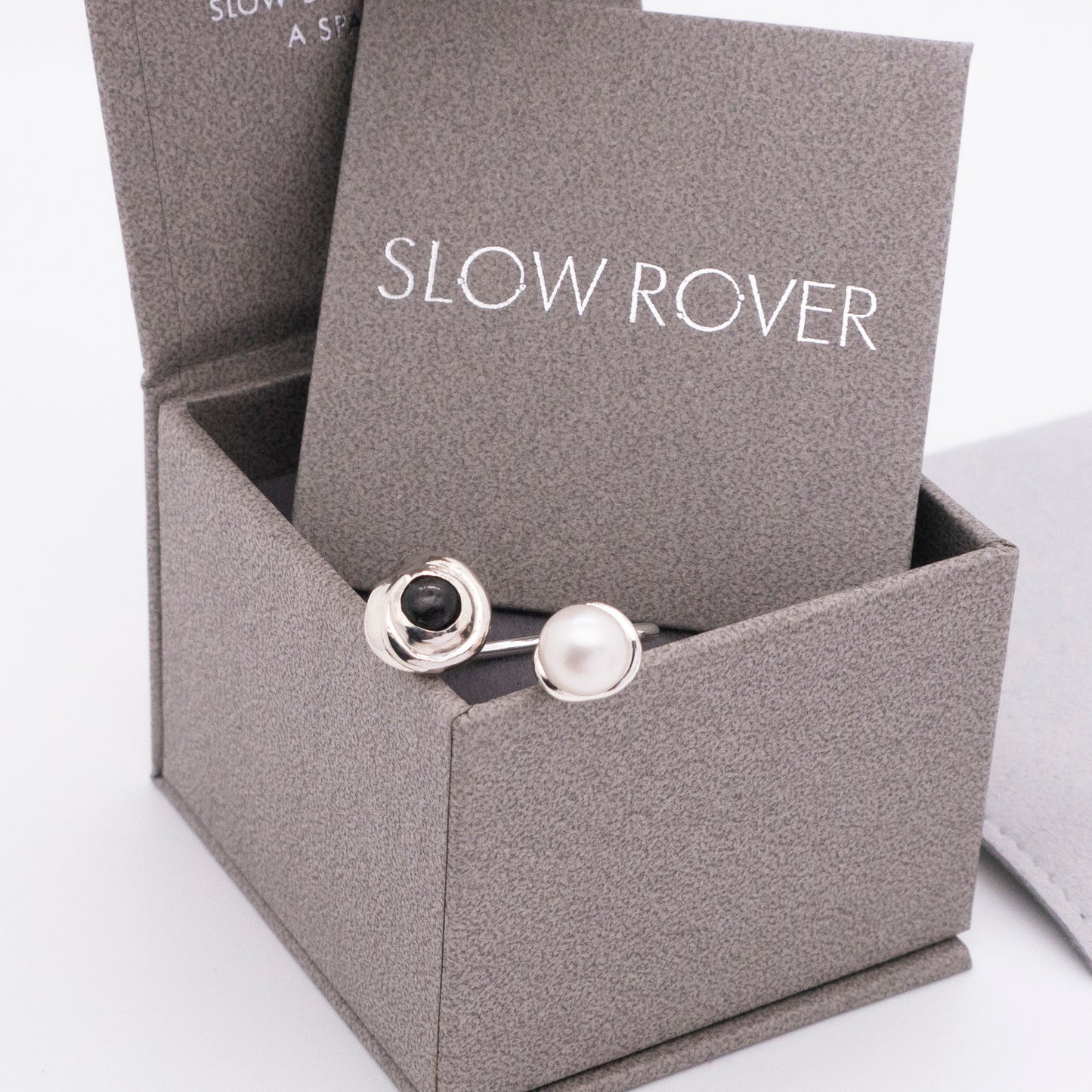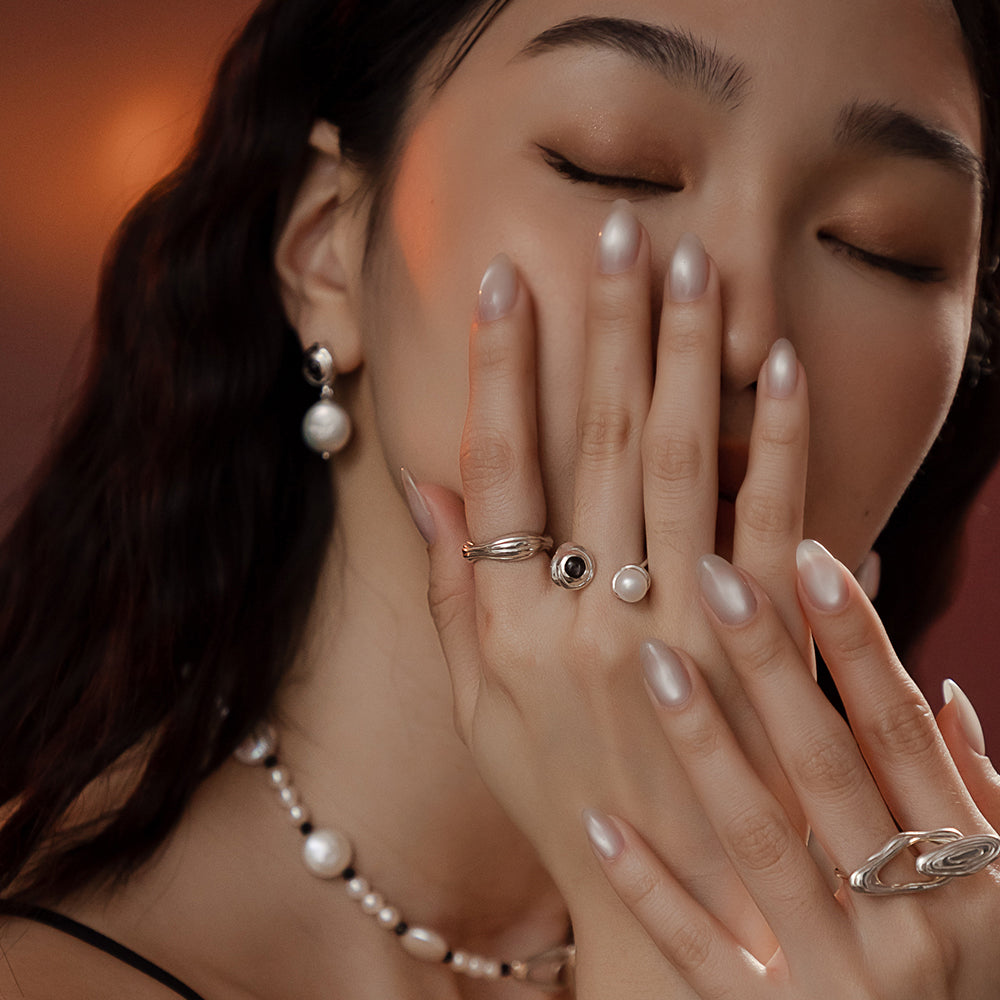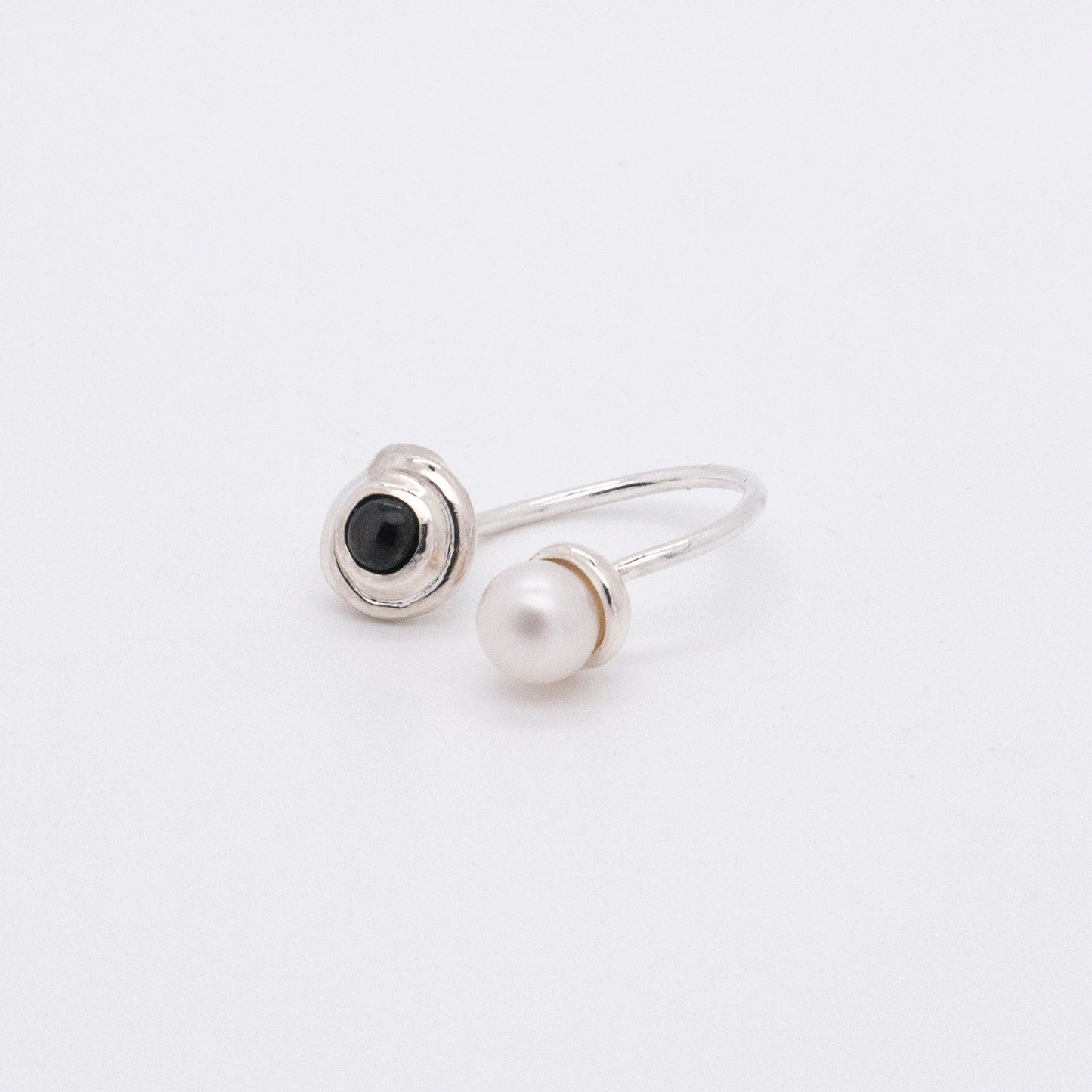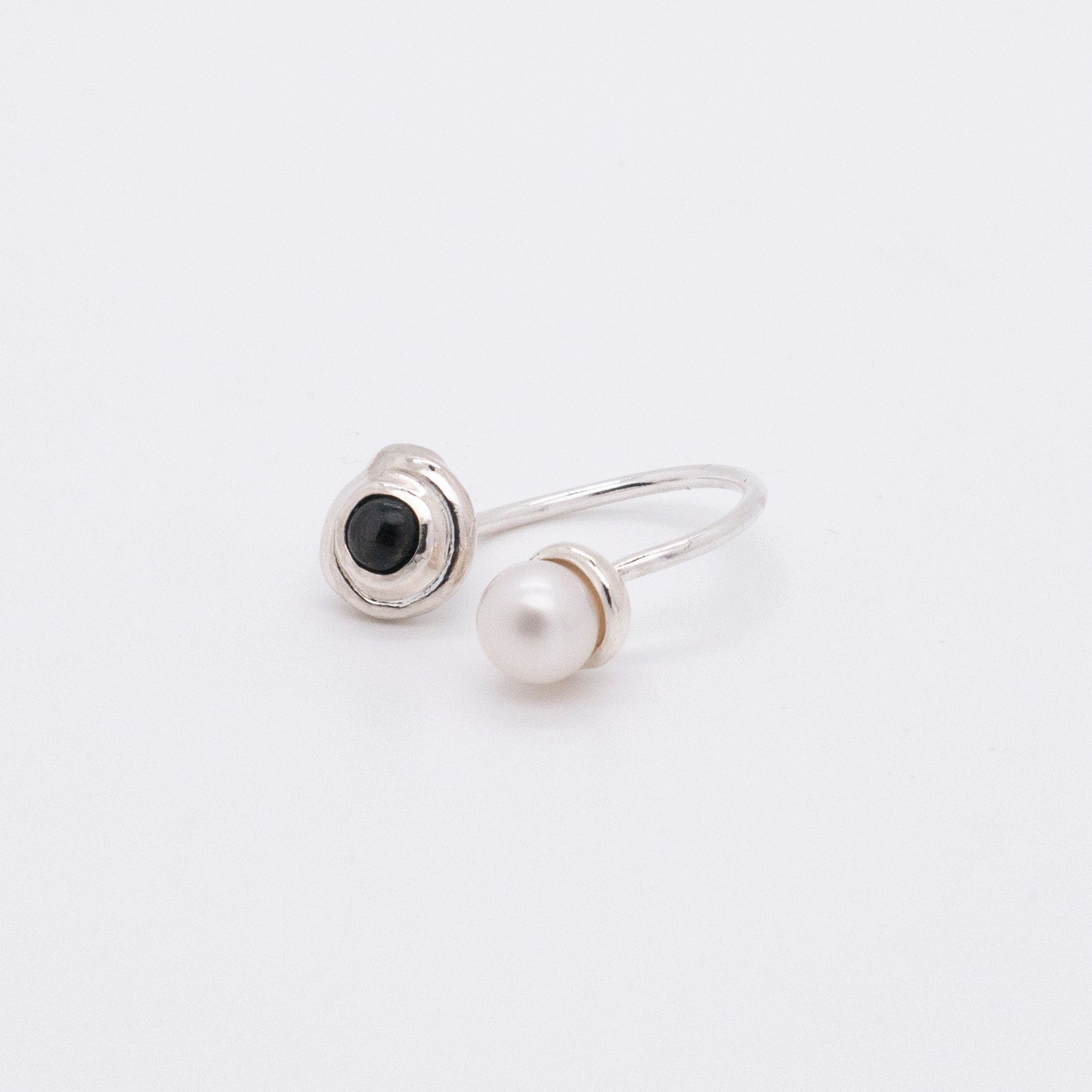 솔라 플래시 시리즈 선스팟 골드 럭 스톤 화이트 펄 반지 - 스털링 실버