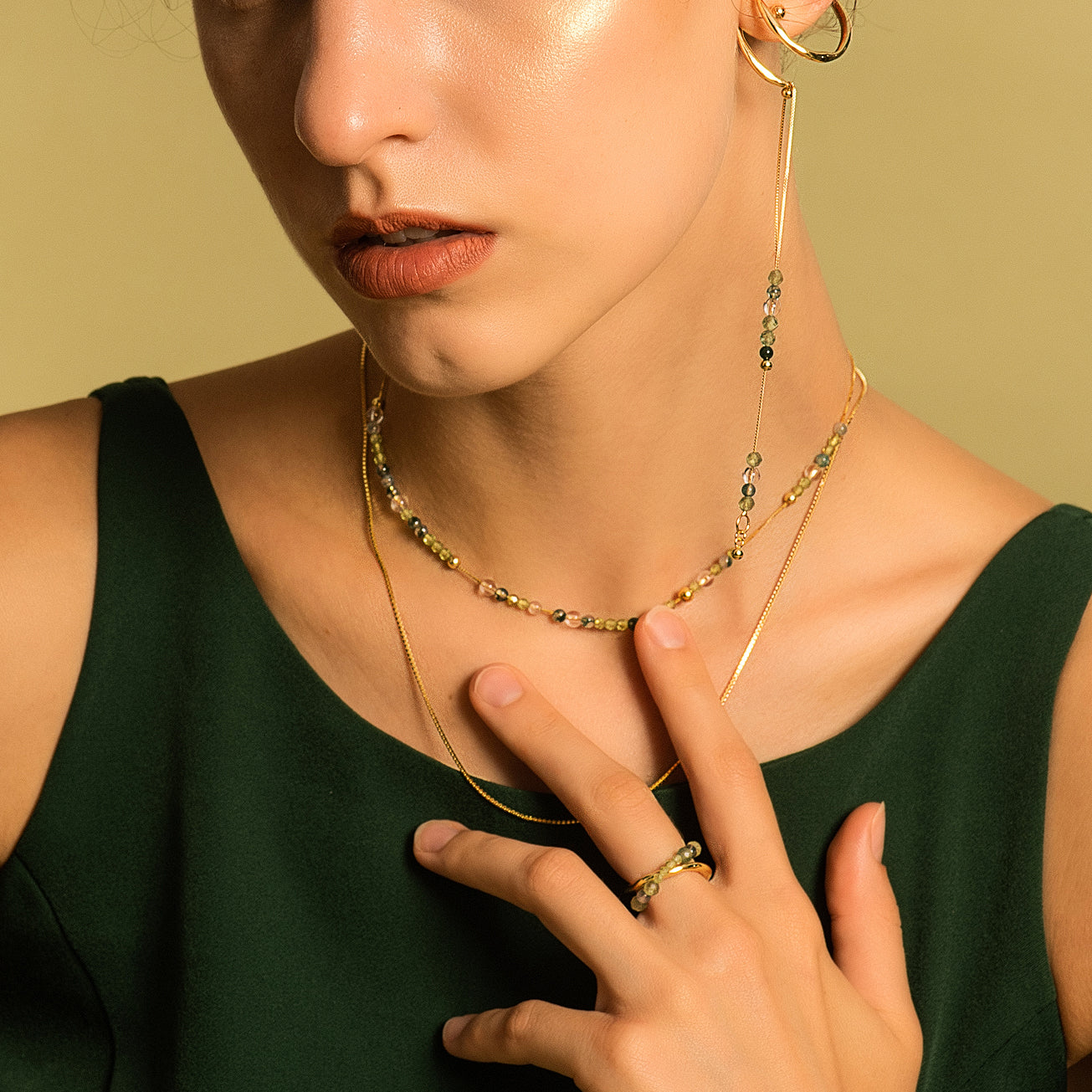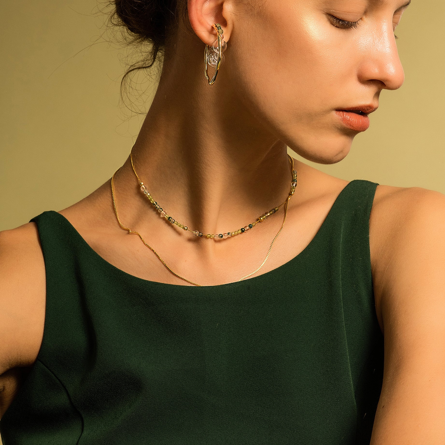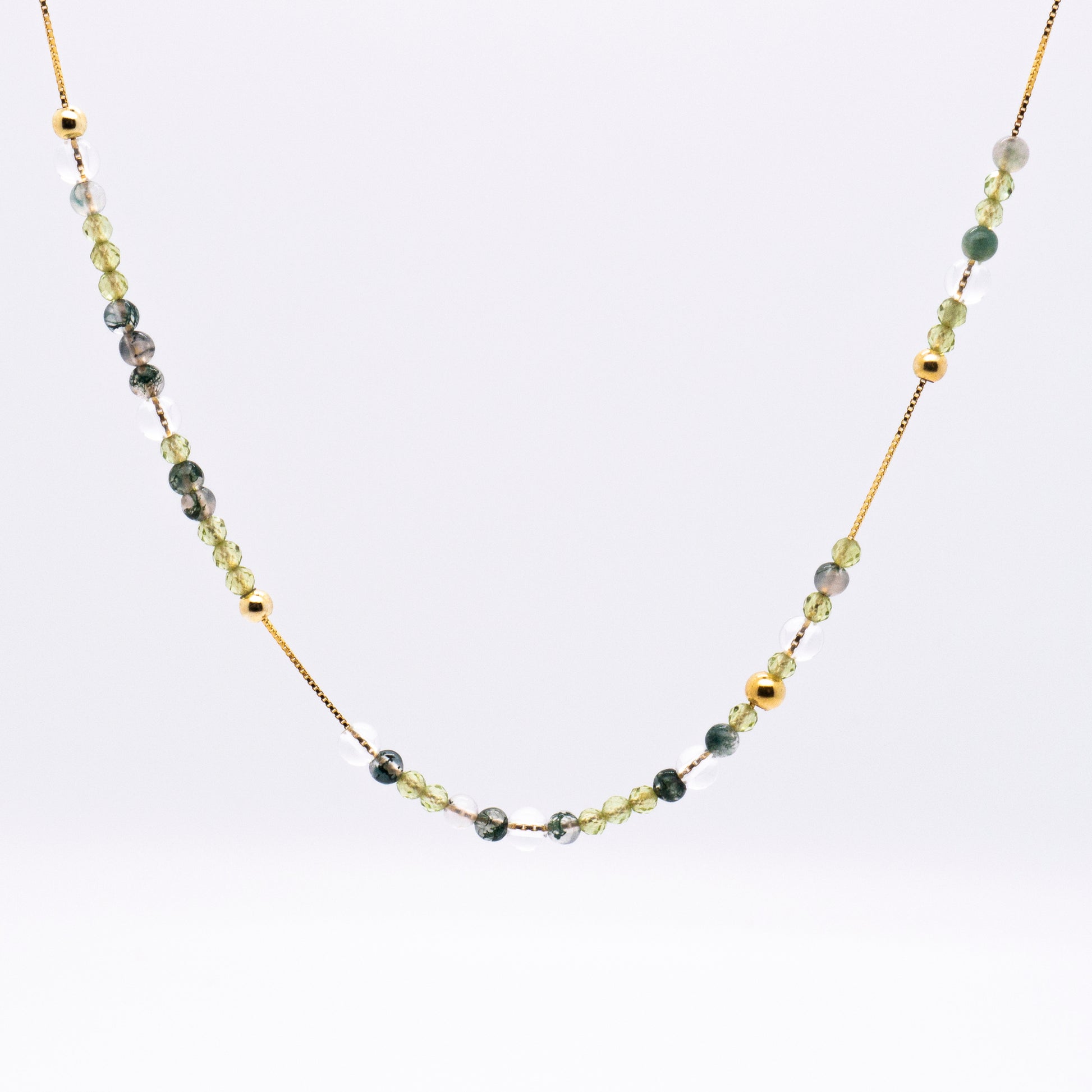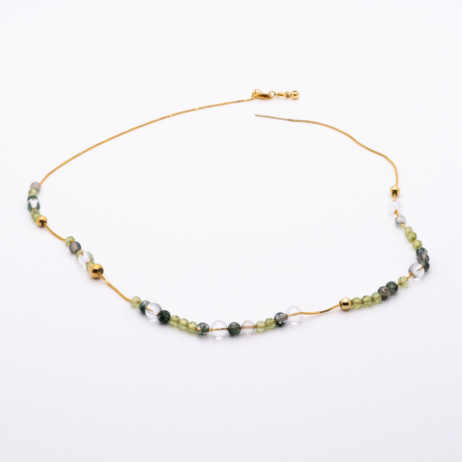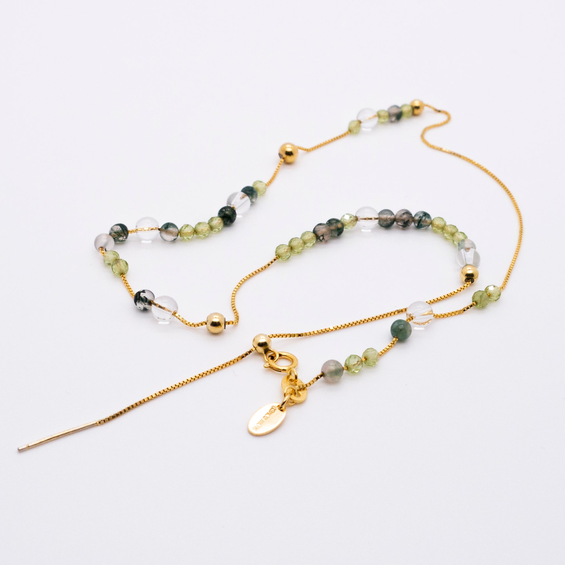 / 商品規格- 材質:925純銀厚鍍14K金、水草瑪瑙、綠磷灰石、白水晶