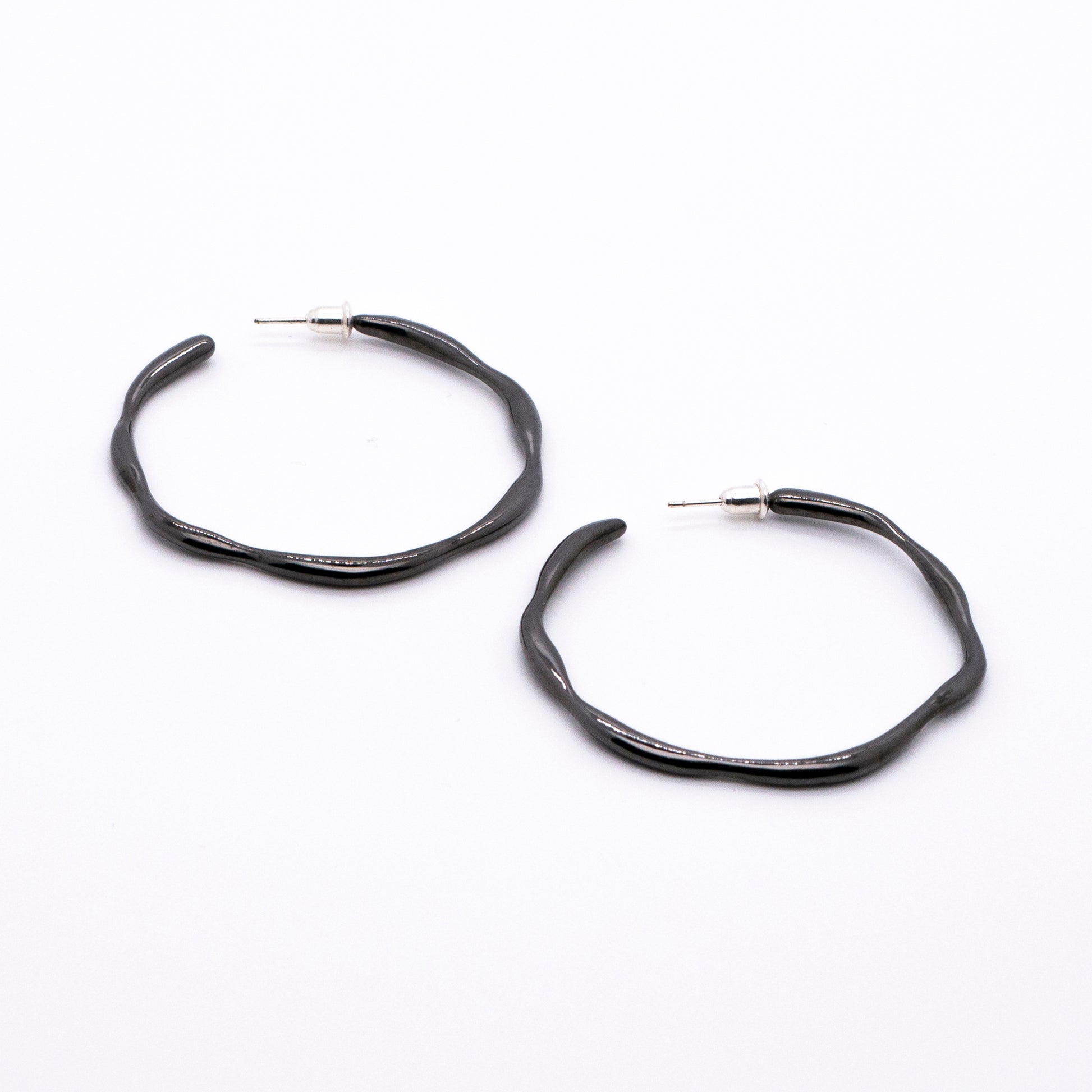 材質:黃銅厚鍍黑金、耳針純銀 / 尺寸:5*5cm