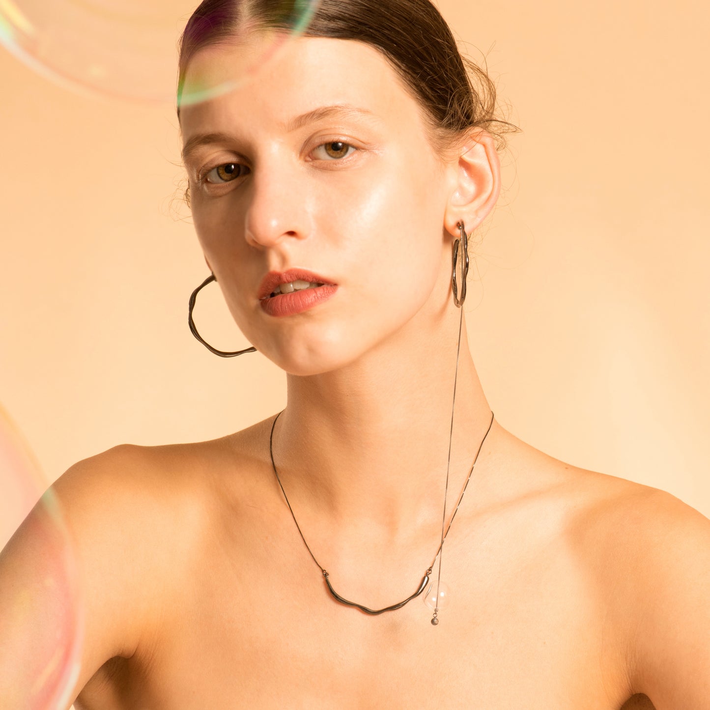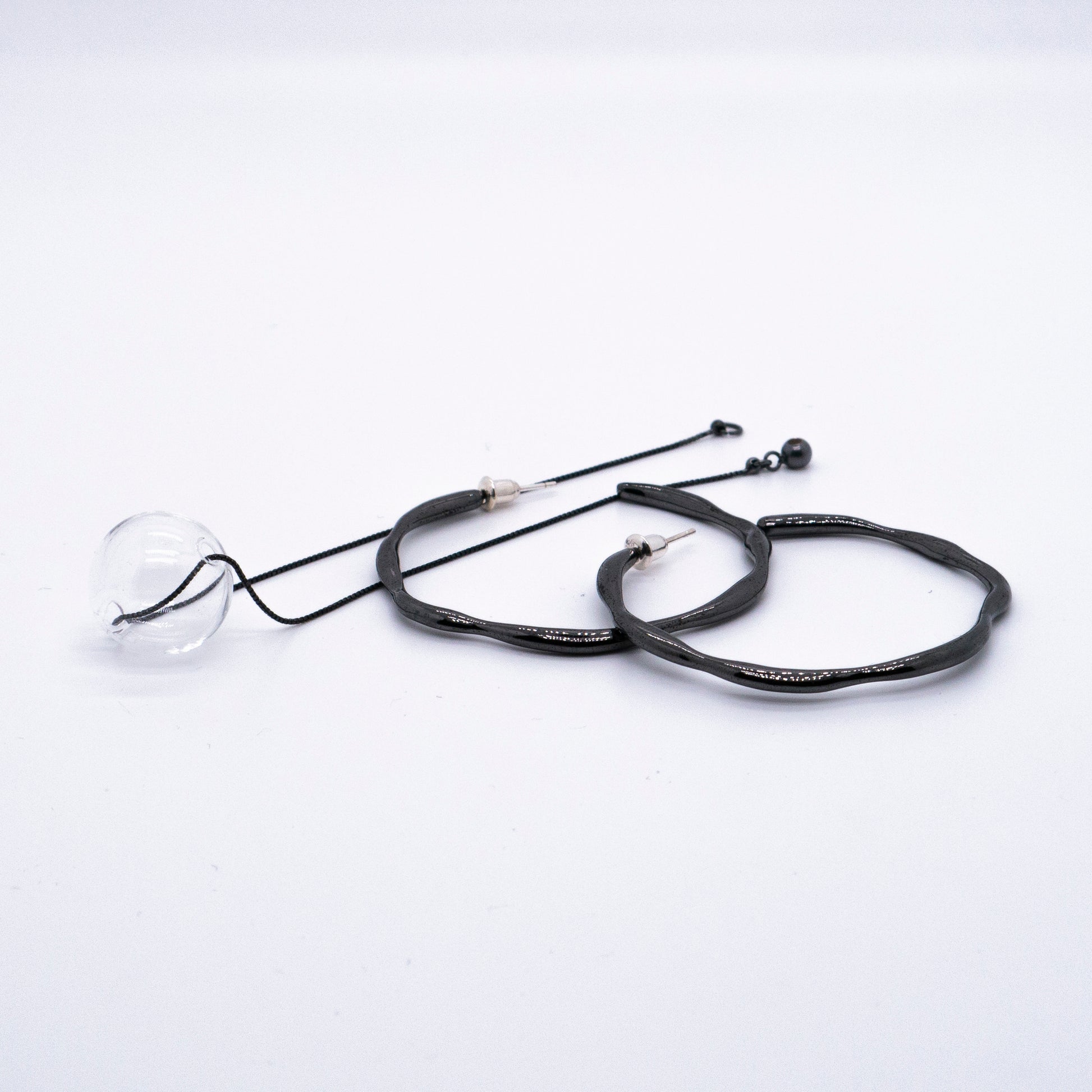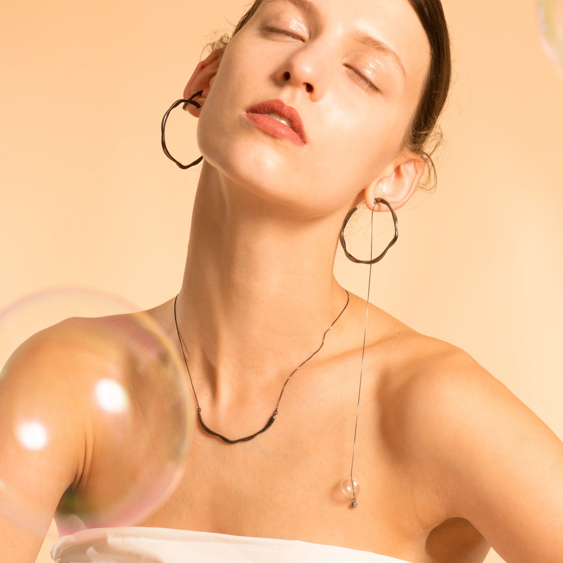 材質:925純銀硫化染黑、手工琉璃氣泡 / 總長:20cm