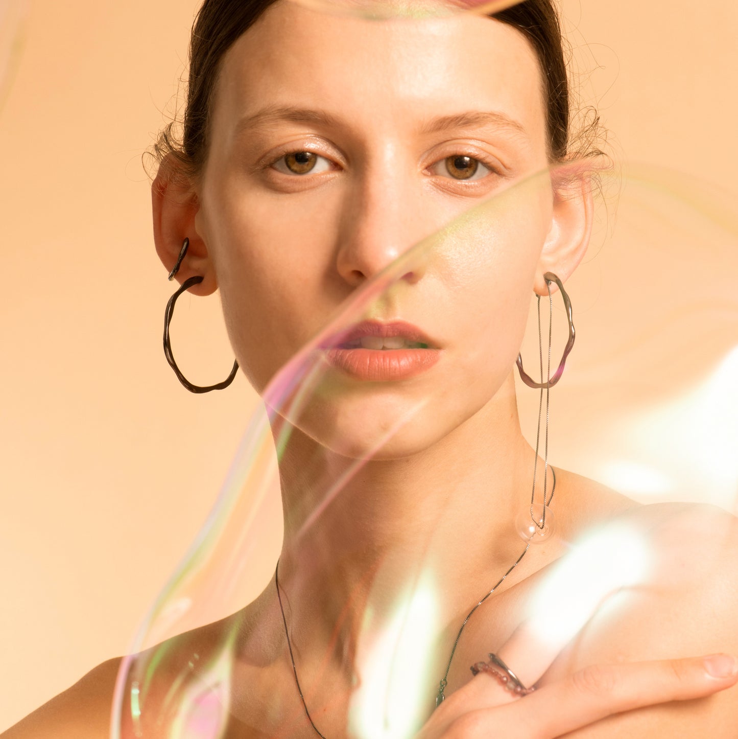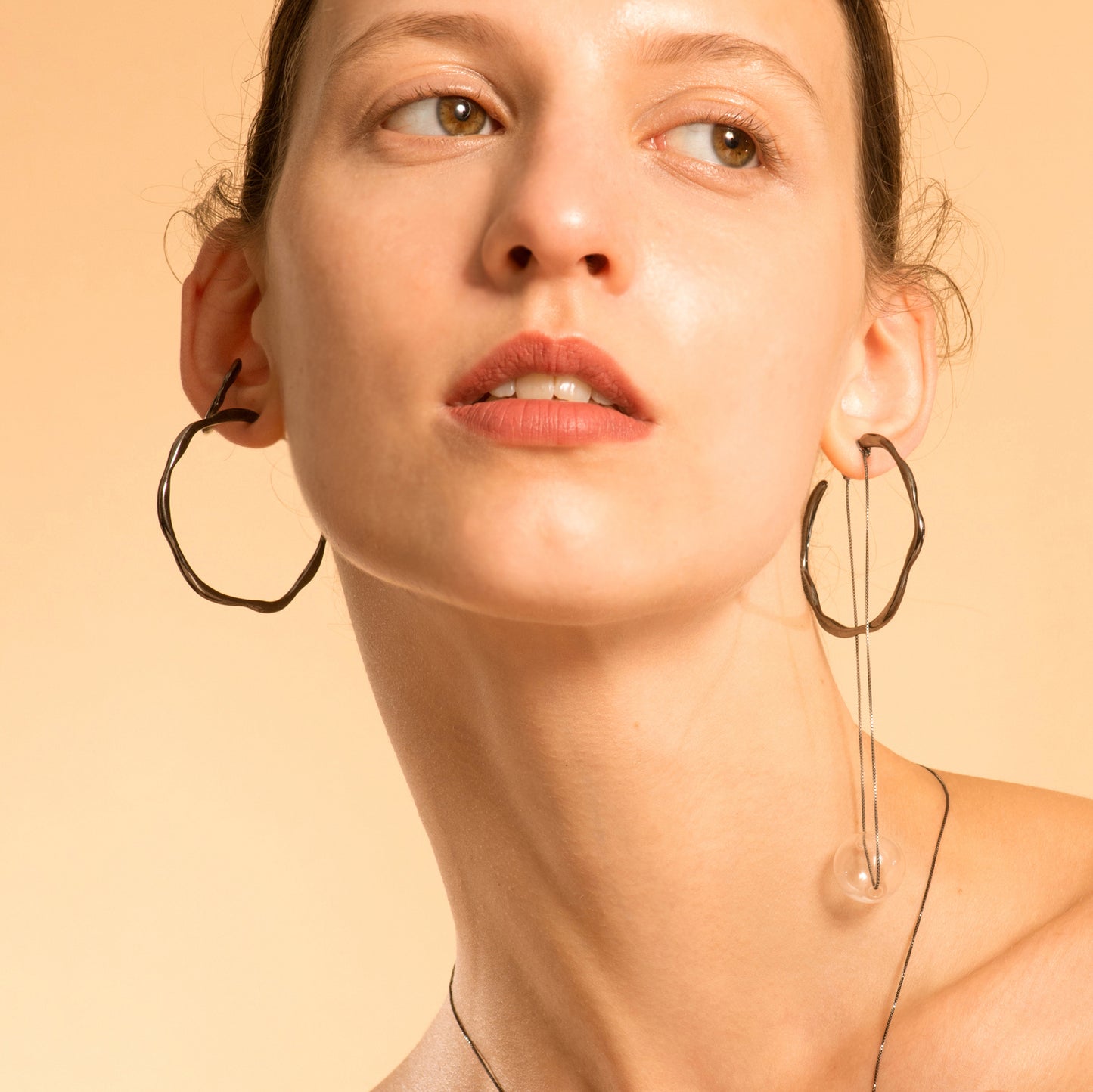 氣泡星雲大圈耳環一對+單邊氣泡耳後扣(可拆)