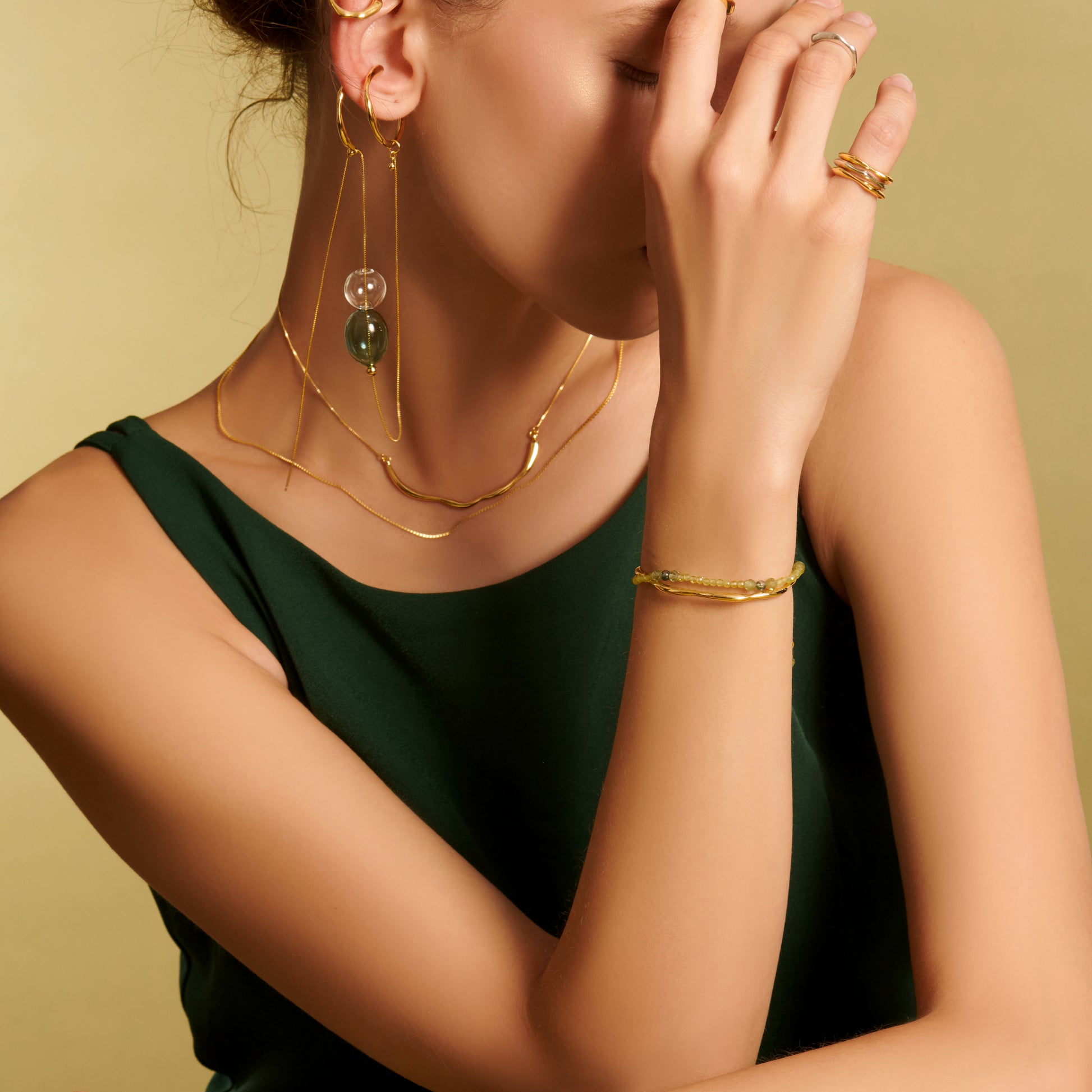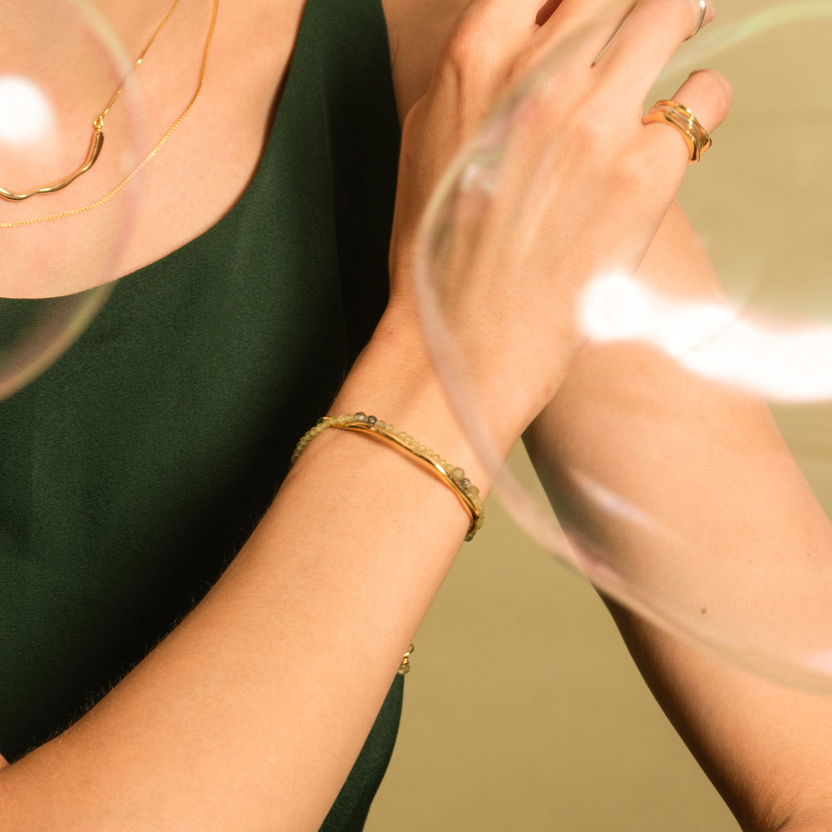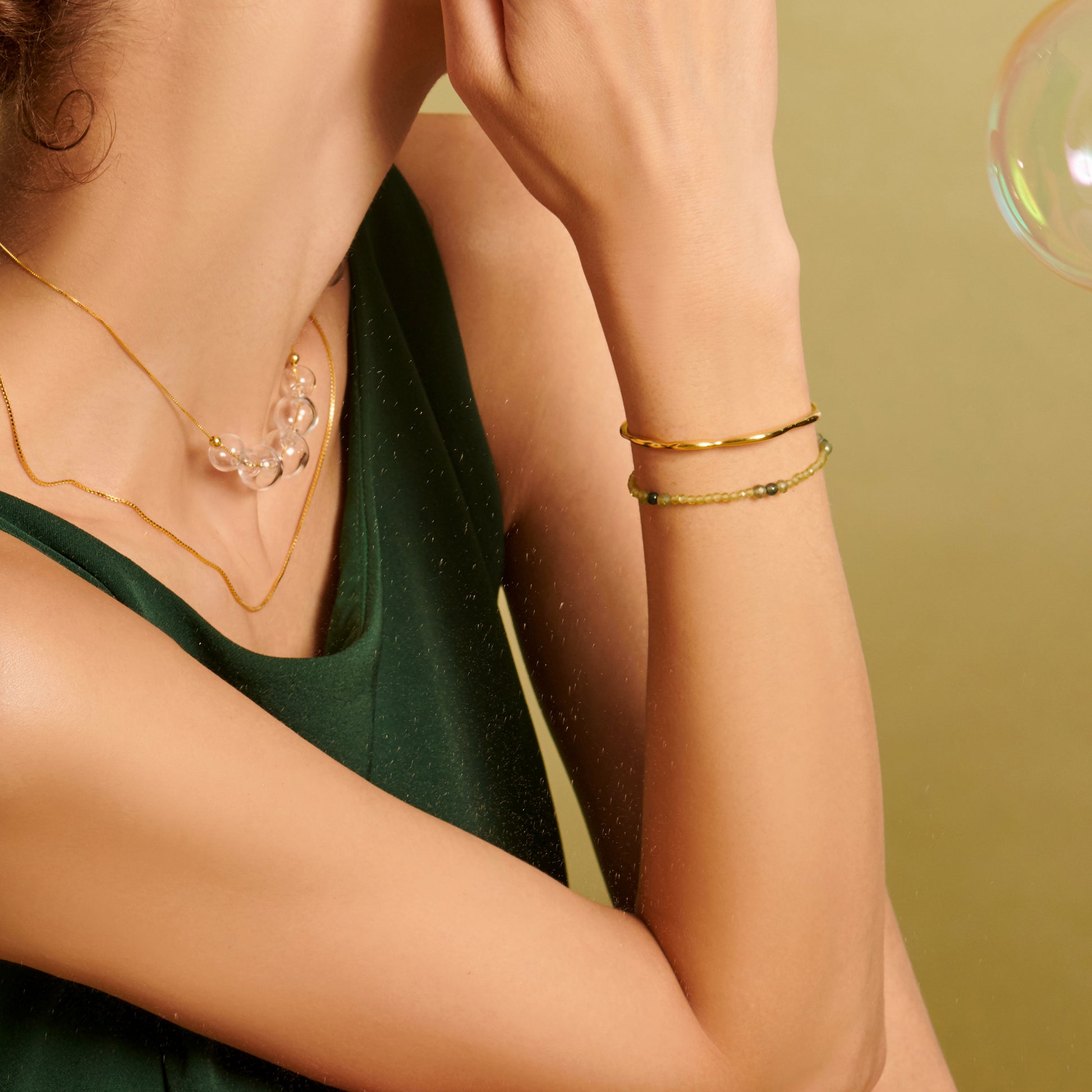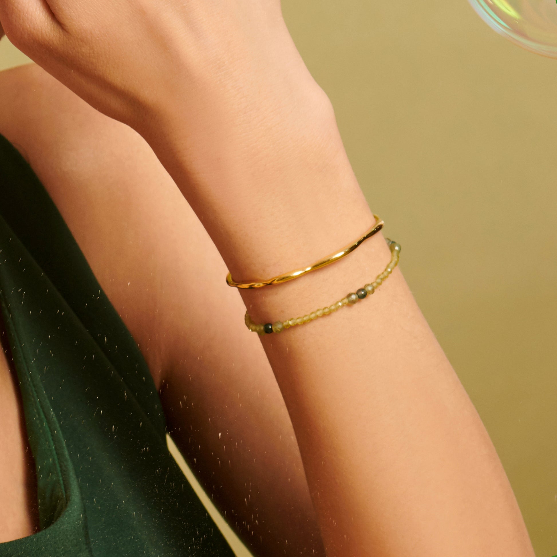 - 材質:黃銅厚鍍14K金、天然橄欖石、水草瑪瑙、綠磷灰石