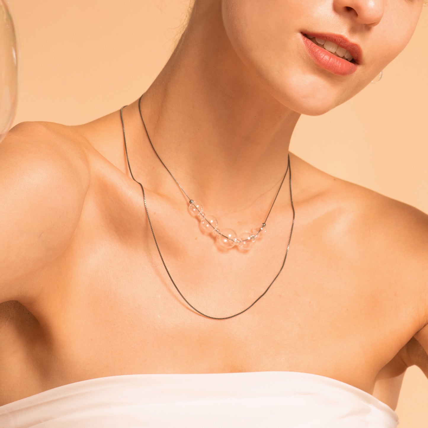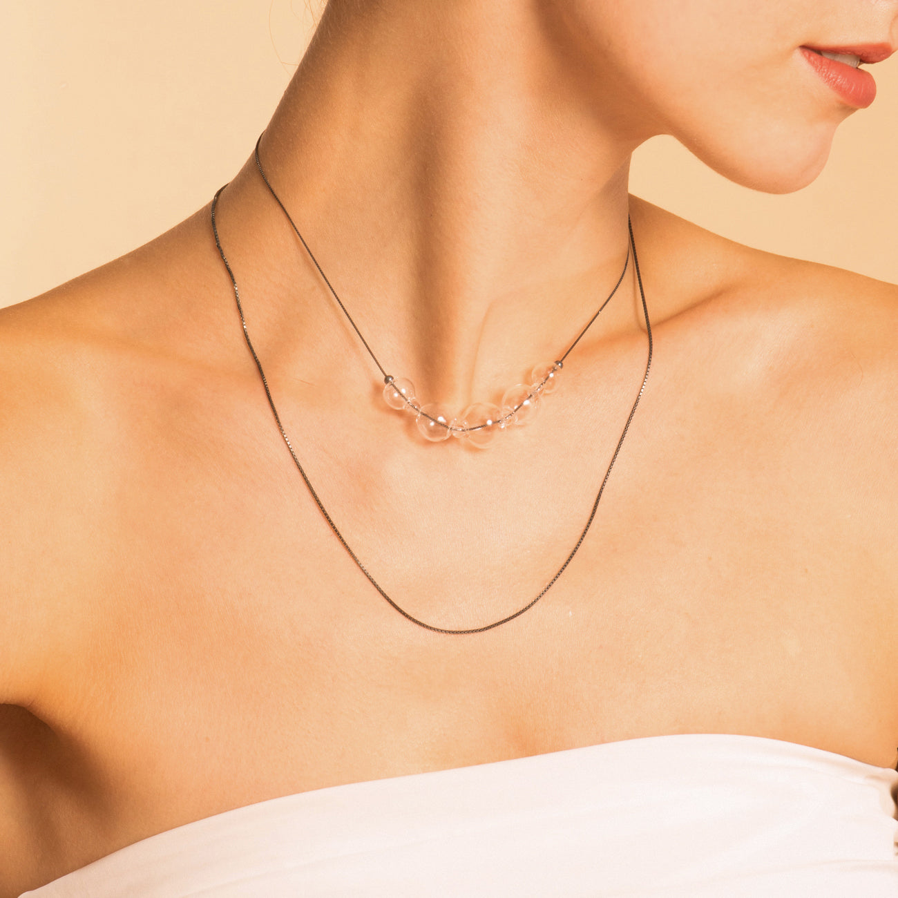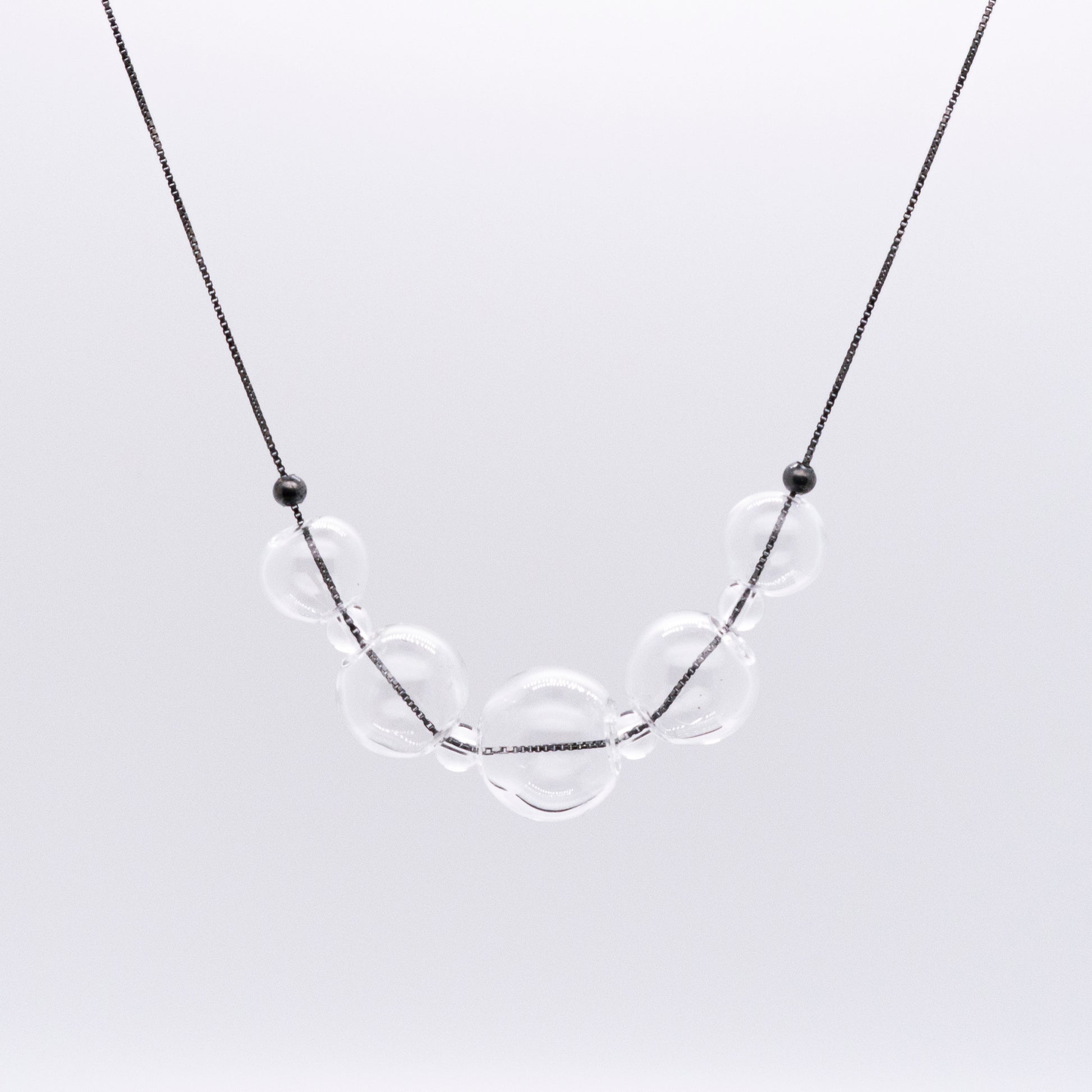 氣泡星雲系列 泡泡鎖骨鏈-純銀染黑