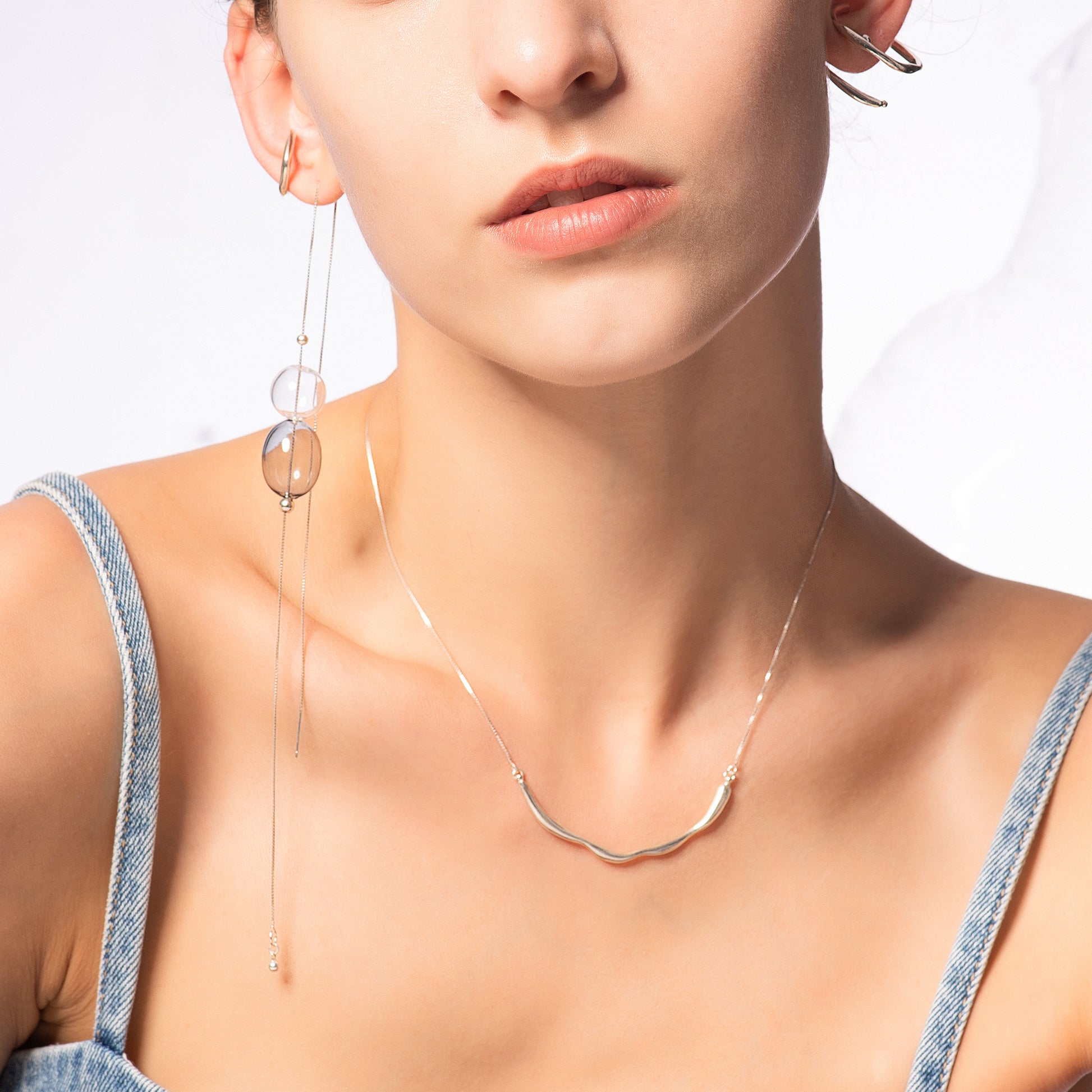 氣泡星雲系列 氣泡長耳線-純銀