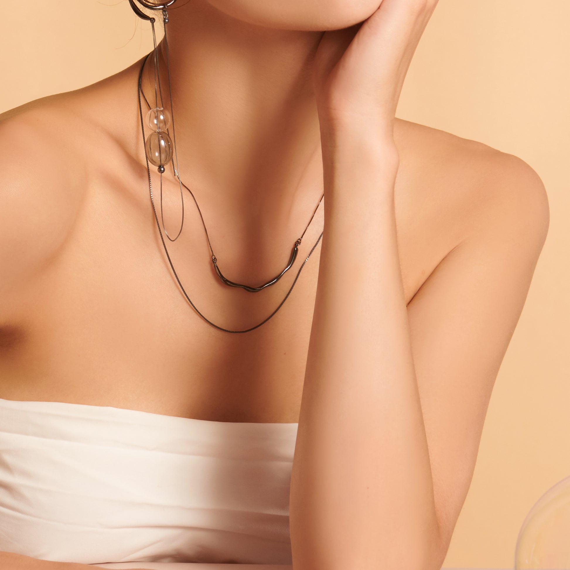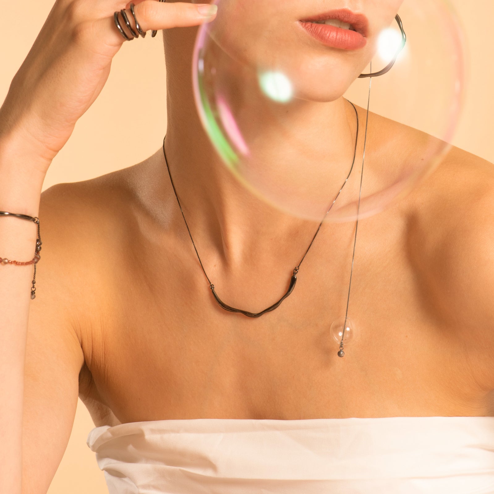 氣泡星雲系列 微笑鎖骨鏈-黑