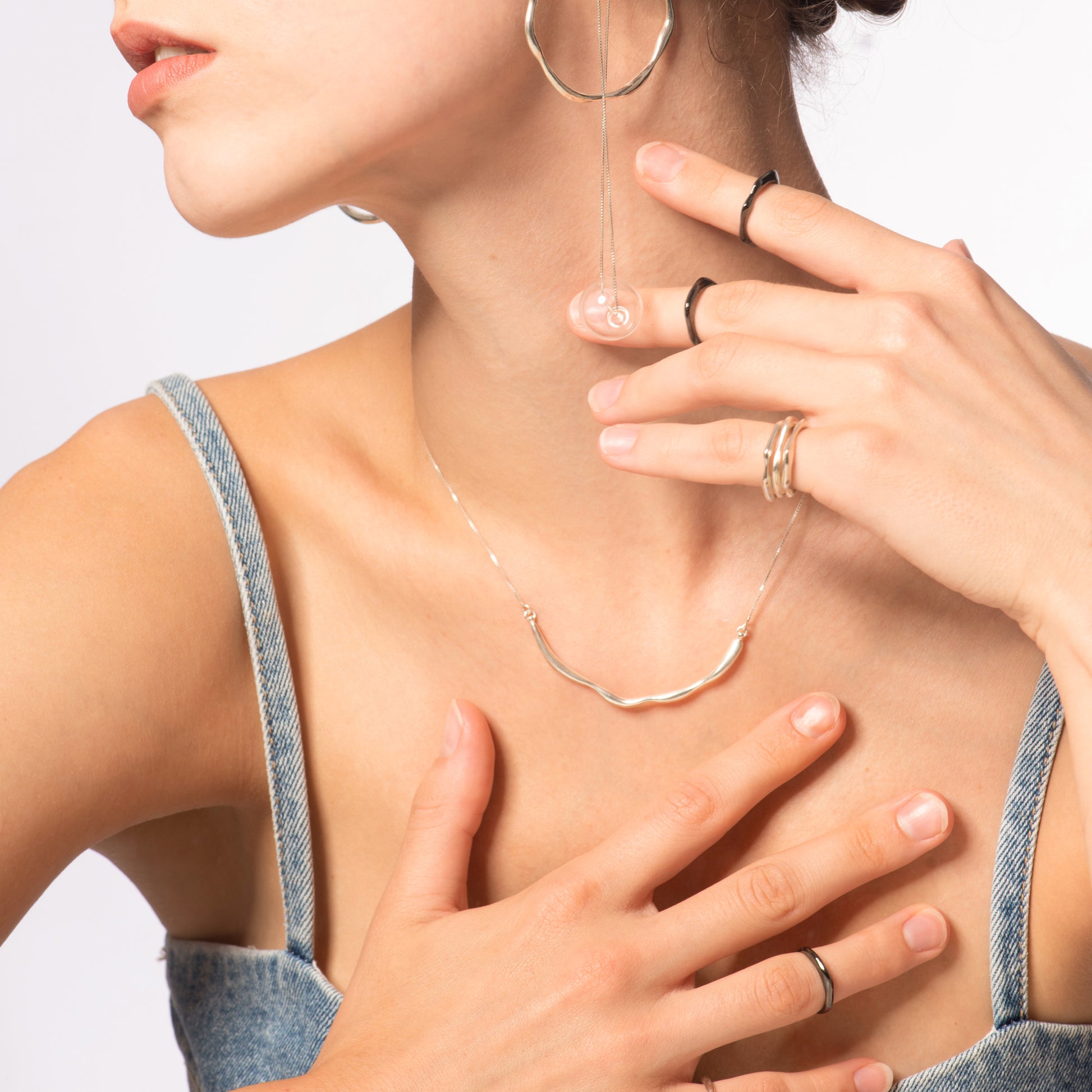 氣泡星雲系列 微笑鎖骨鏈-純銀