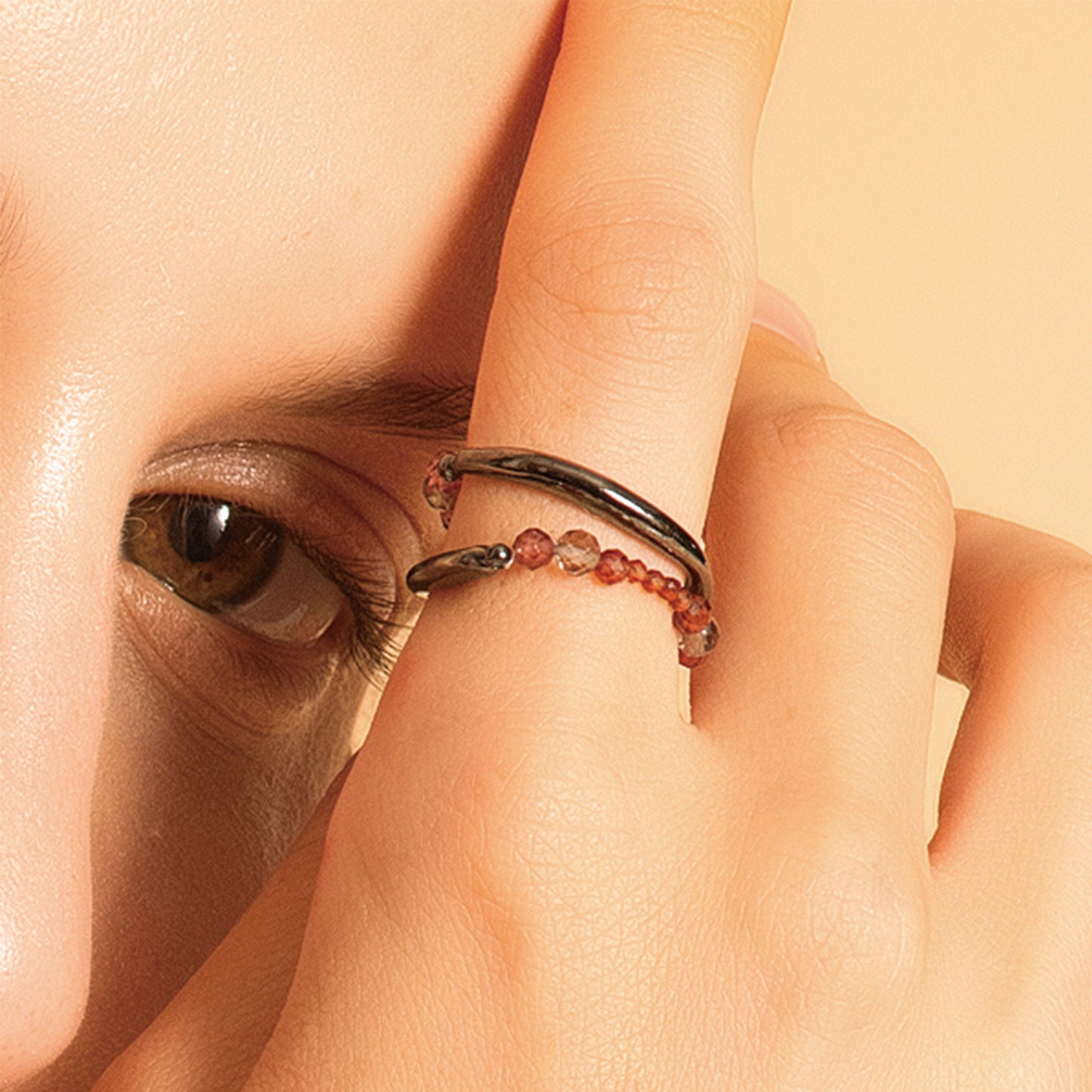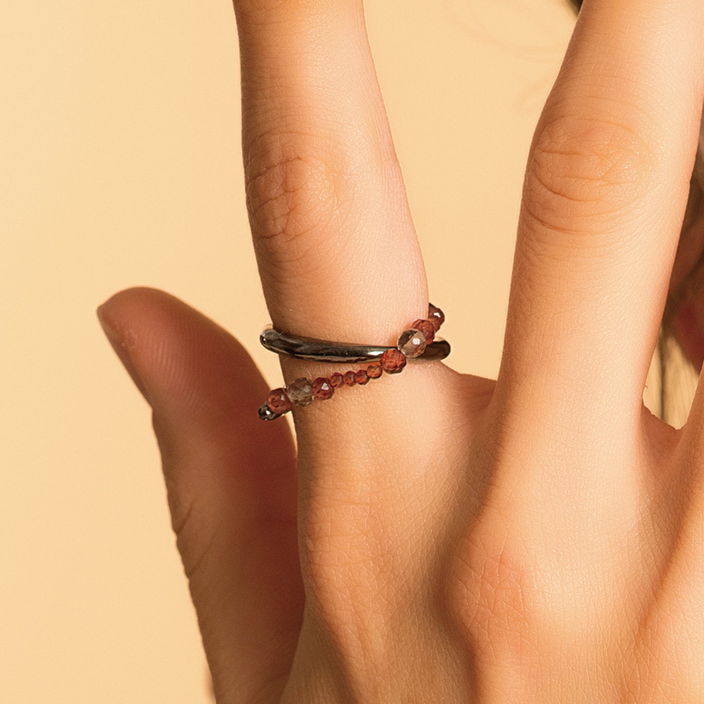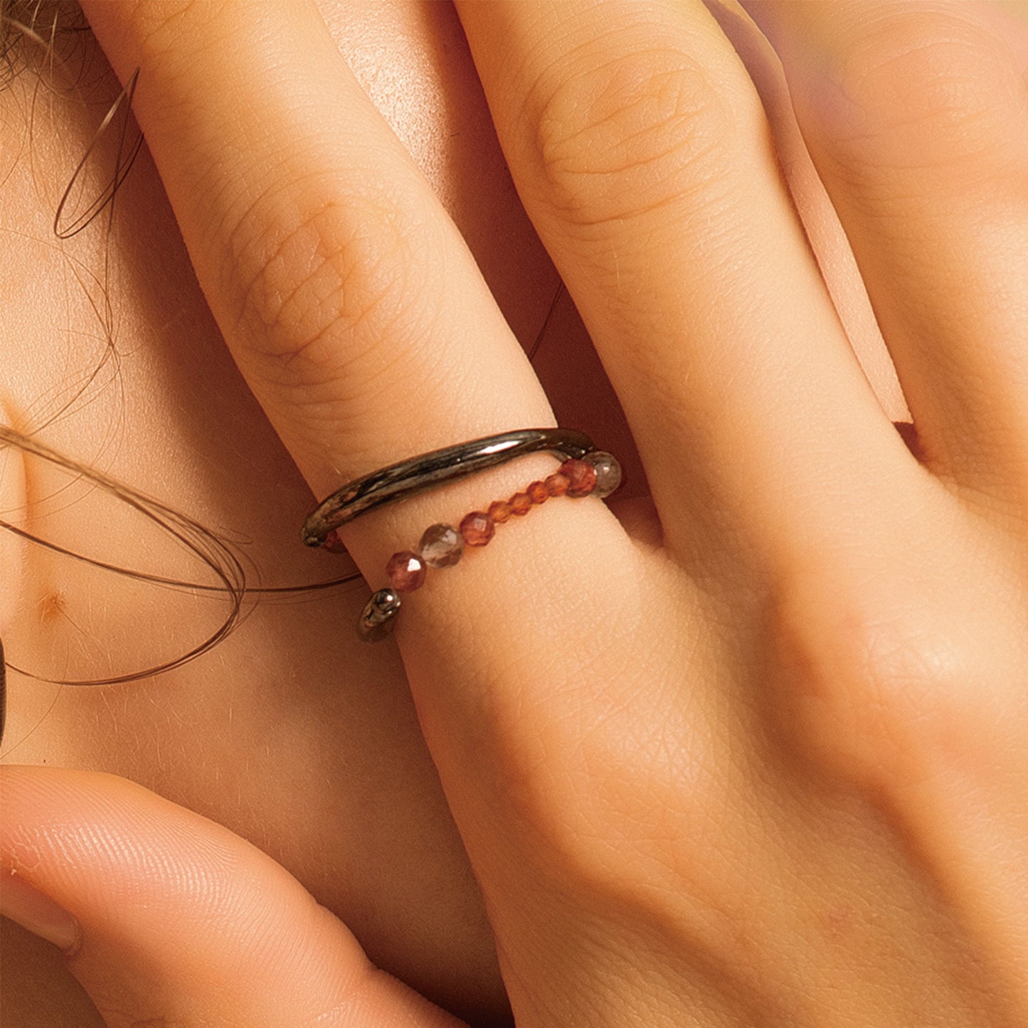 氣泡星雲系列 雙圈串珠戒-厚鍍黑金