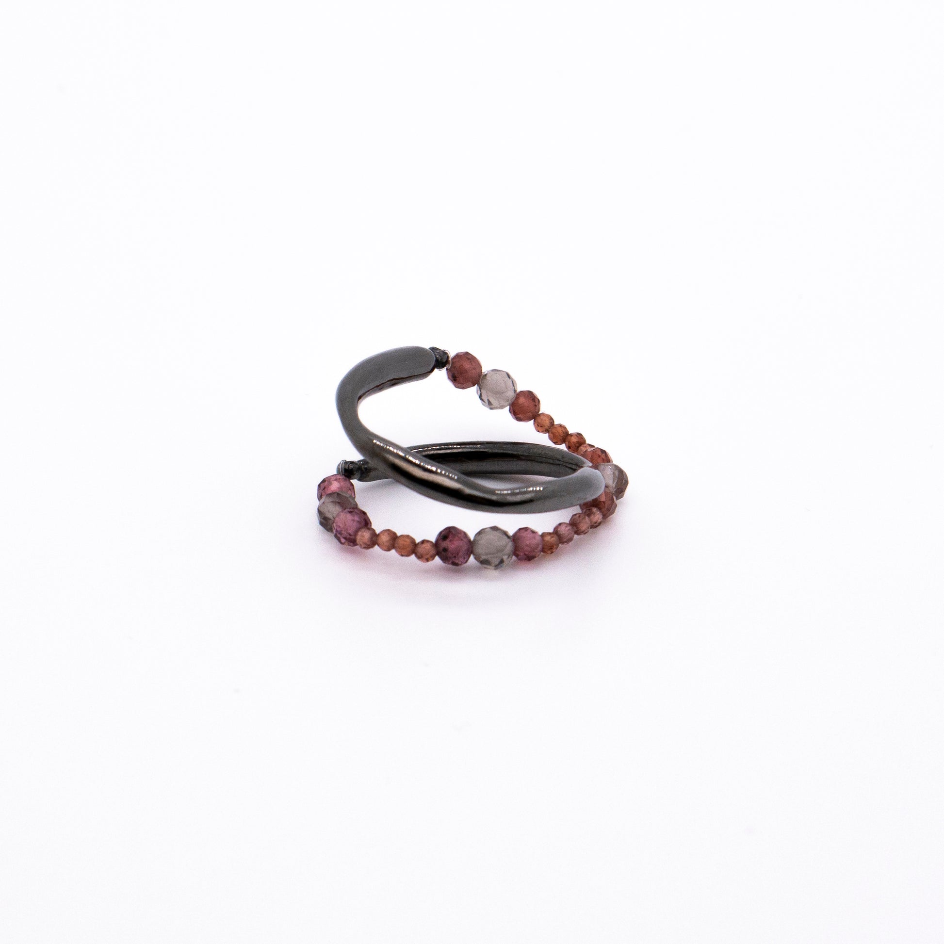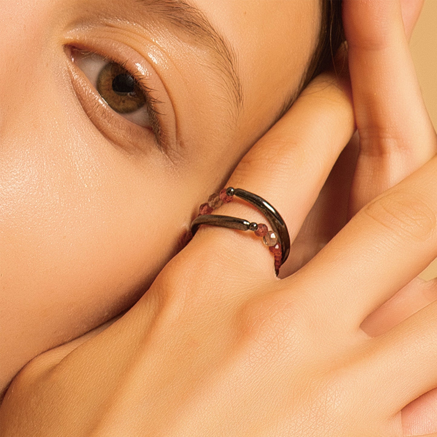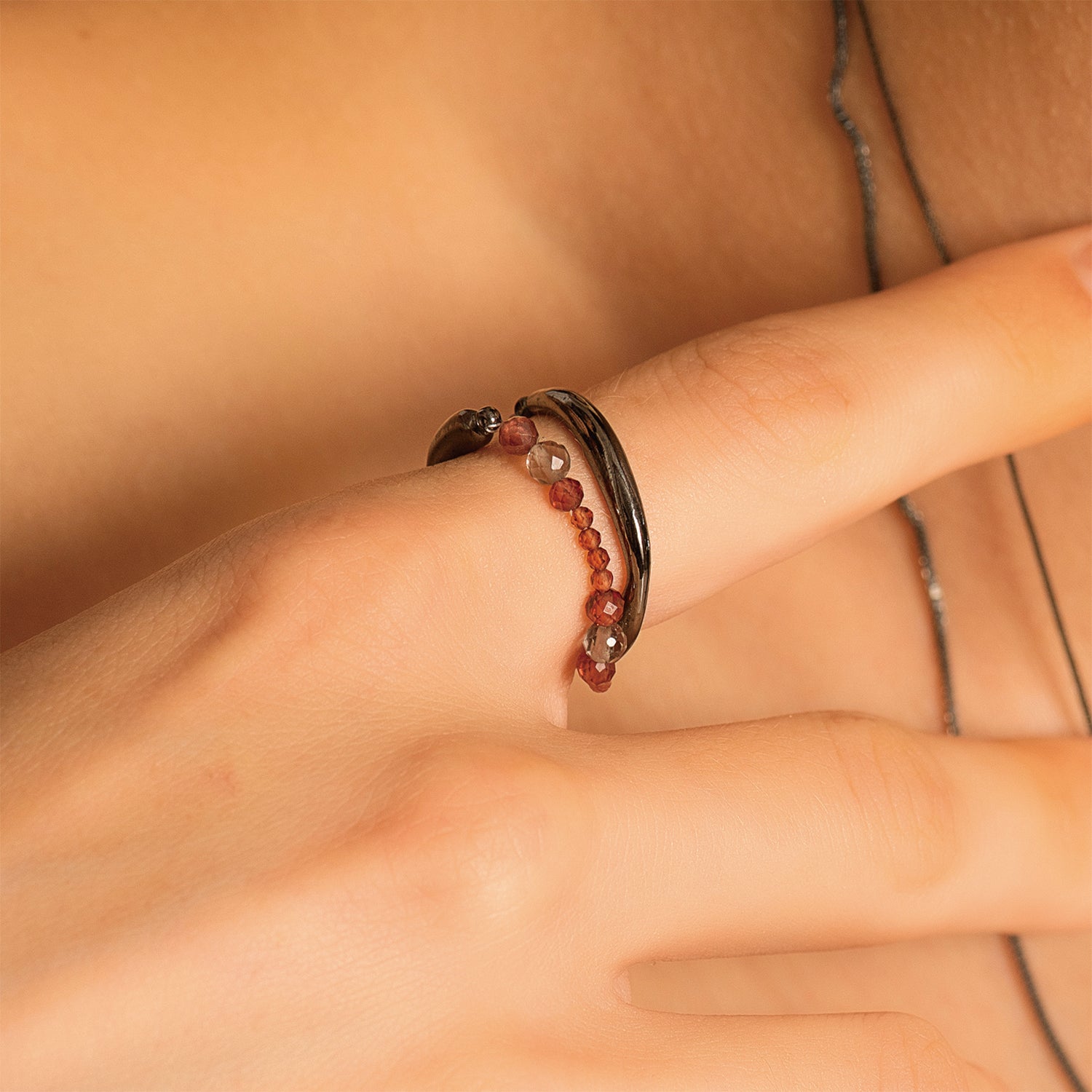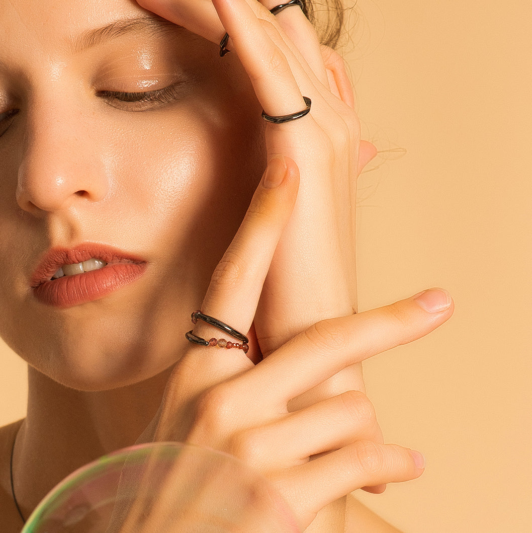 氣泡星雲系列 雙圈串珠戒-厚鍍黑金