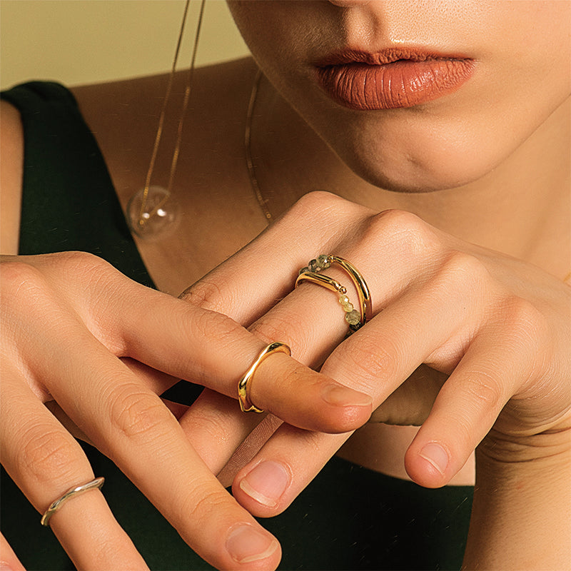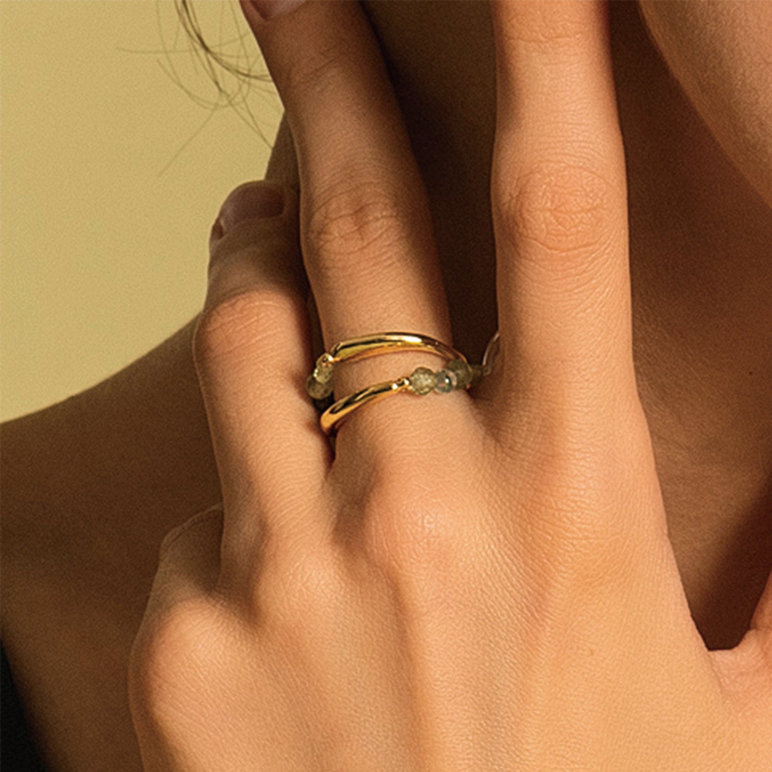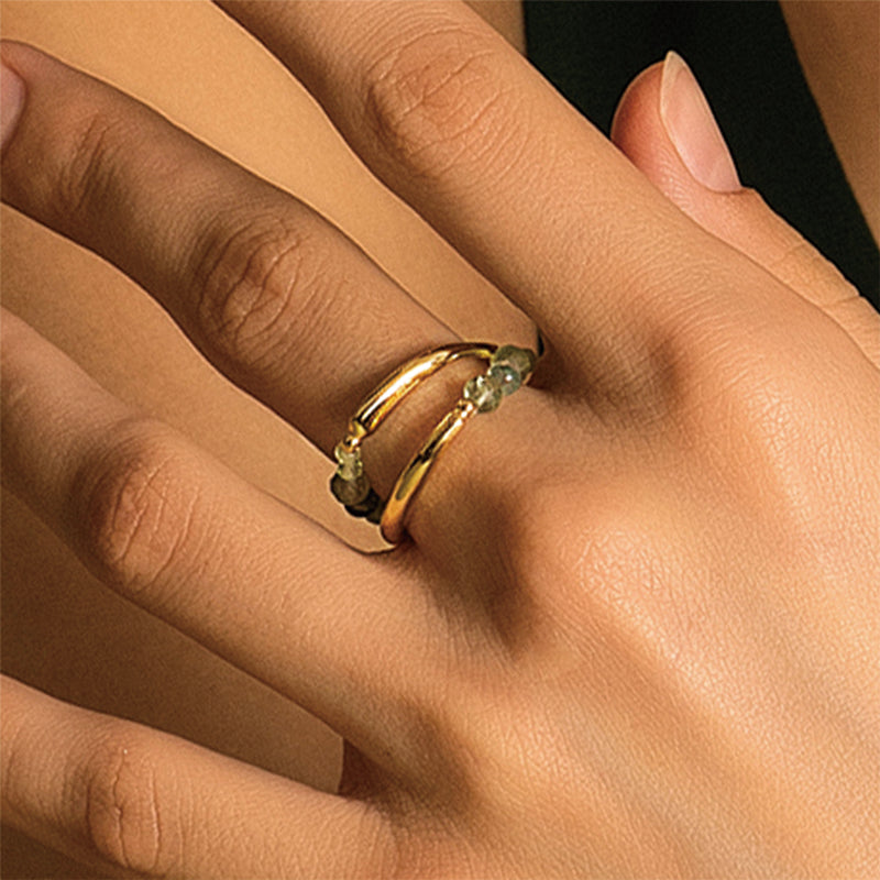 氣泡星雲系列 雙圈串珠戒-厚鍍18K金