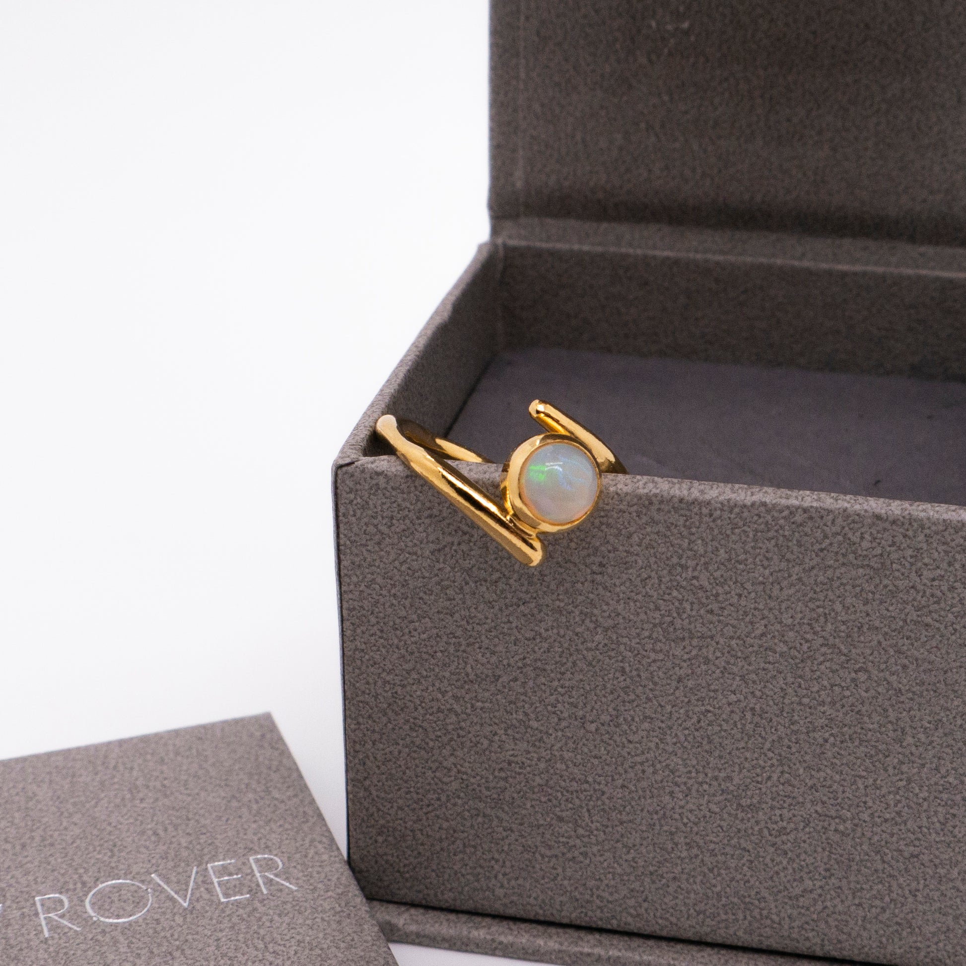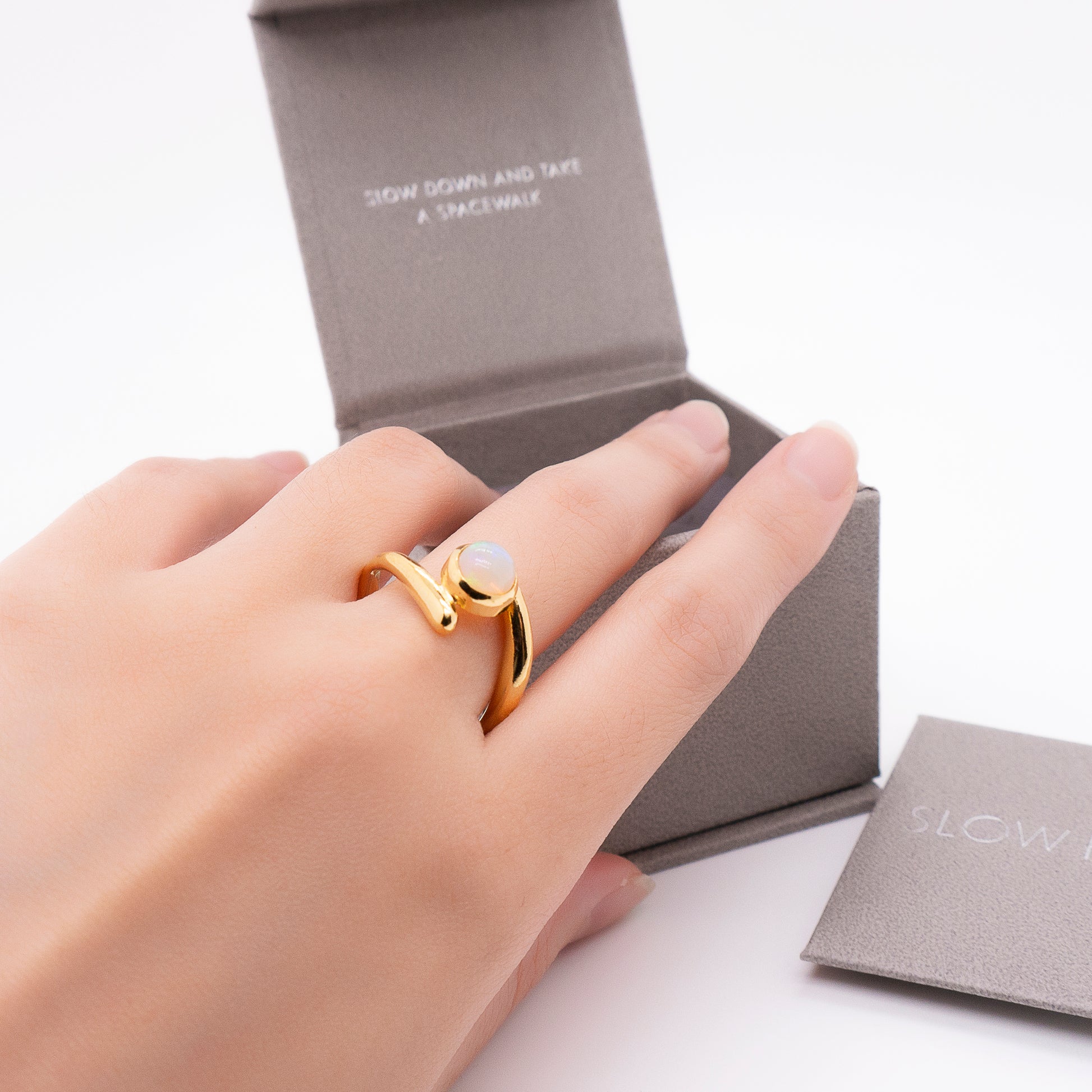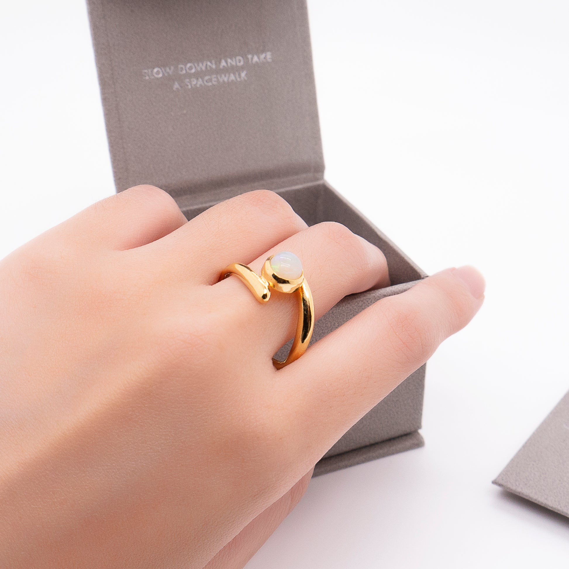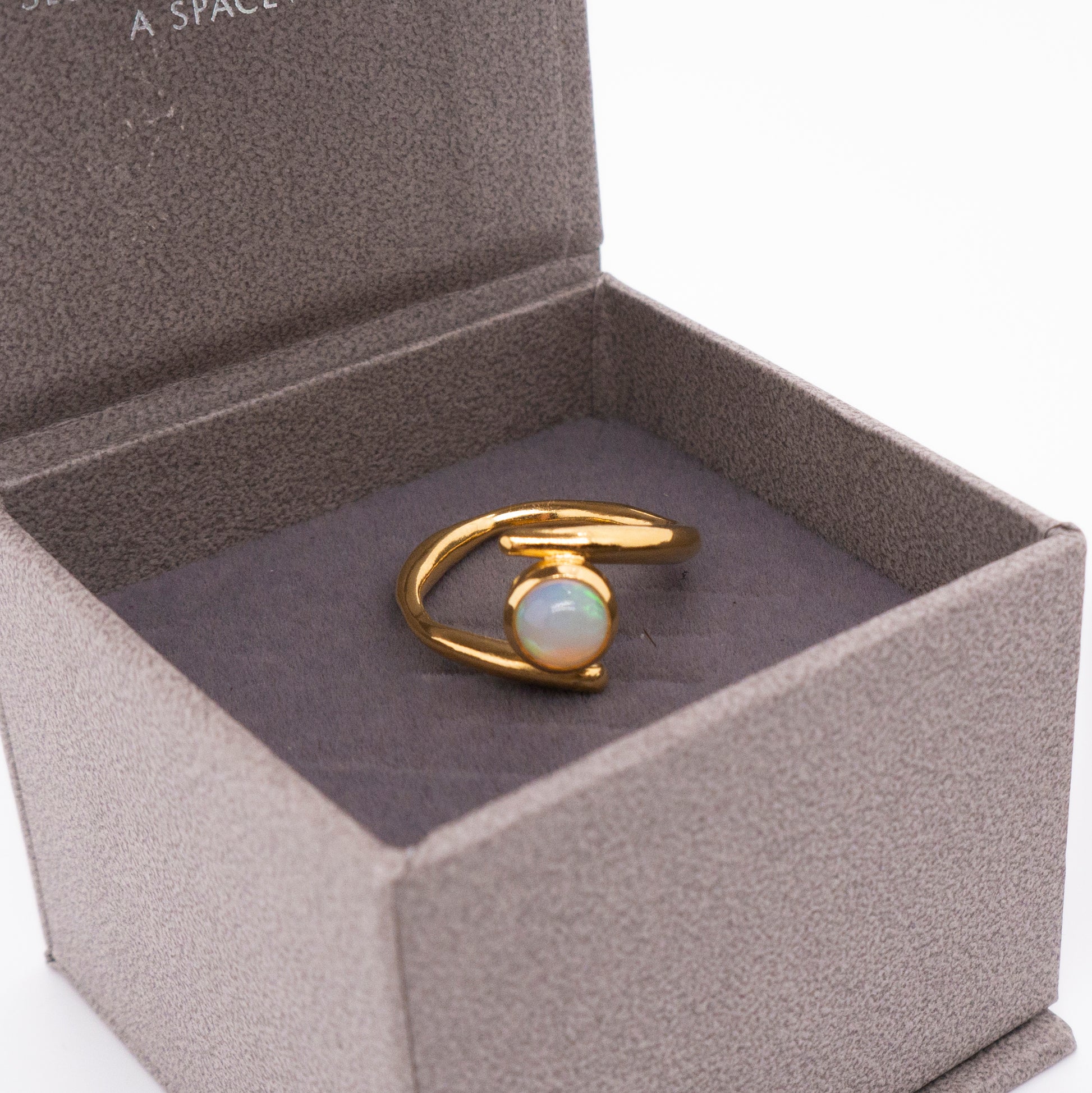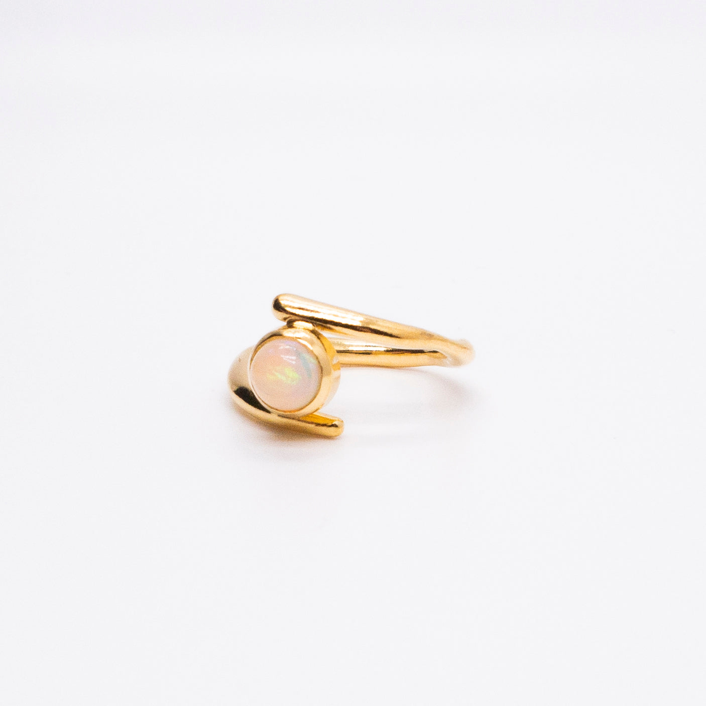 氣泡星雲 雙圈蛋白石戒-純銀厚鍍18K金