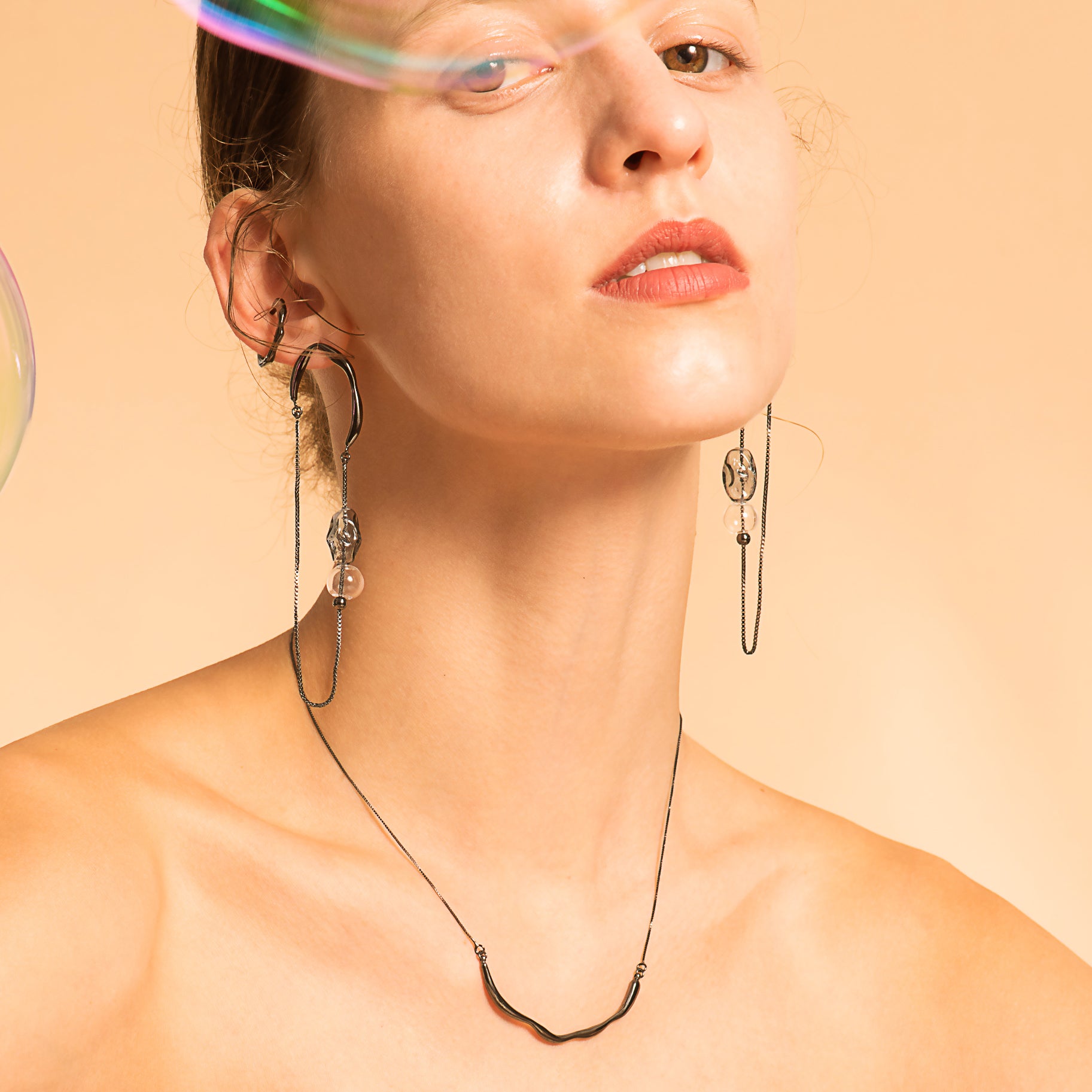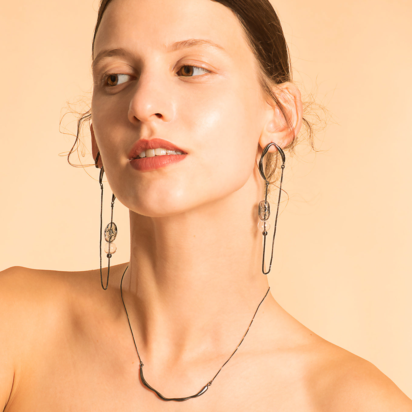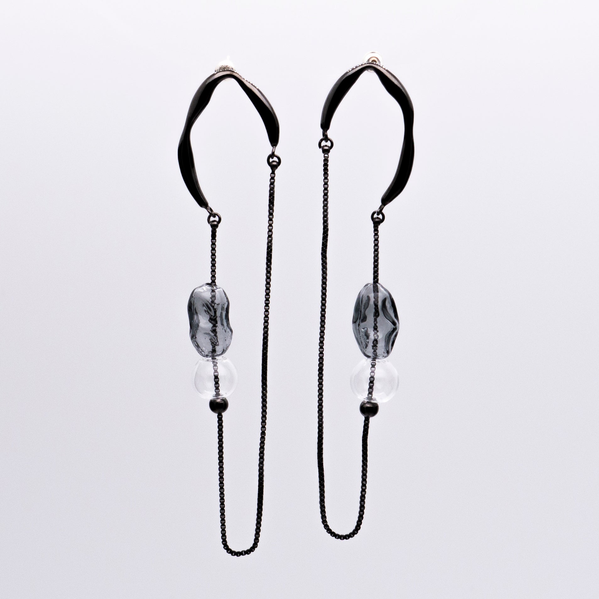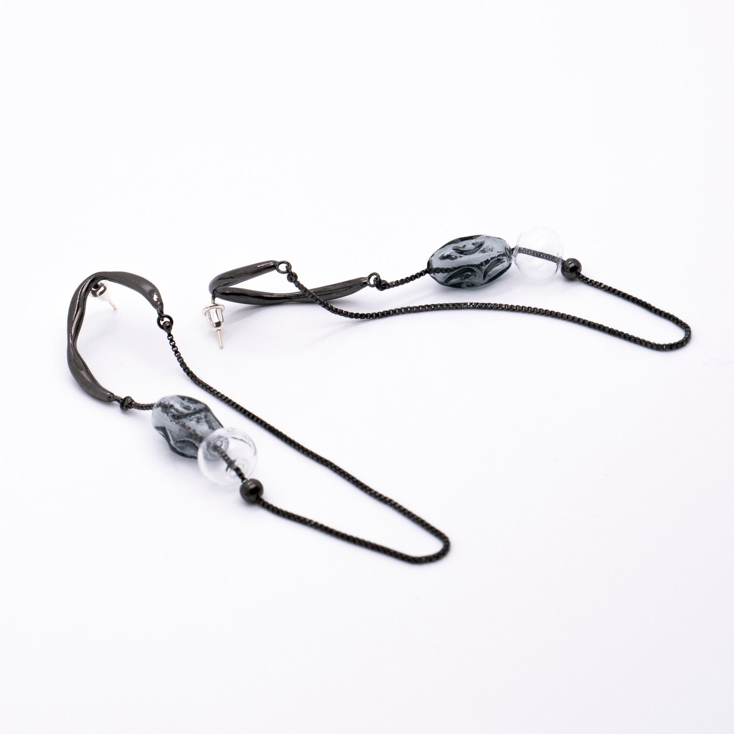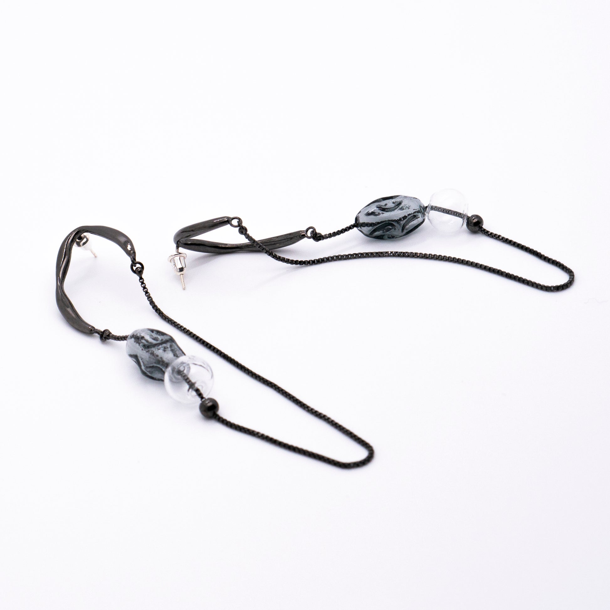 氣泡星雲系列 垂墜長耳環-鍍黑