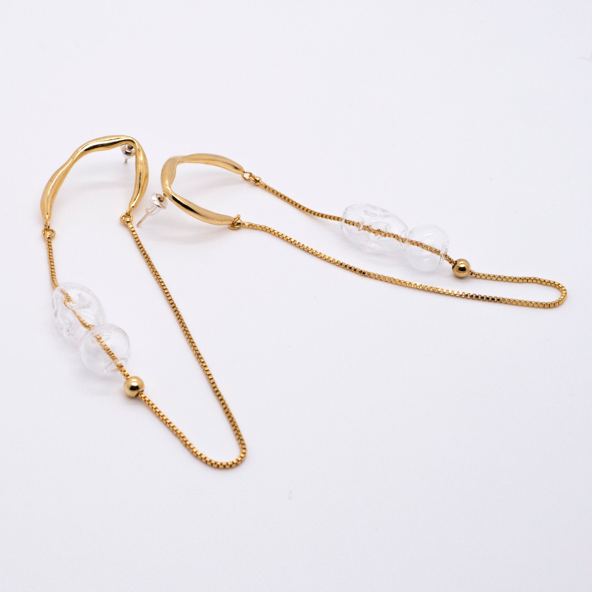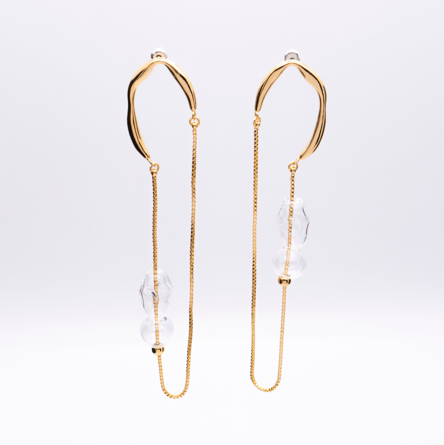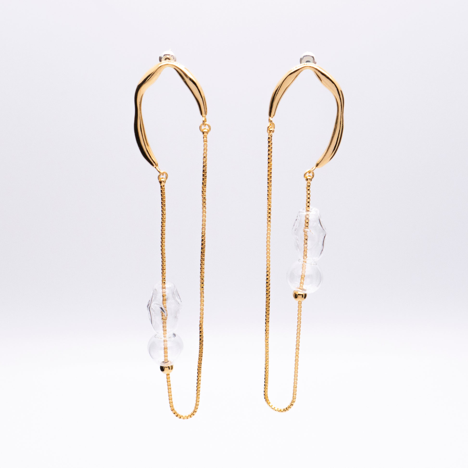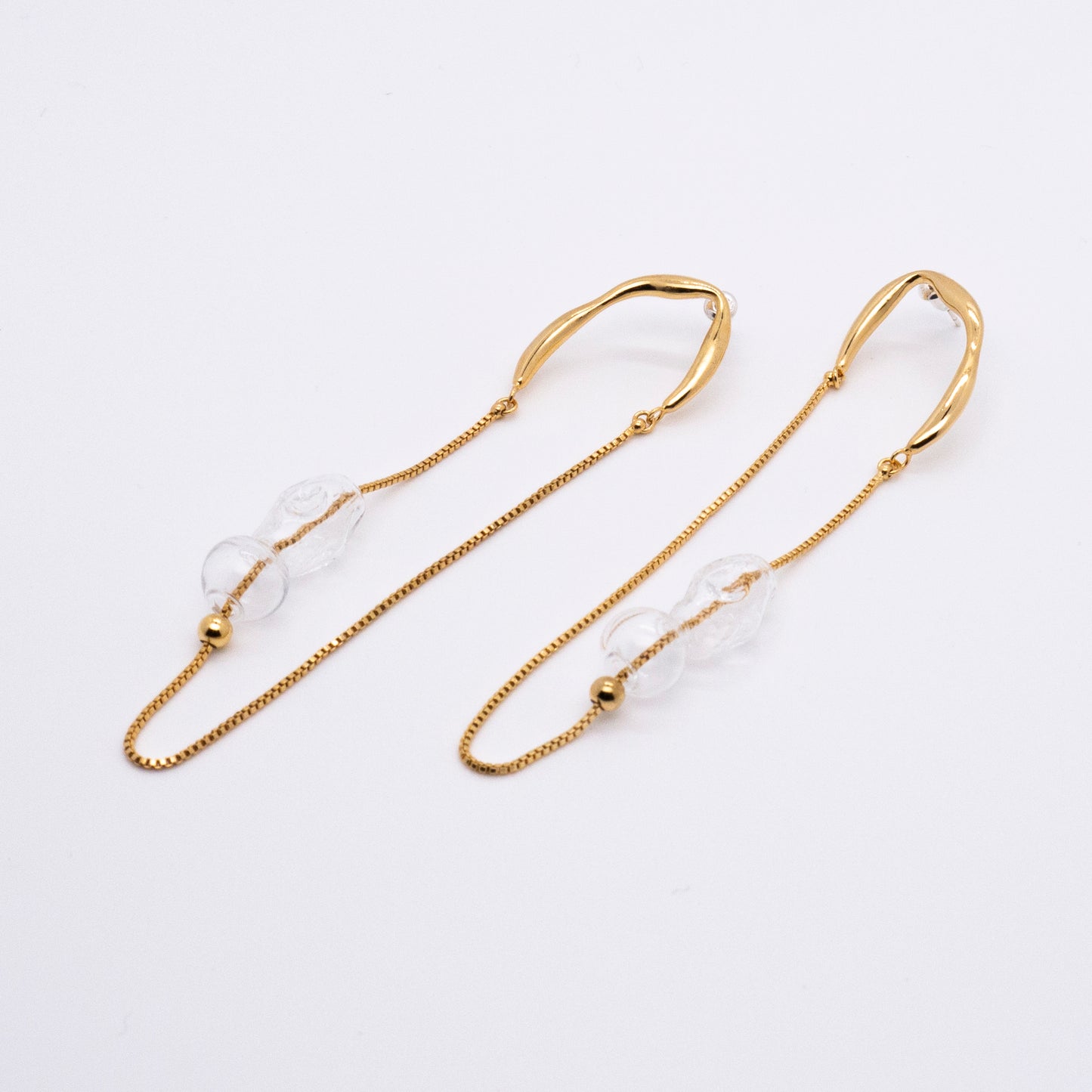 / 商品規格- 材質:黃銅厚鍍14K金、耳針純銀、手工琉璃氣泡