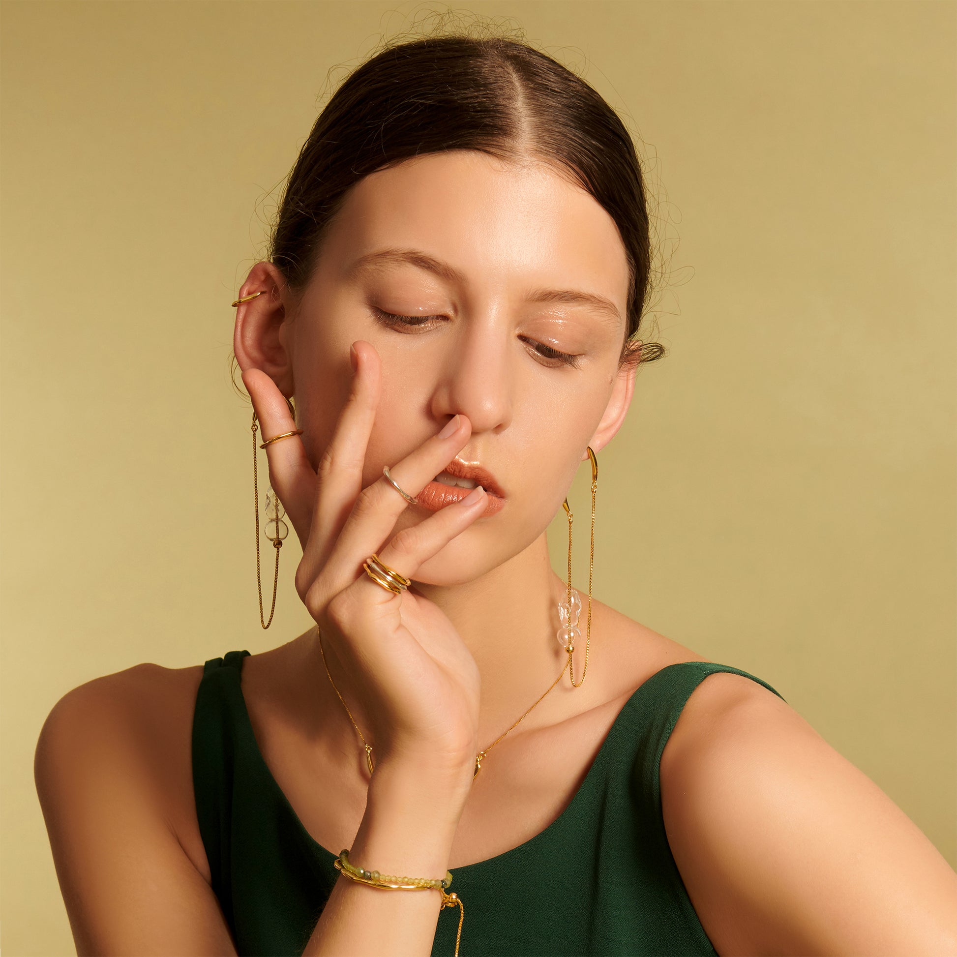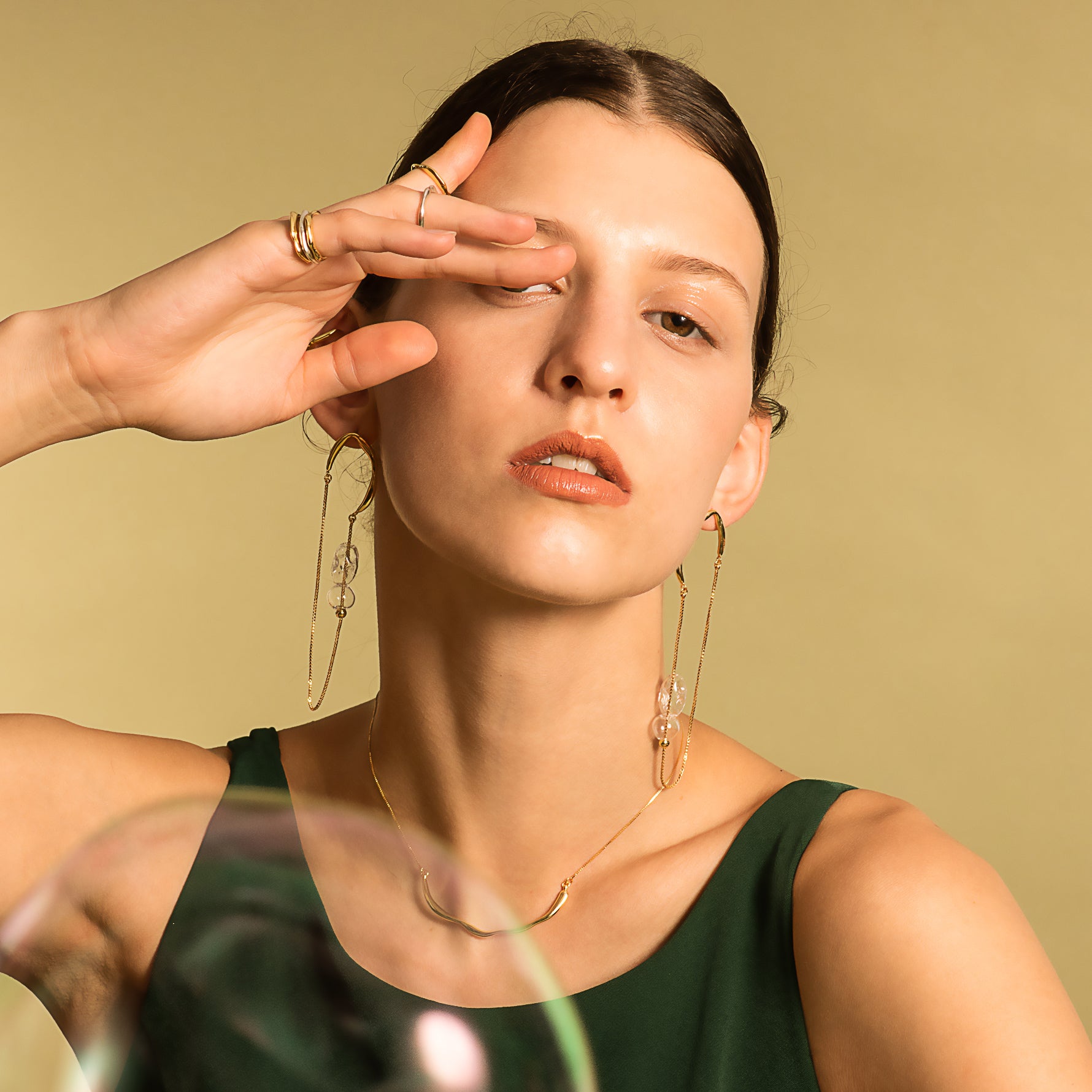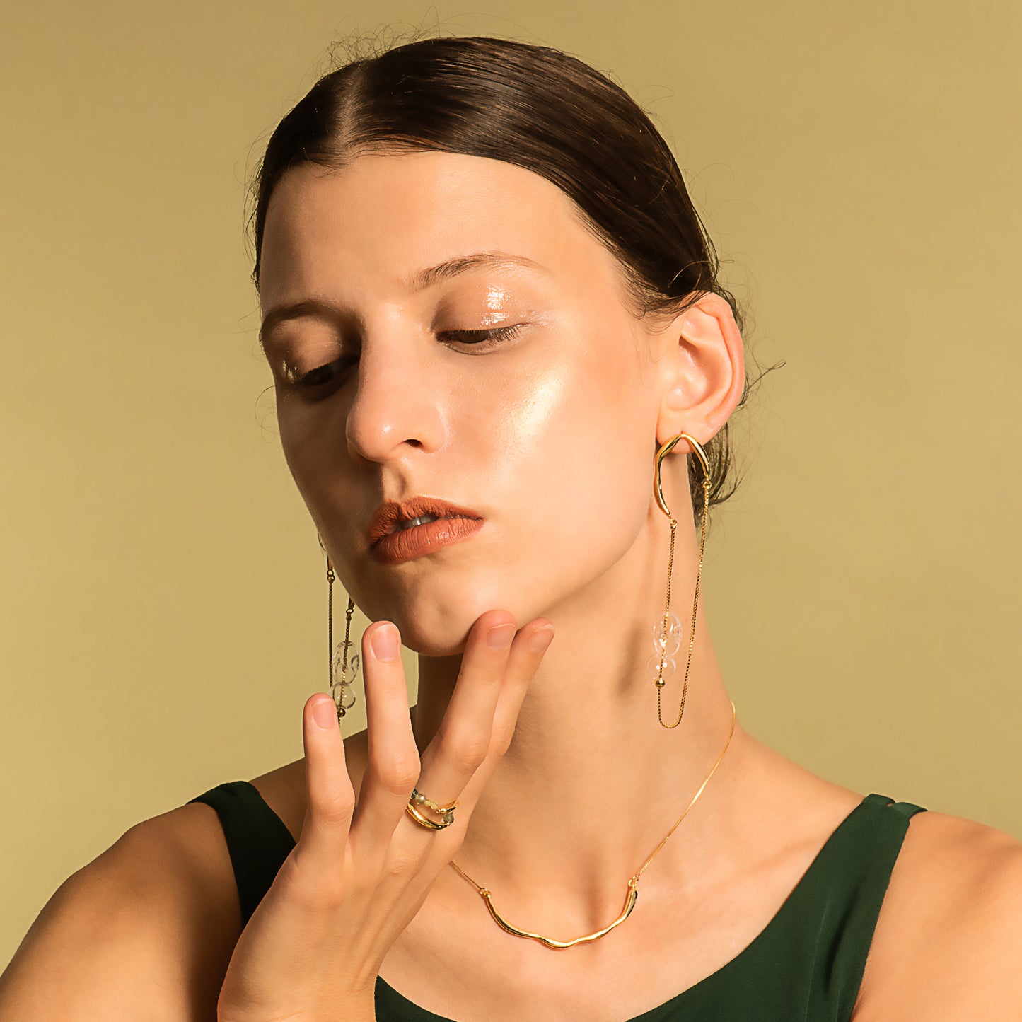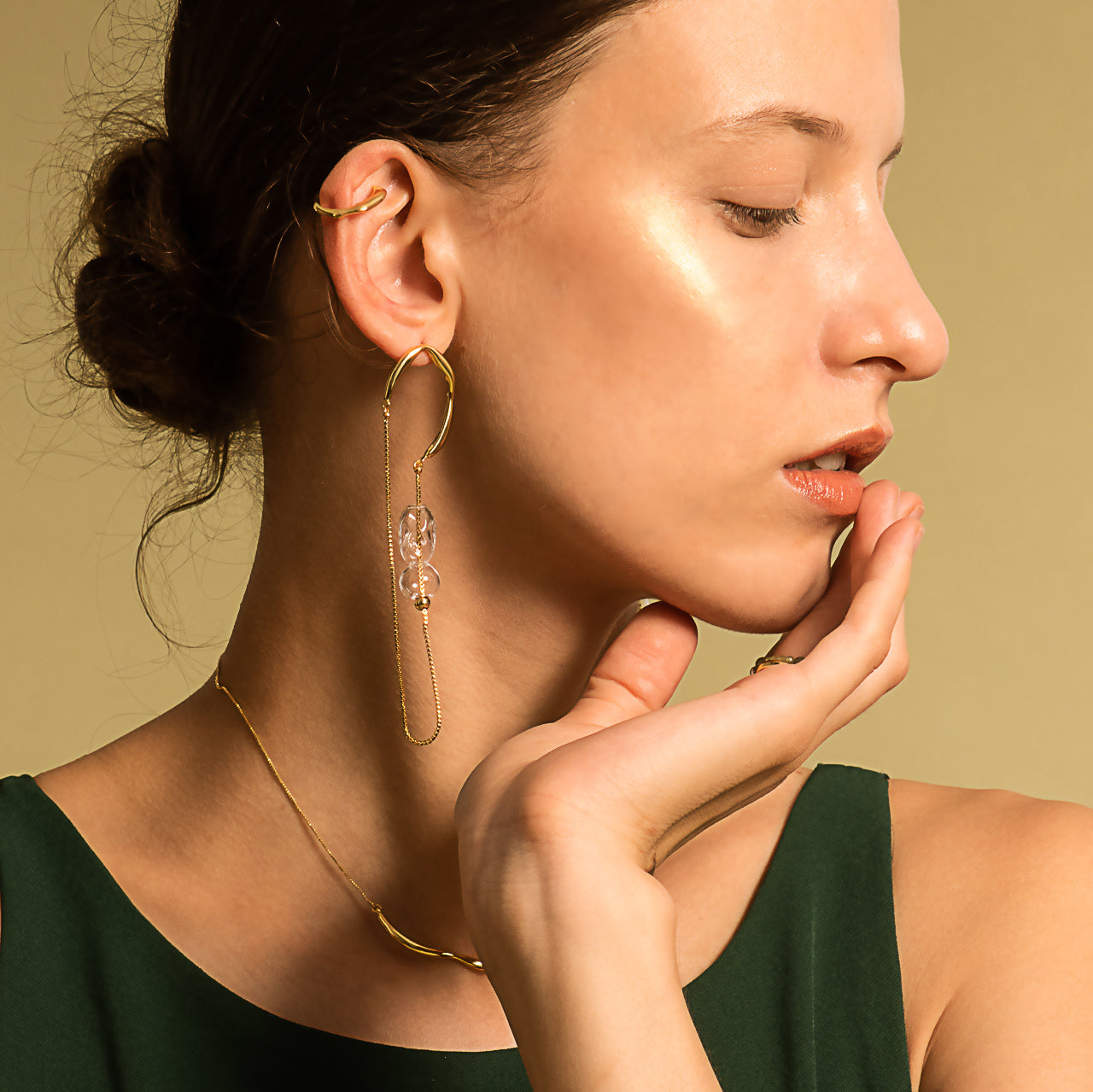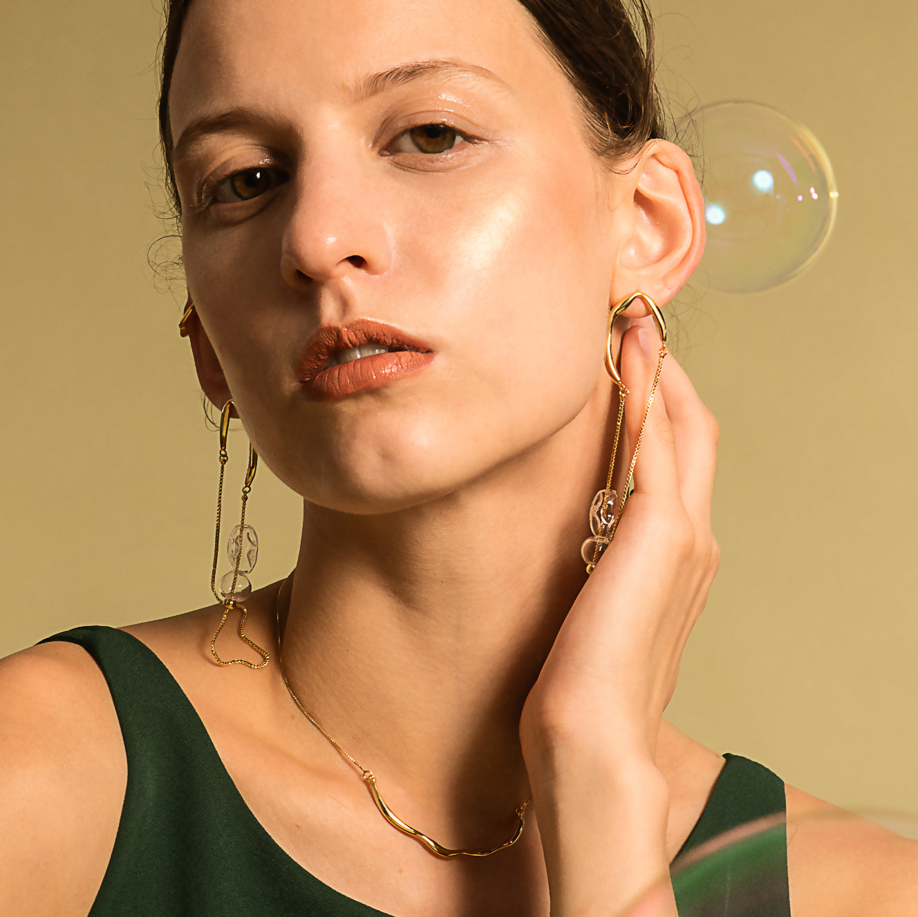本系列以金屬質感結合天然水晶、半寶石、手工琉璃氣泡描繪這動人的一幕