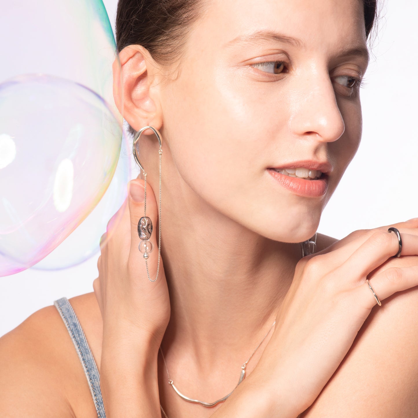 本系列以金屬質感結合天然水晶、半寶石、手工琉璃氣泡描繪這動人的一幕