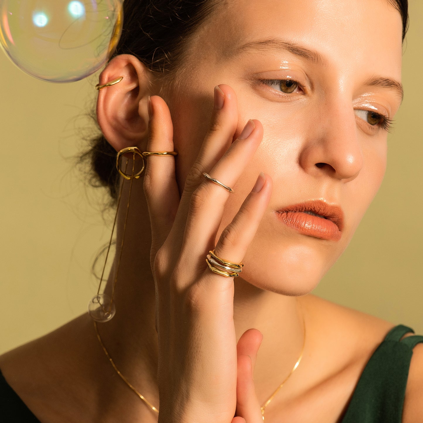 本系列以金屬質感結合天然水晶、半寶石、手工琉璃氣泡描繪這動人的一幕