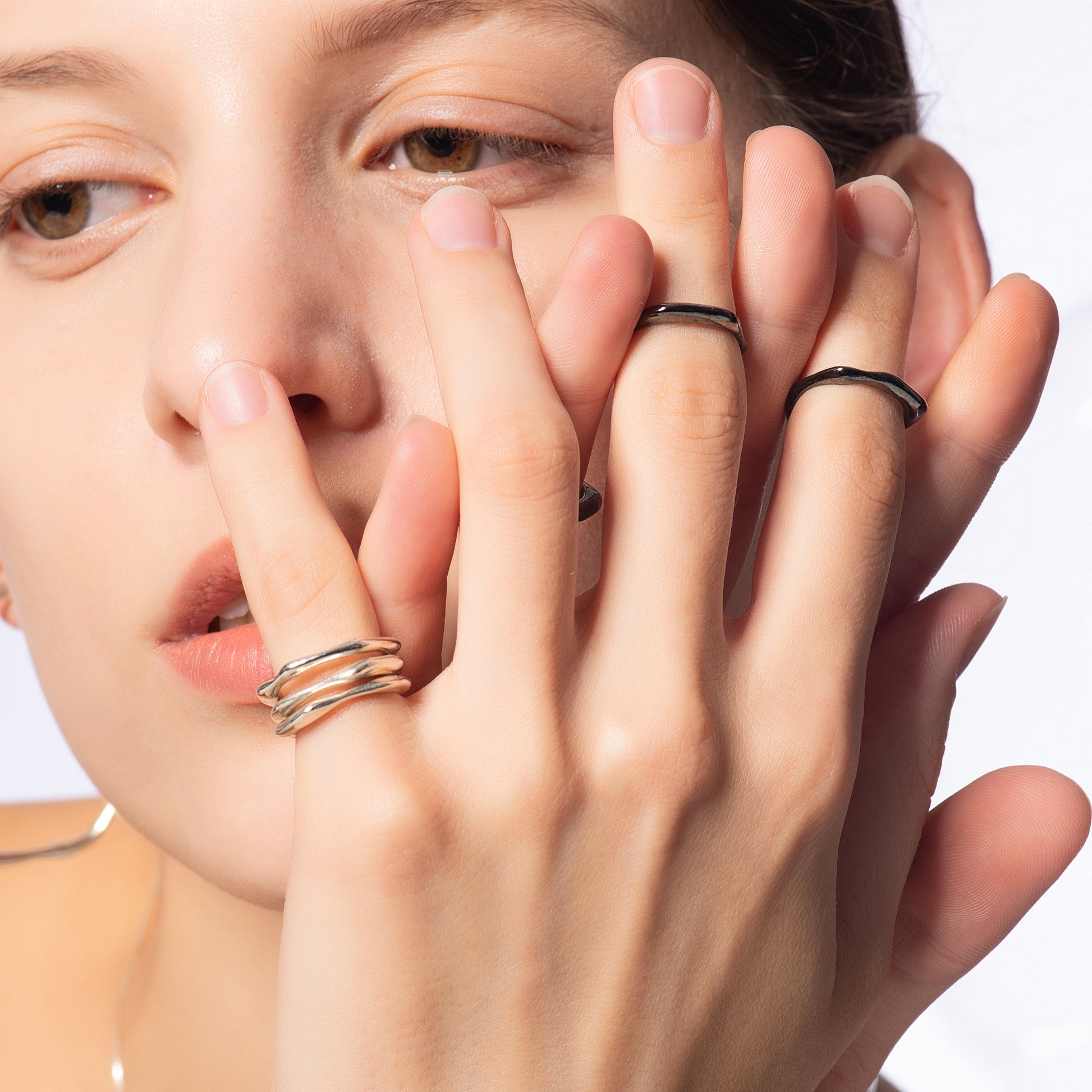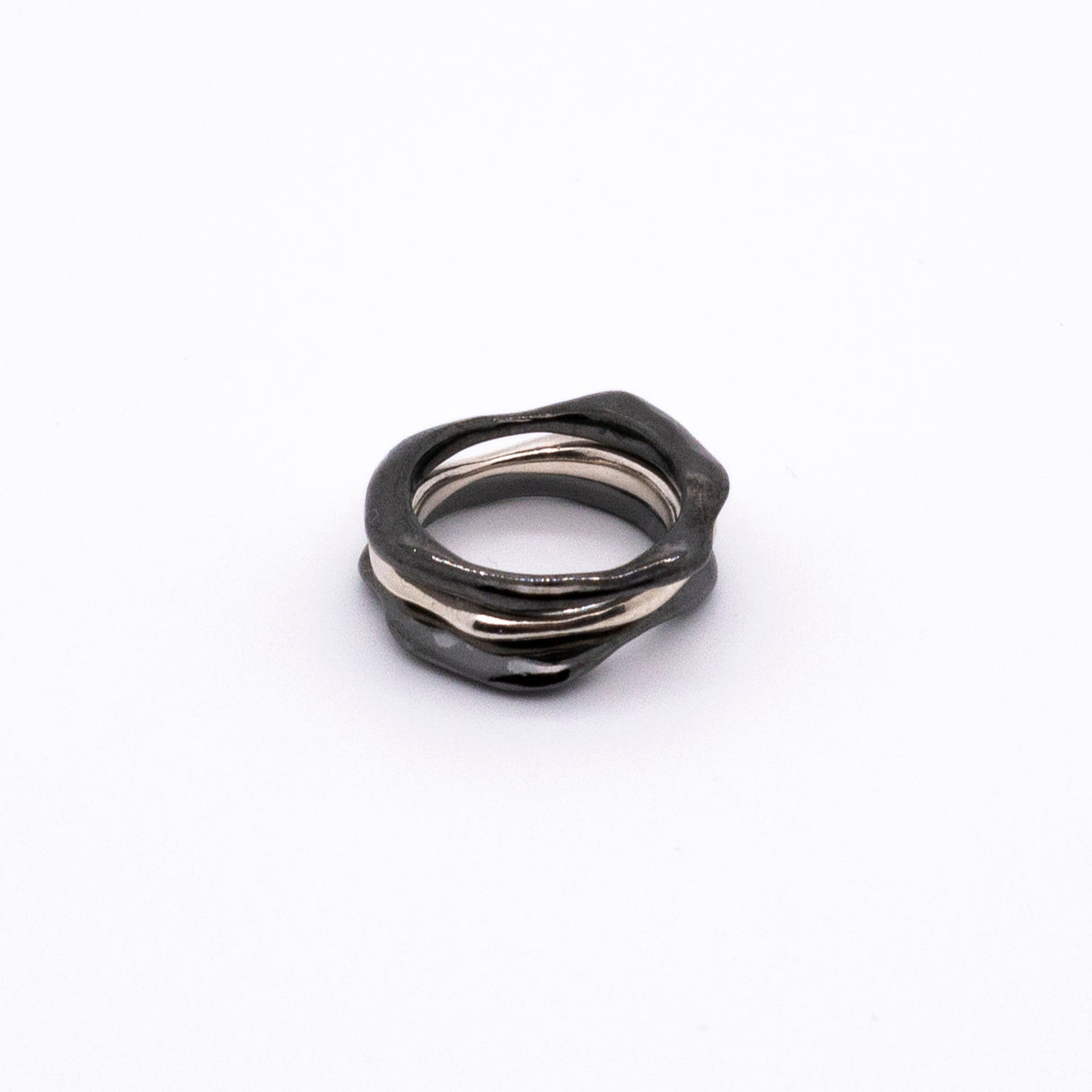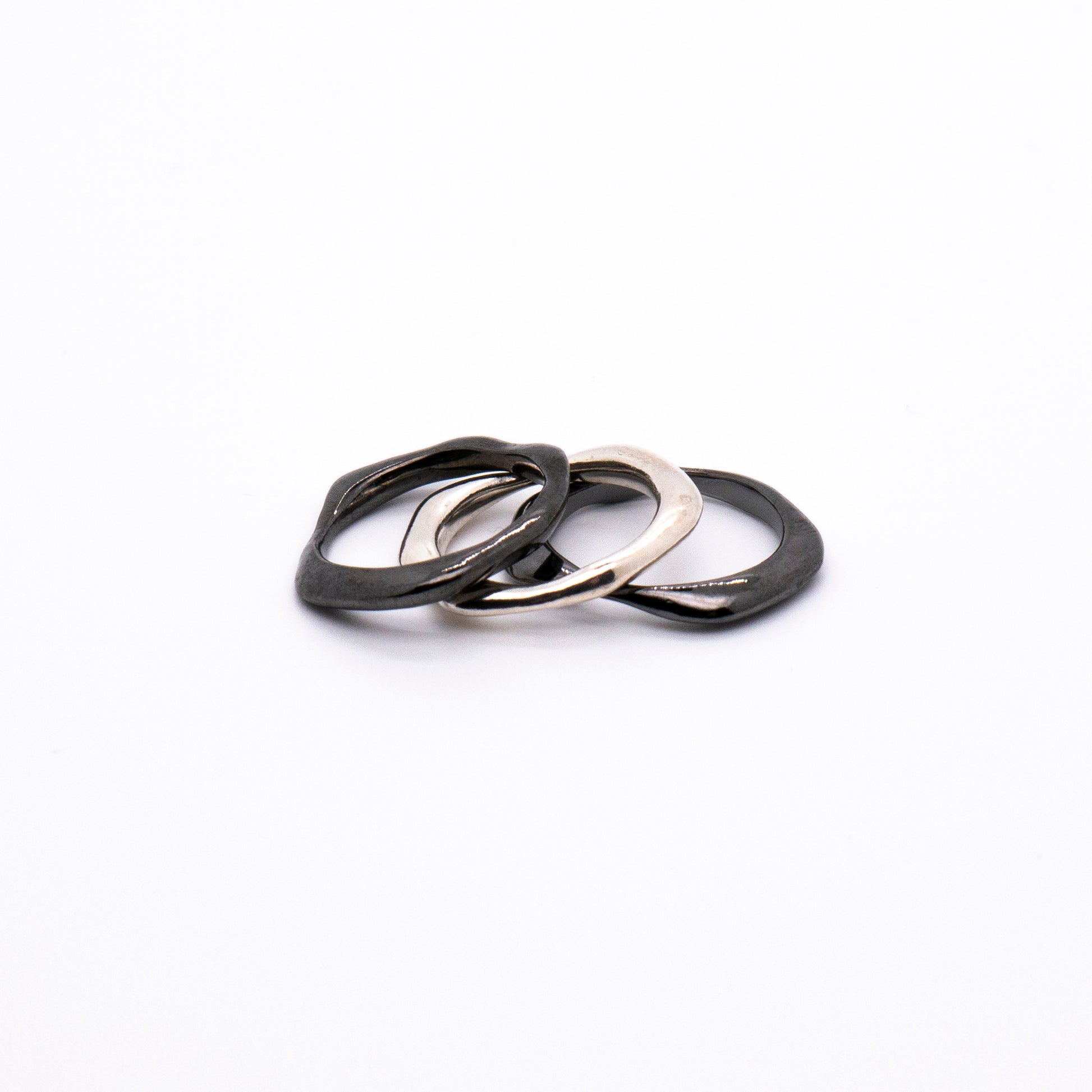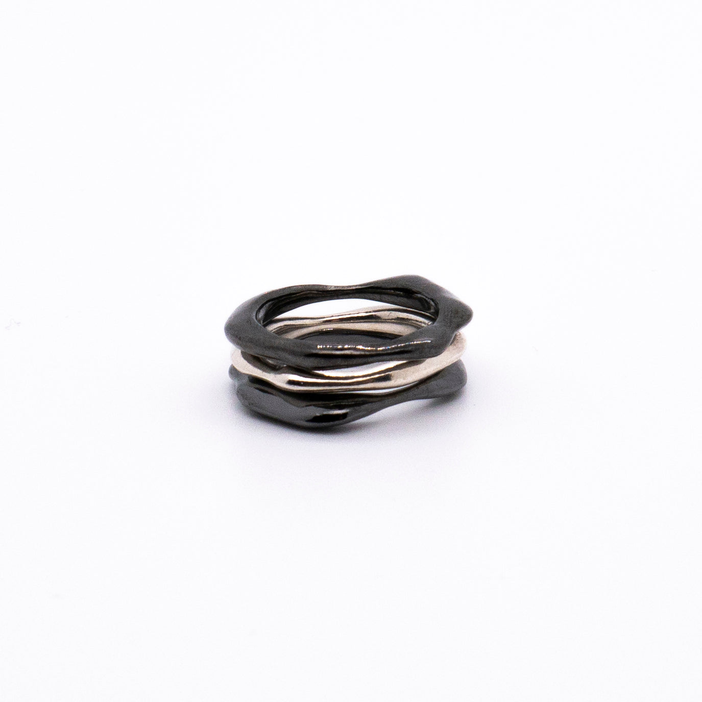 氣泡星雲系列 流線銀戒-銀黑雙色組合