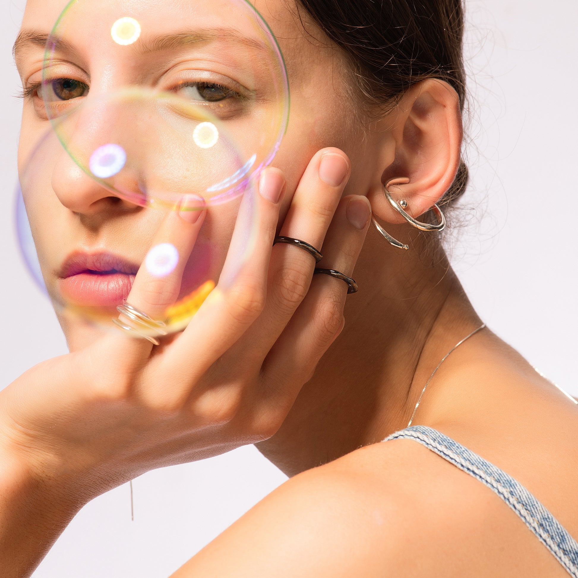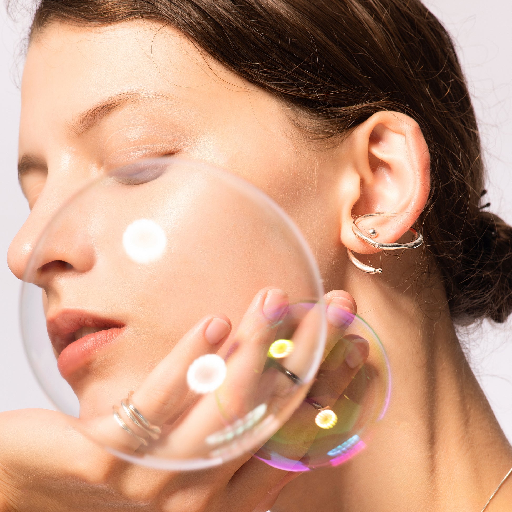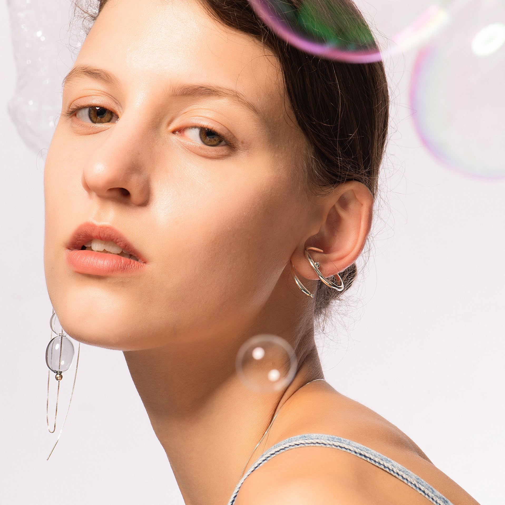 本系列以金屬質感結合天然水晶、半寶石、手工琉璃氣泡描繪這動人的一幕
