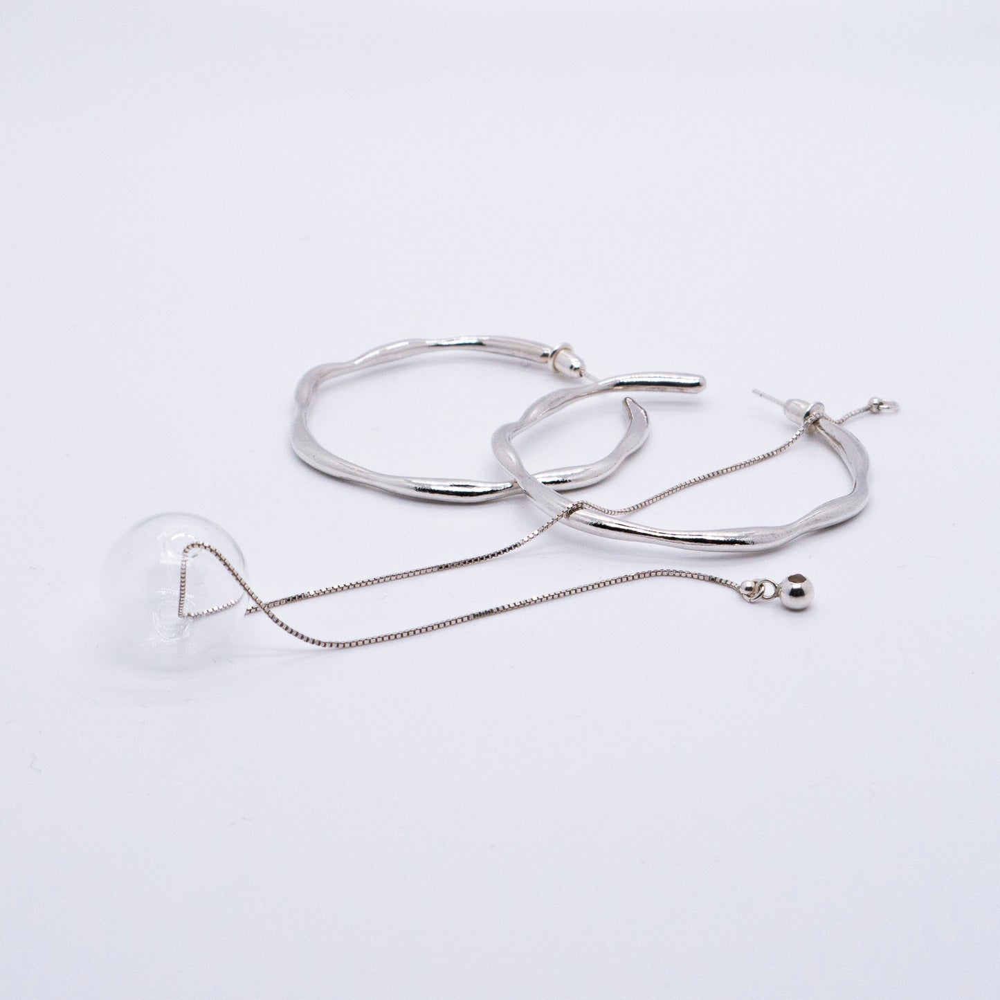 氣泡星雲大圈耳環一對+單邊氣泡耳後扣(可拆)