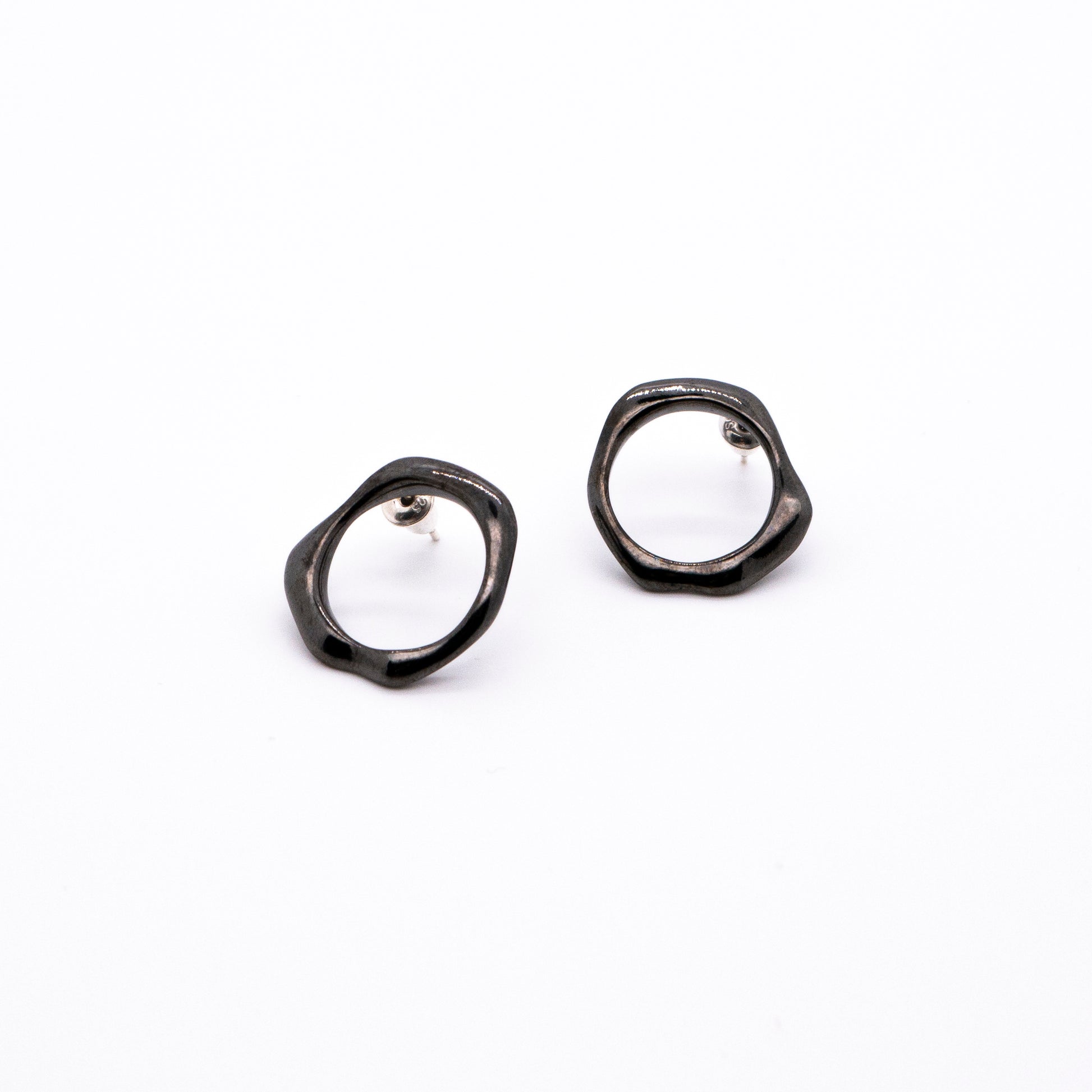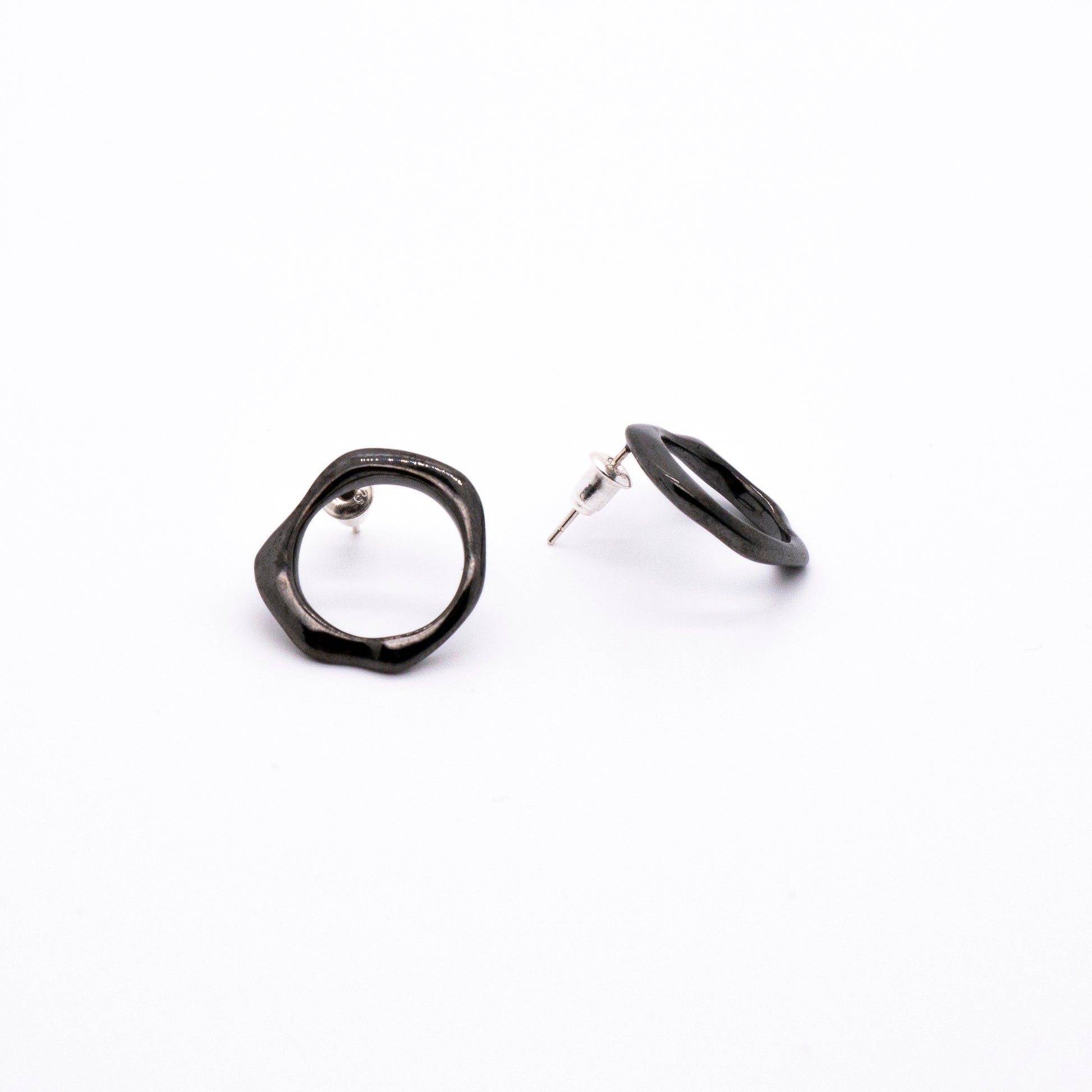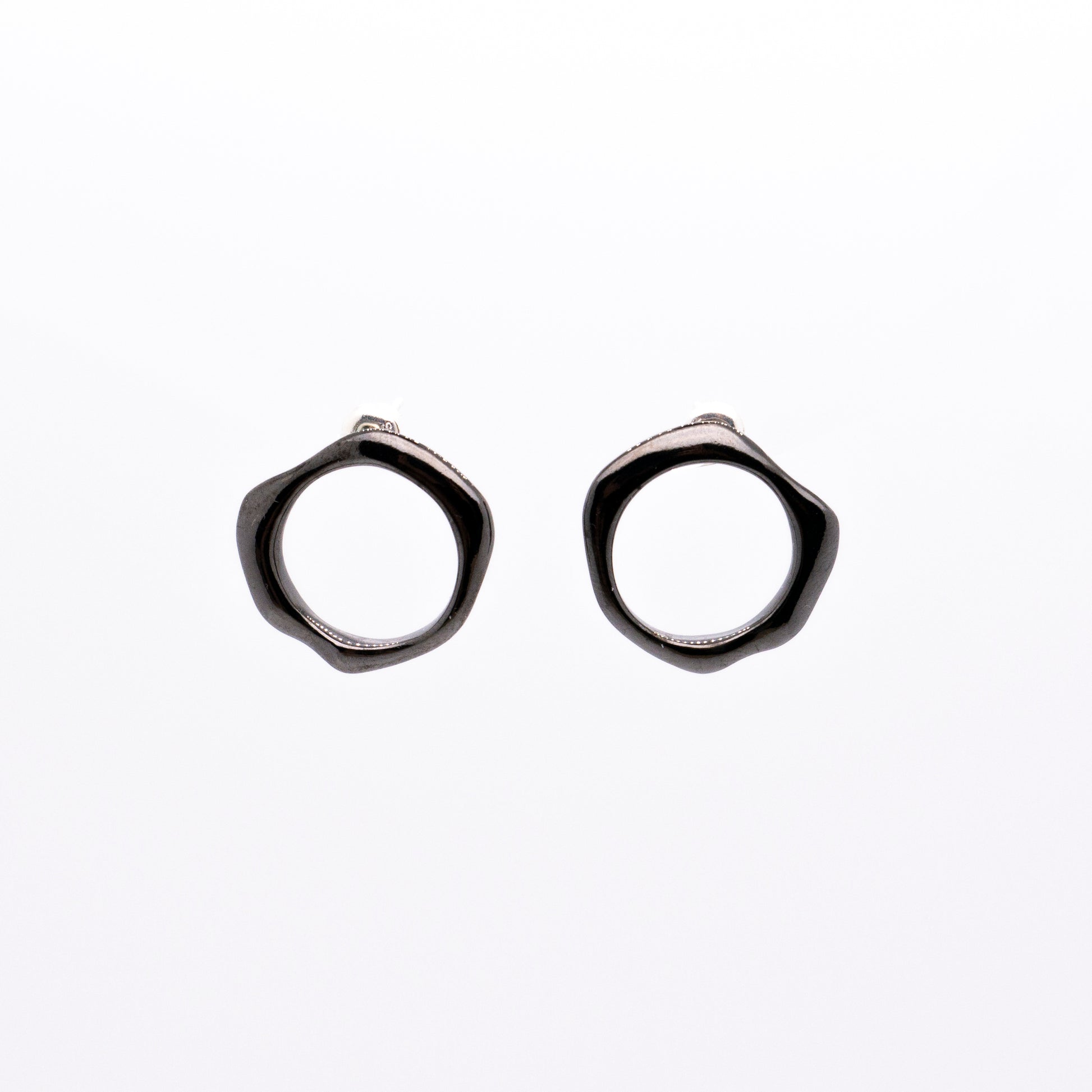 材質:黃銅厚鍍黑金、耳針純銀 / 尺寸:2*2cm