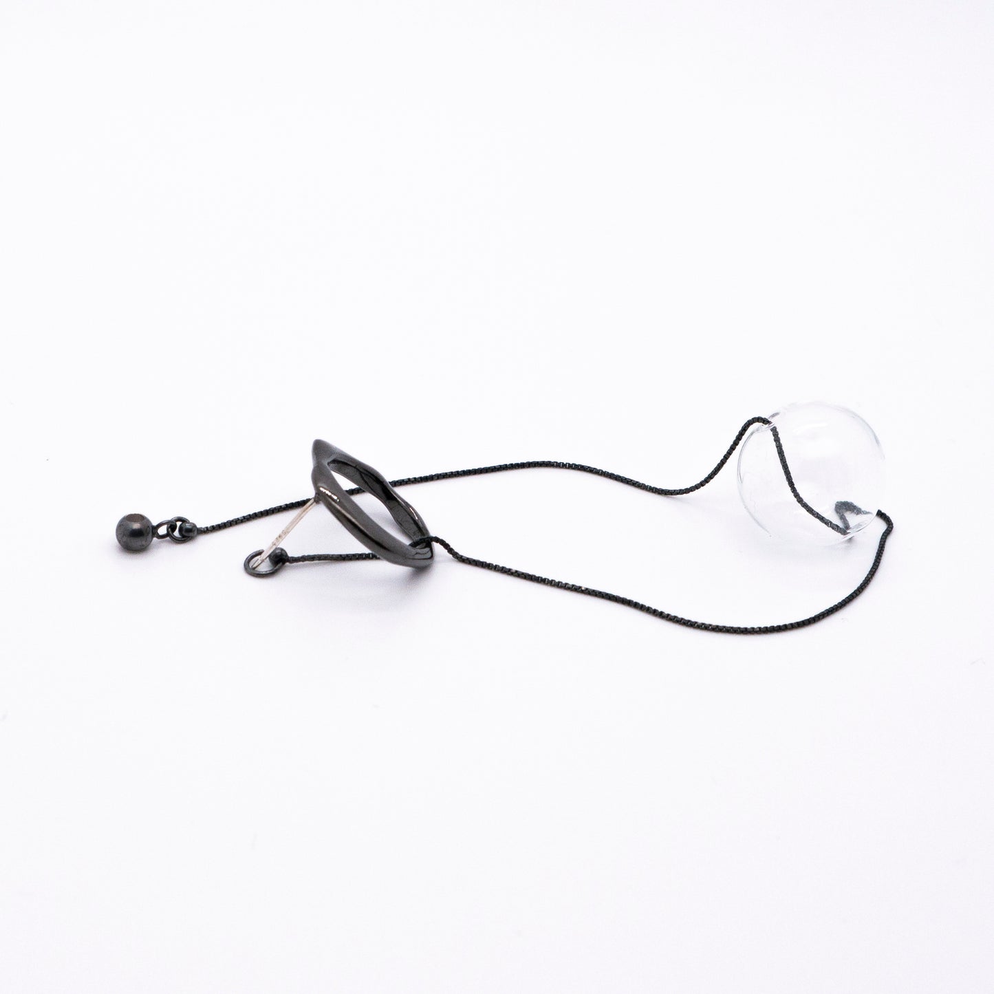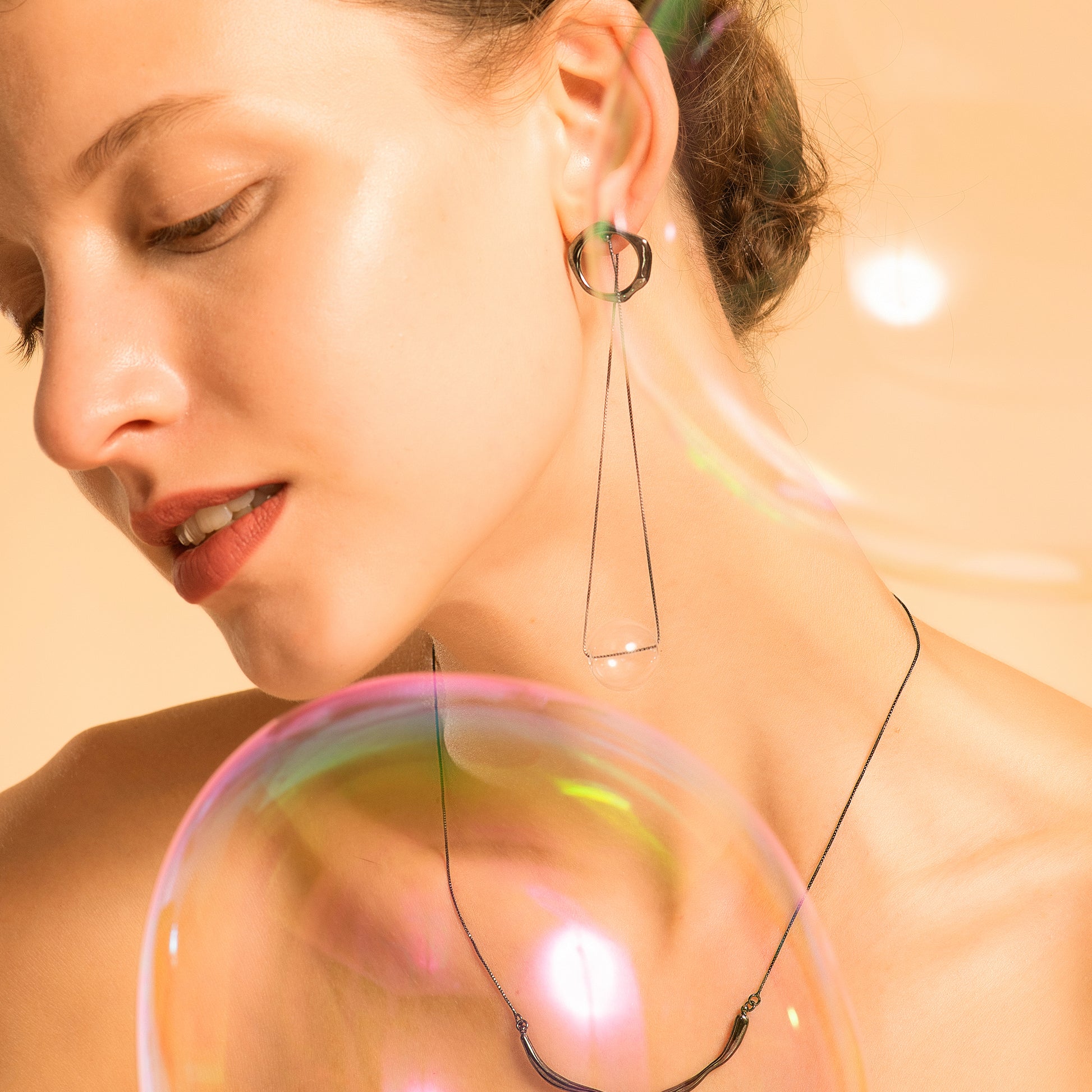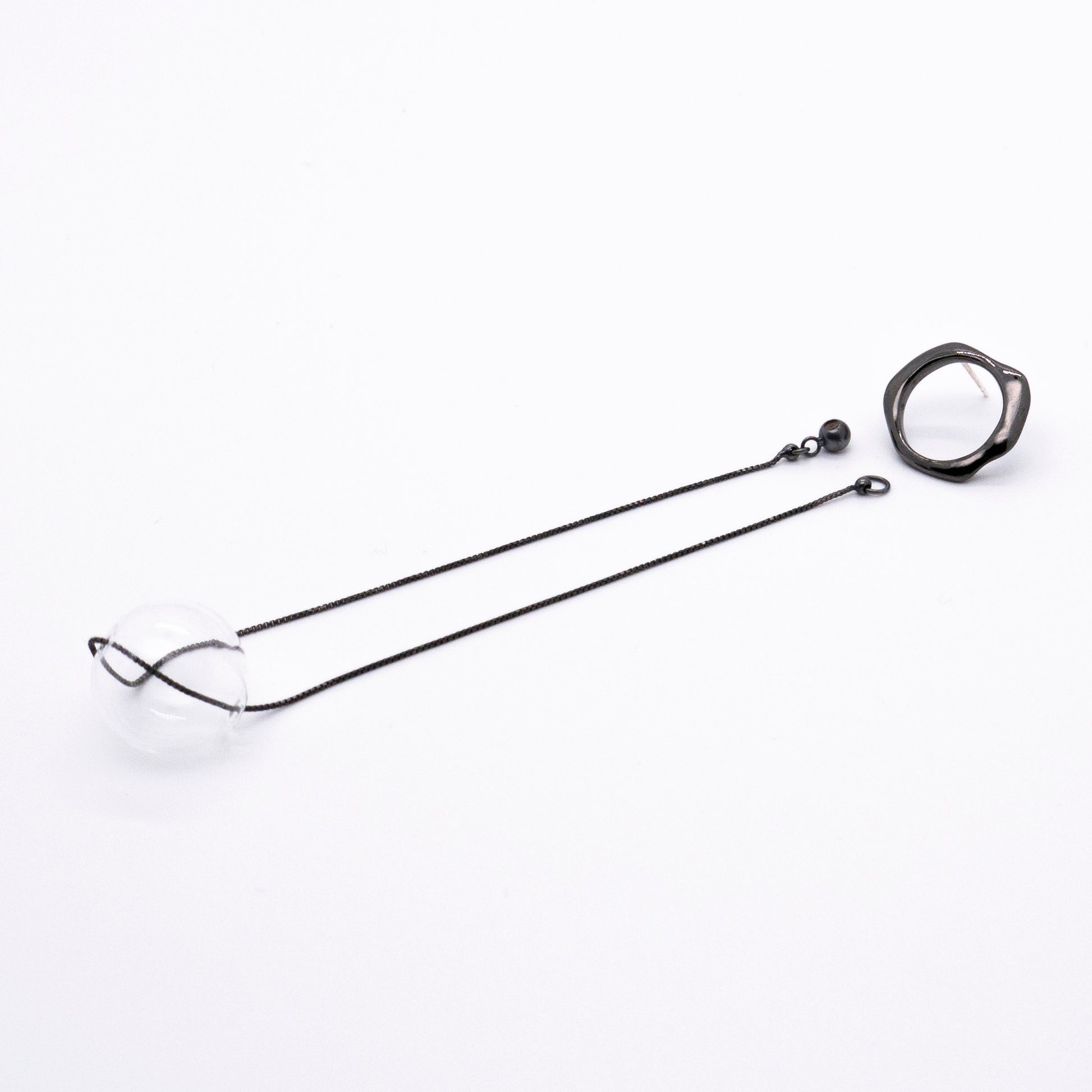 材質:925純銀硫化染黑、手工琉璃氣泡 / 總長:20cm