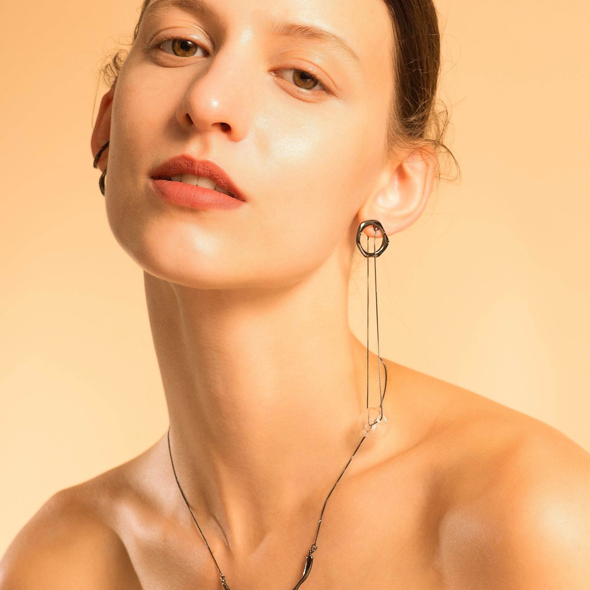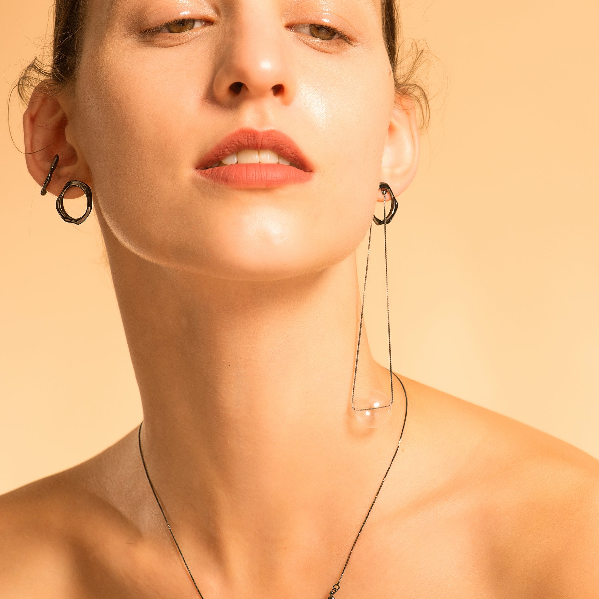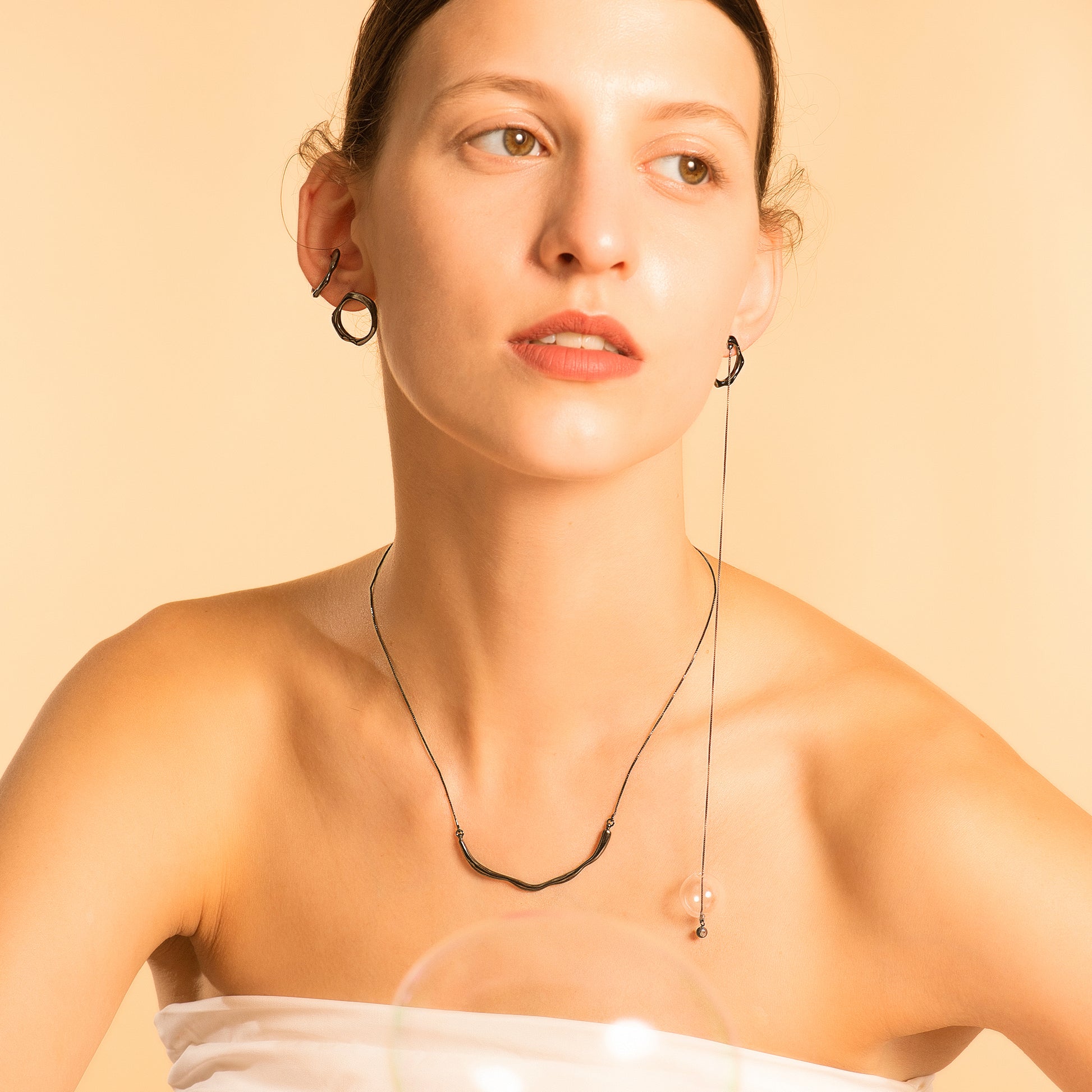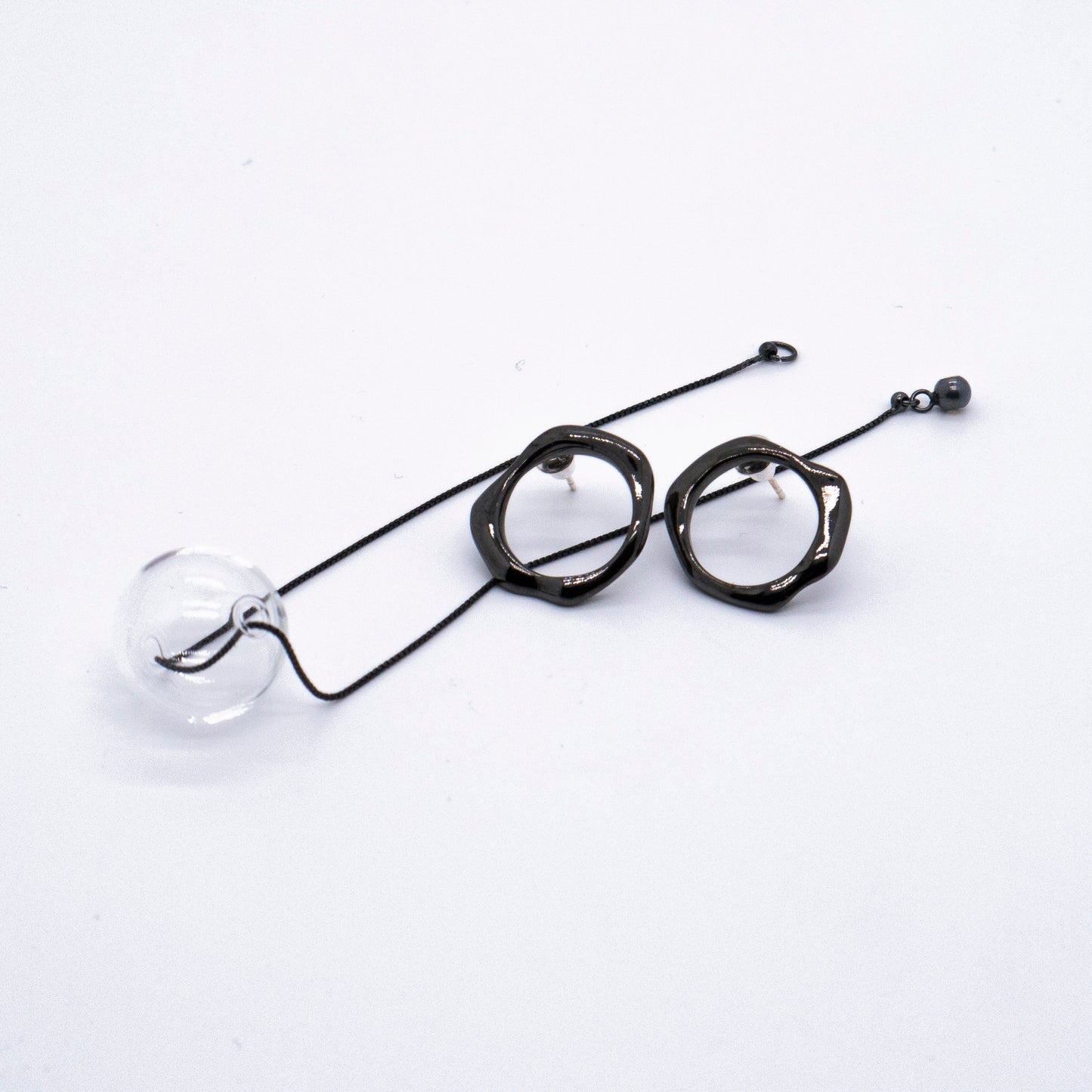 材質:925純銀硫化染黑、手工琉璃氣泡 / 總長:20cm