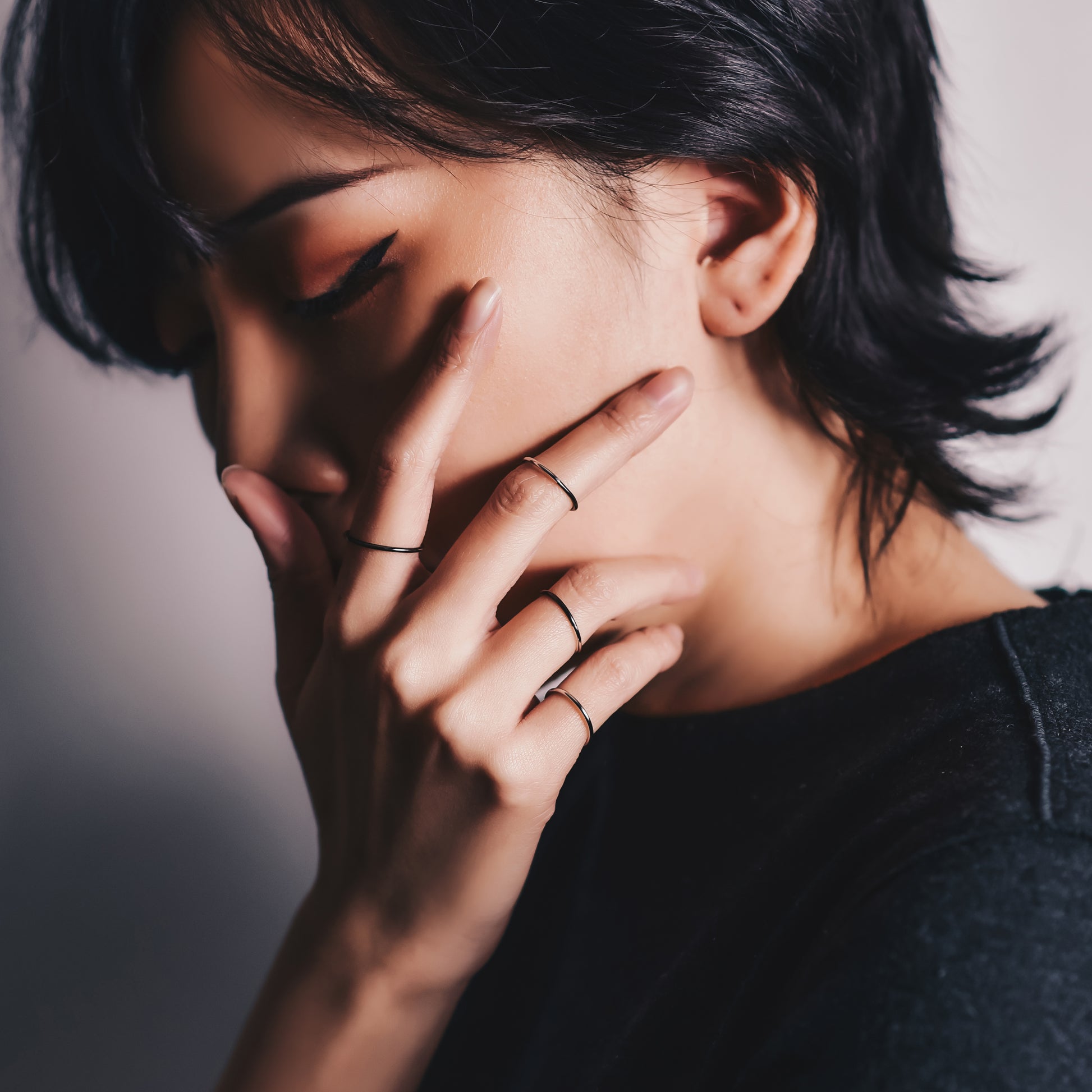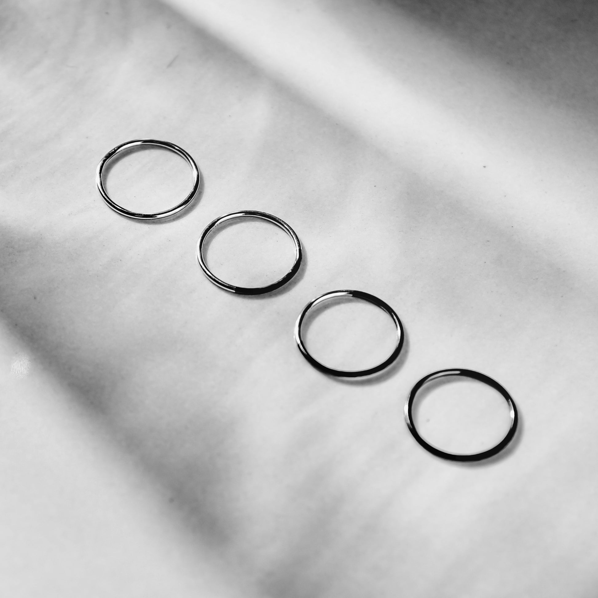 月圓圓缺純銀雙色細戒-黑金+白金色